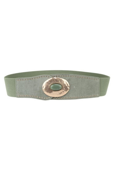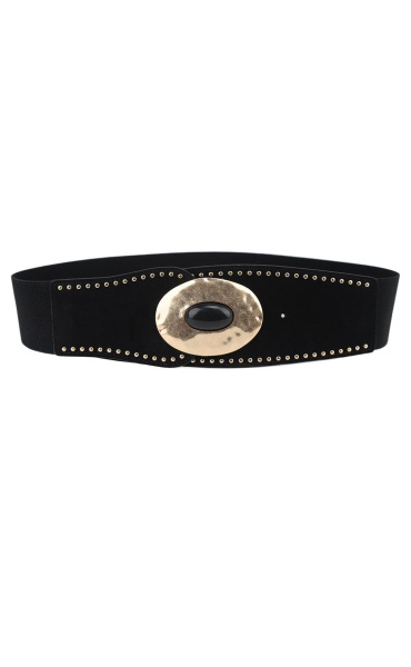 Dámský trendy gumový pásek se zlatou velkou sponou.