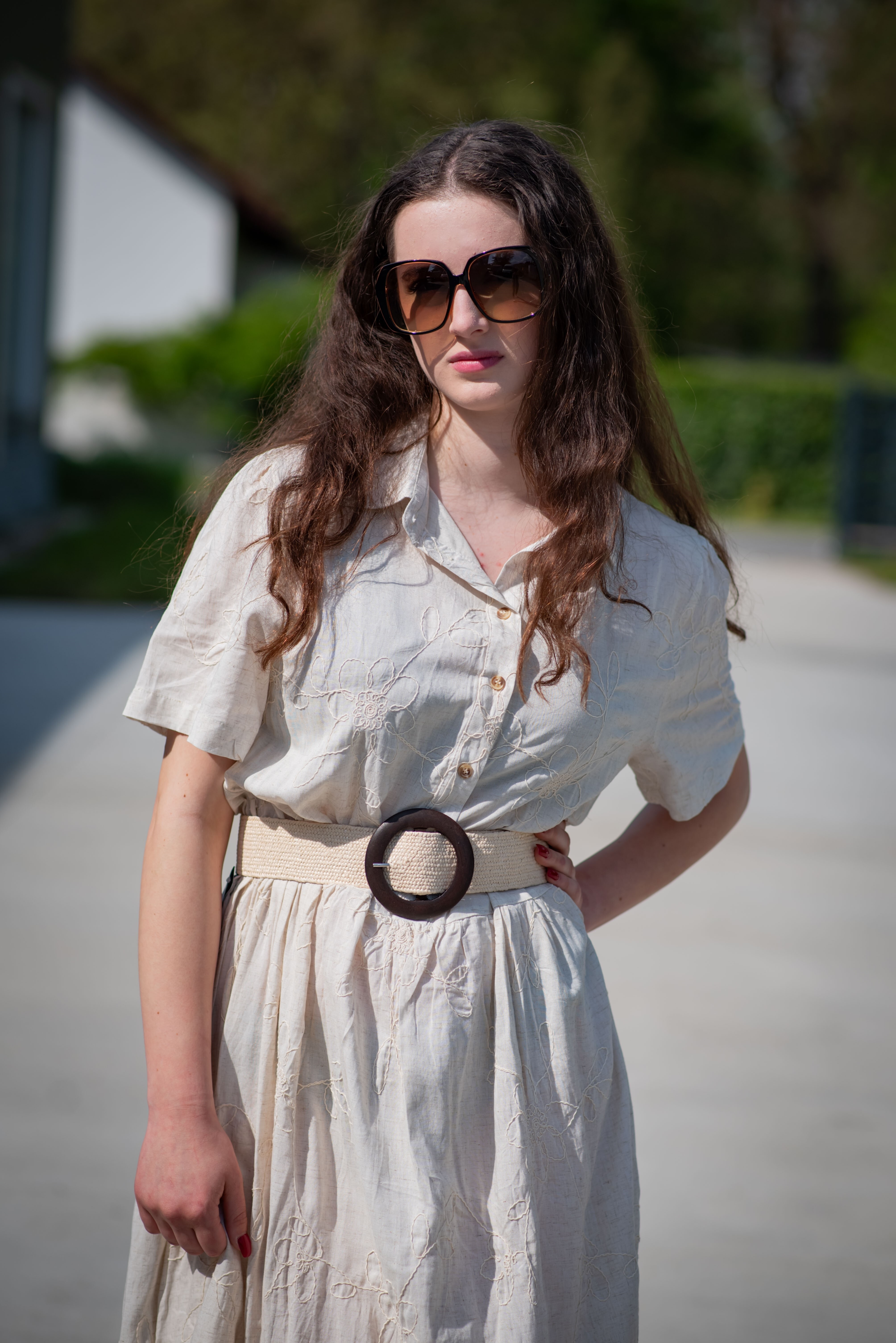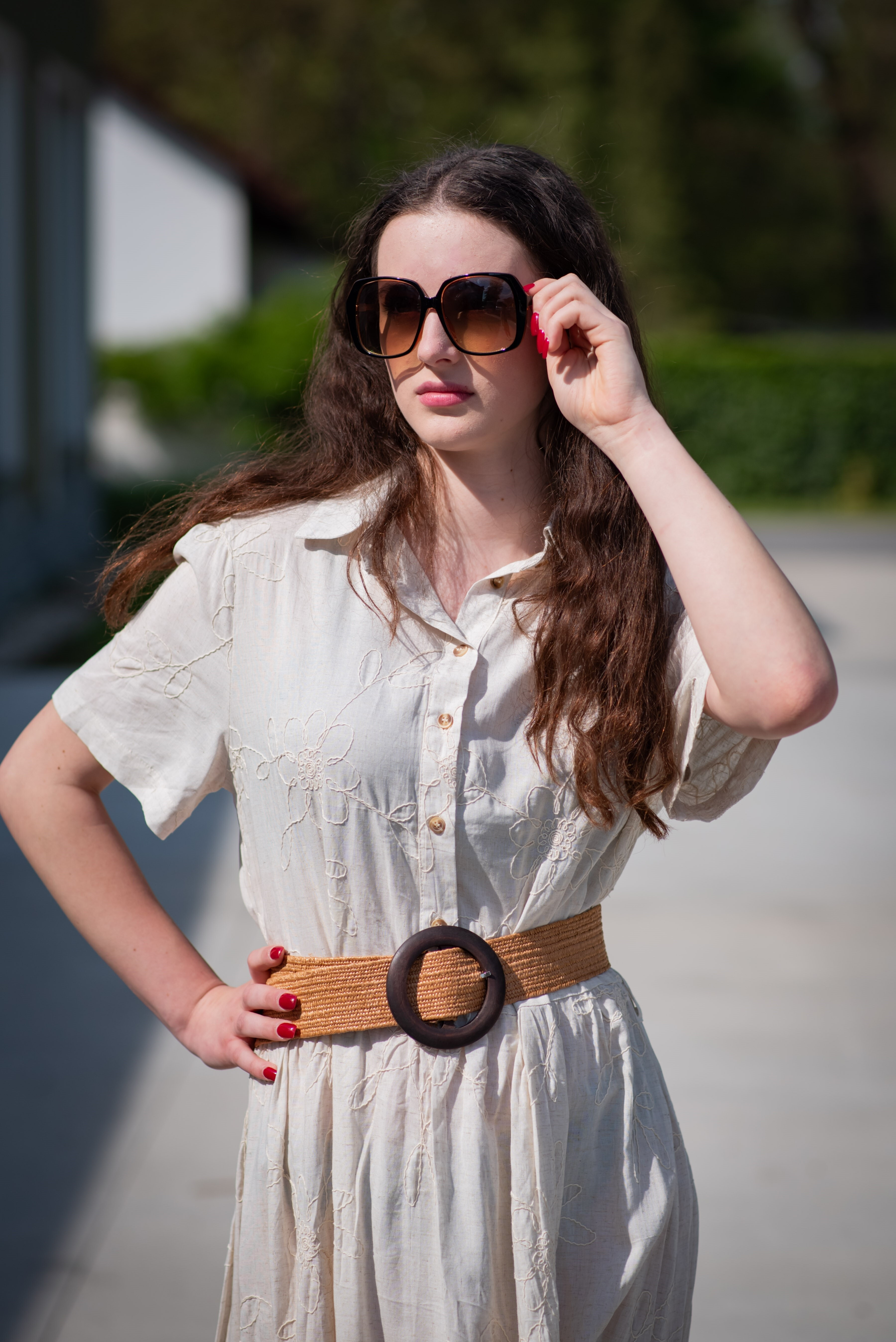 Dámský slaměný pásek v BOHO stylu. Pásek má kulatou přezku.