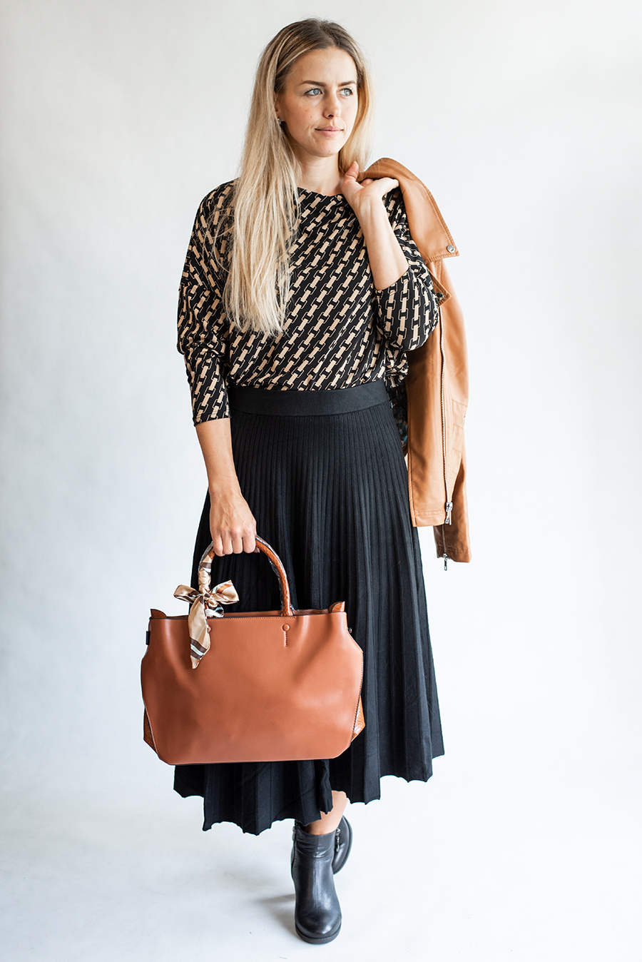 Dámská módní kabelka s odnímatelným popruhem a vnitřní kapsou doplněná o elegantní šátek. Složení 100 % polyester , camel, tmavě hnědá, bordó, khaki, šedá, modrá, černá,