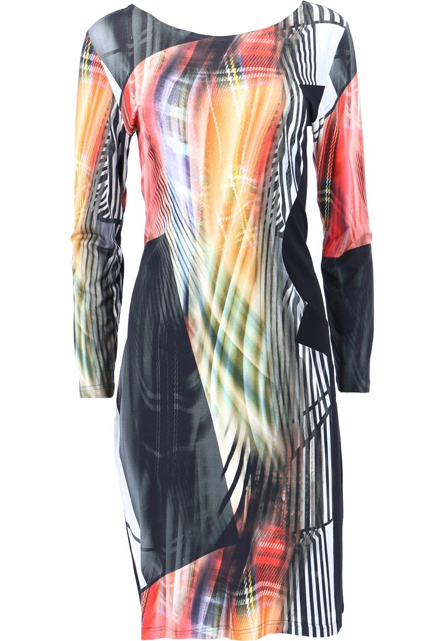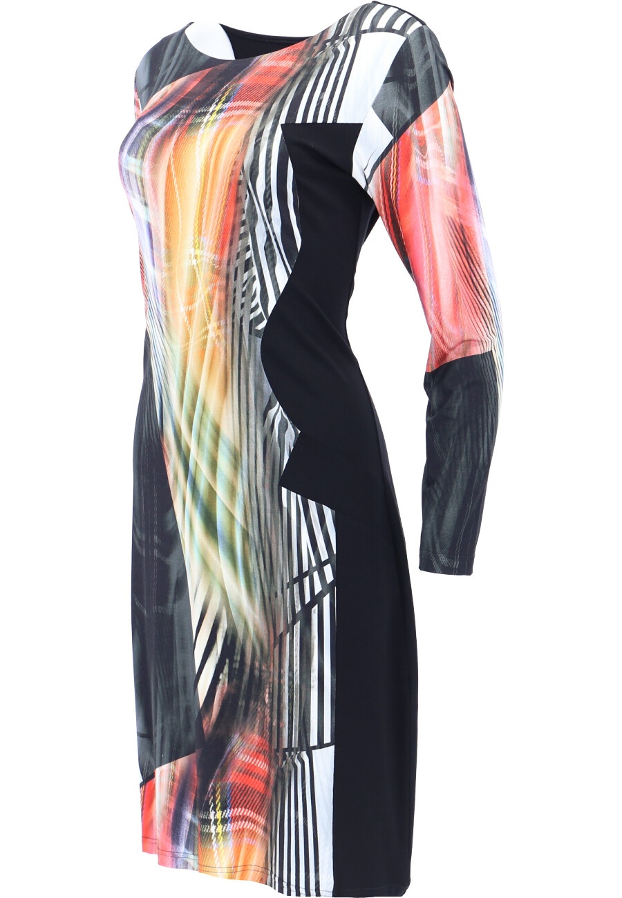 Módní vzorované krátké dámské šaty s 3/4 rukávem. Vyrobeno v Itálii