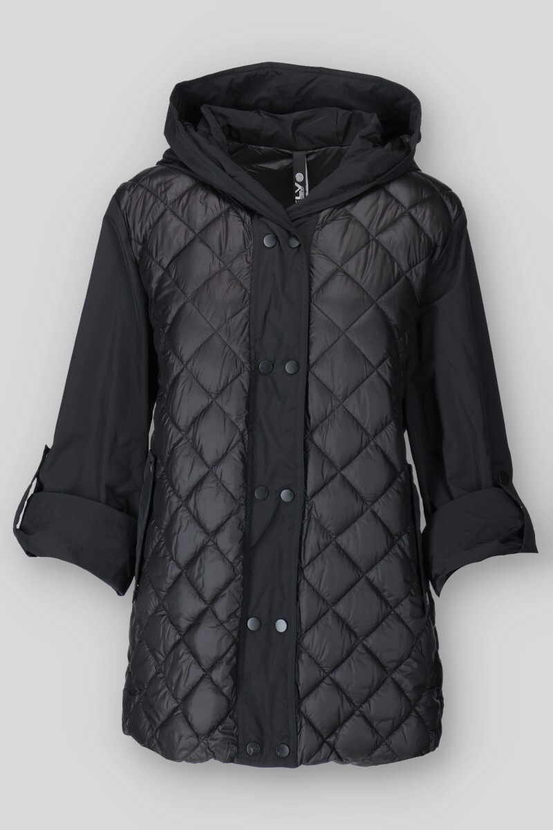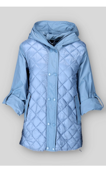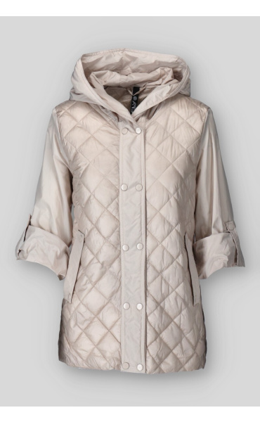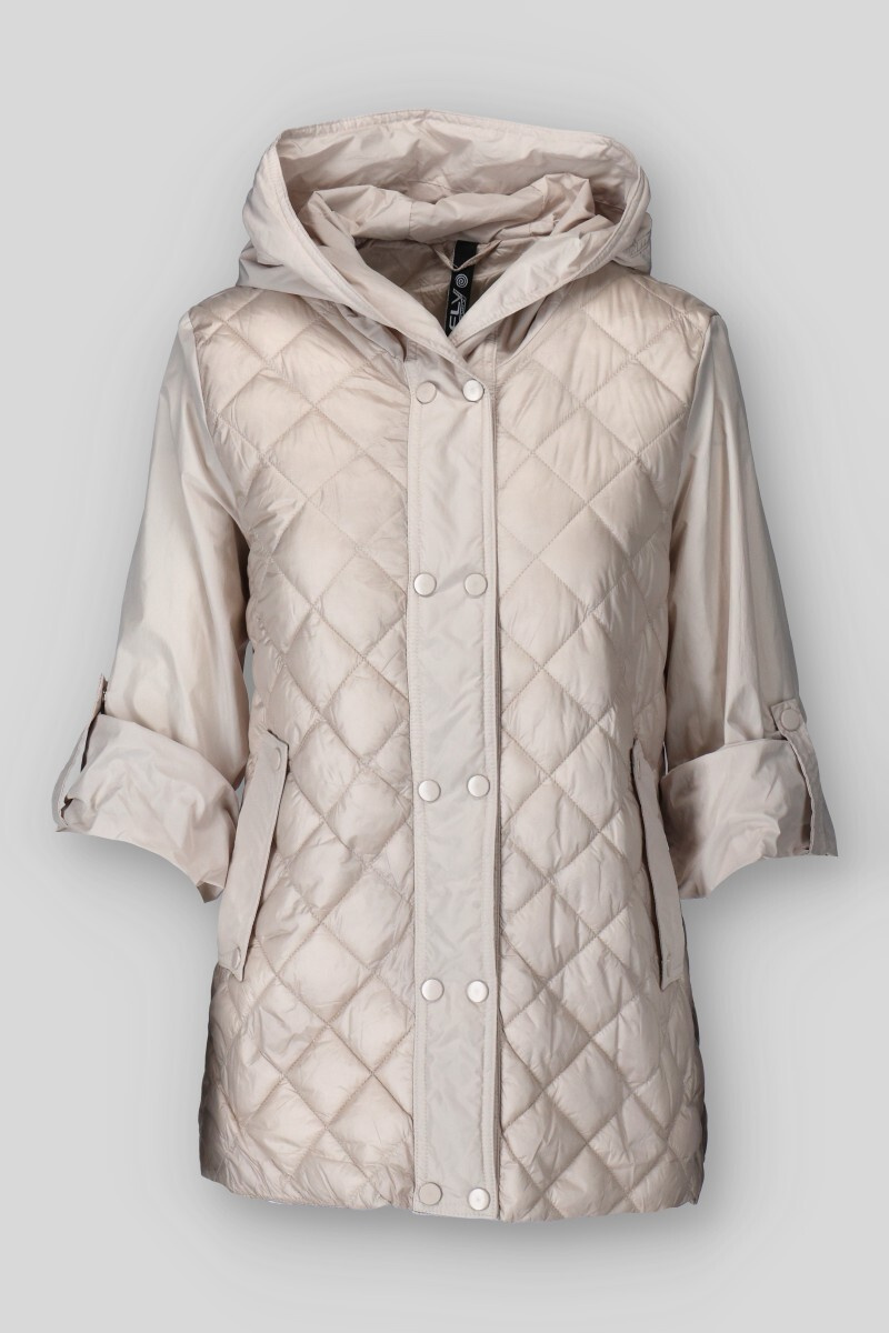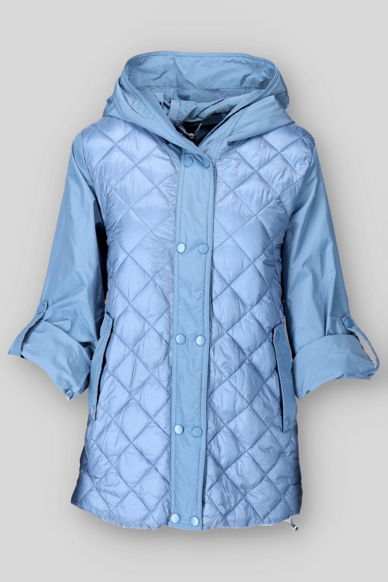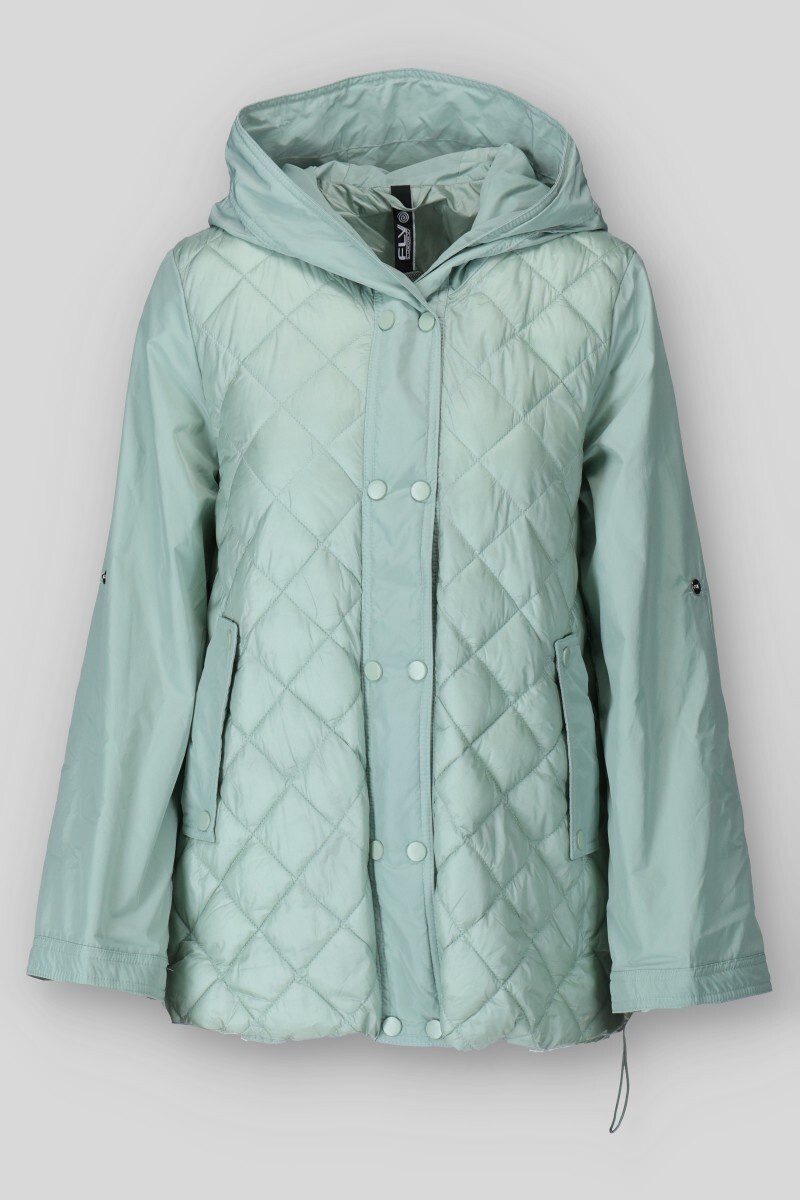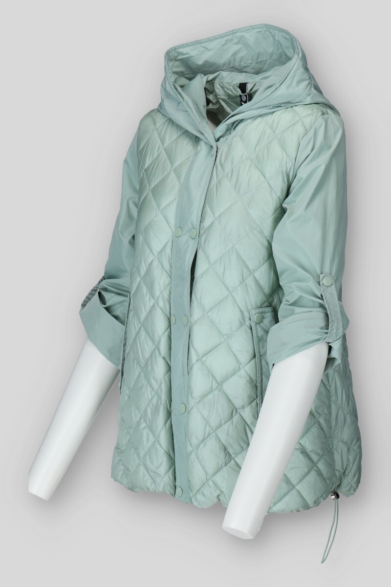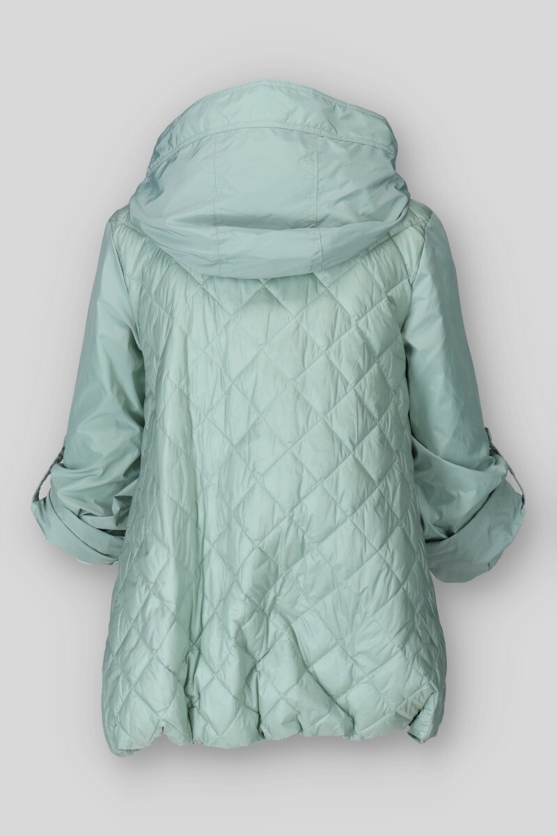 Dámská přechodová bunda s kapucí. Bunda má zapínání na druky, v pase regulaci na utažení a všité kapsy po stranách.