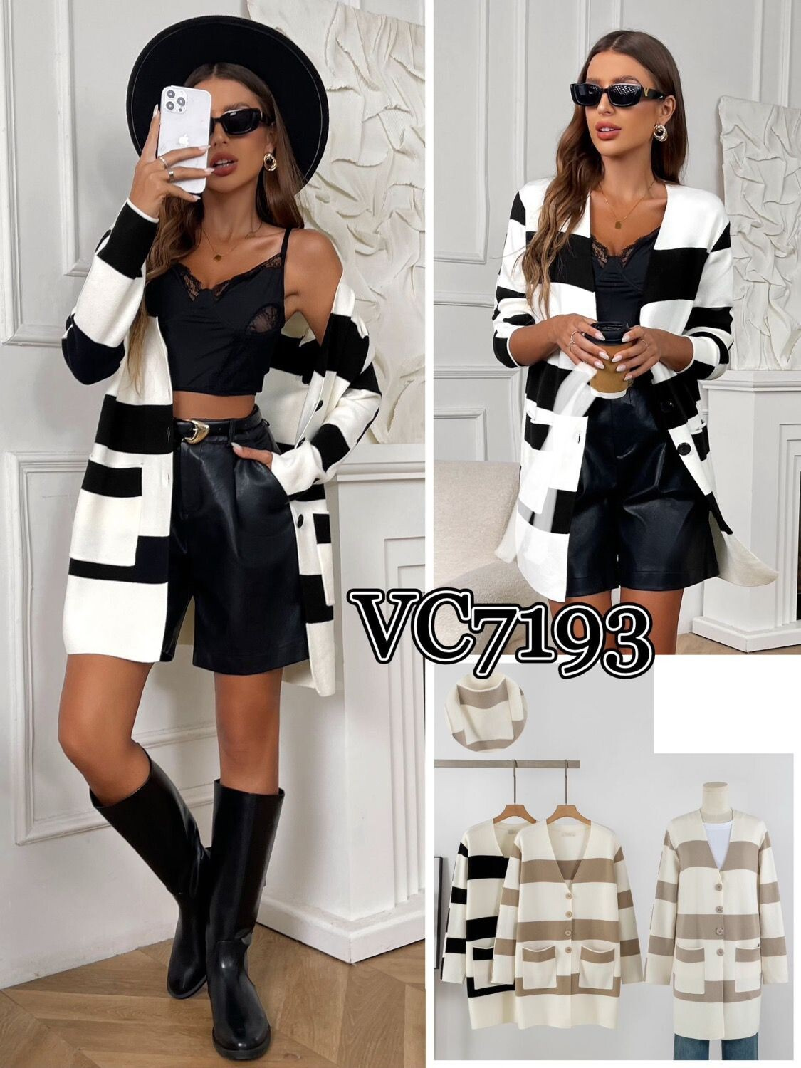 Prodloužený svetr propínací VC7193 Itálie