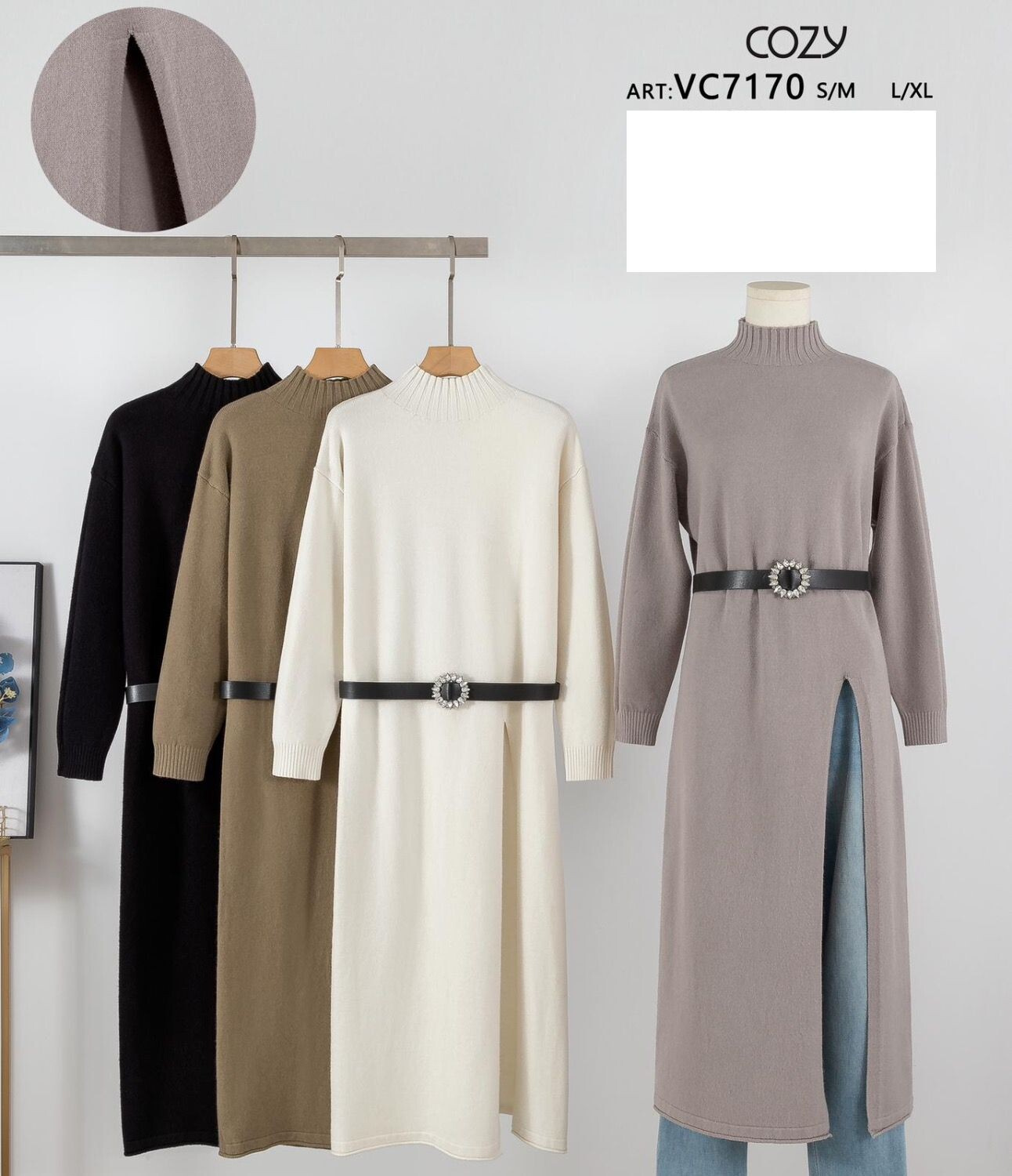 Prodloužený svetr s rozparkem, doplněný páskem. Dovoz Itálie.