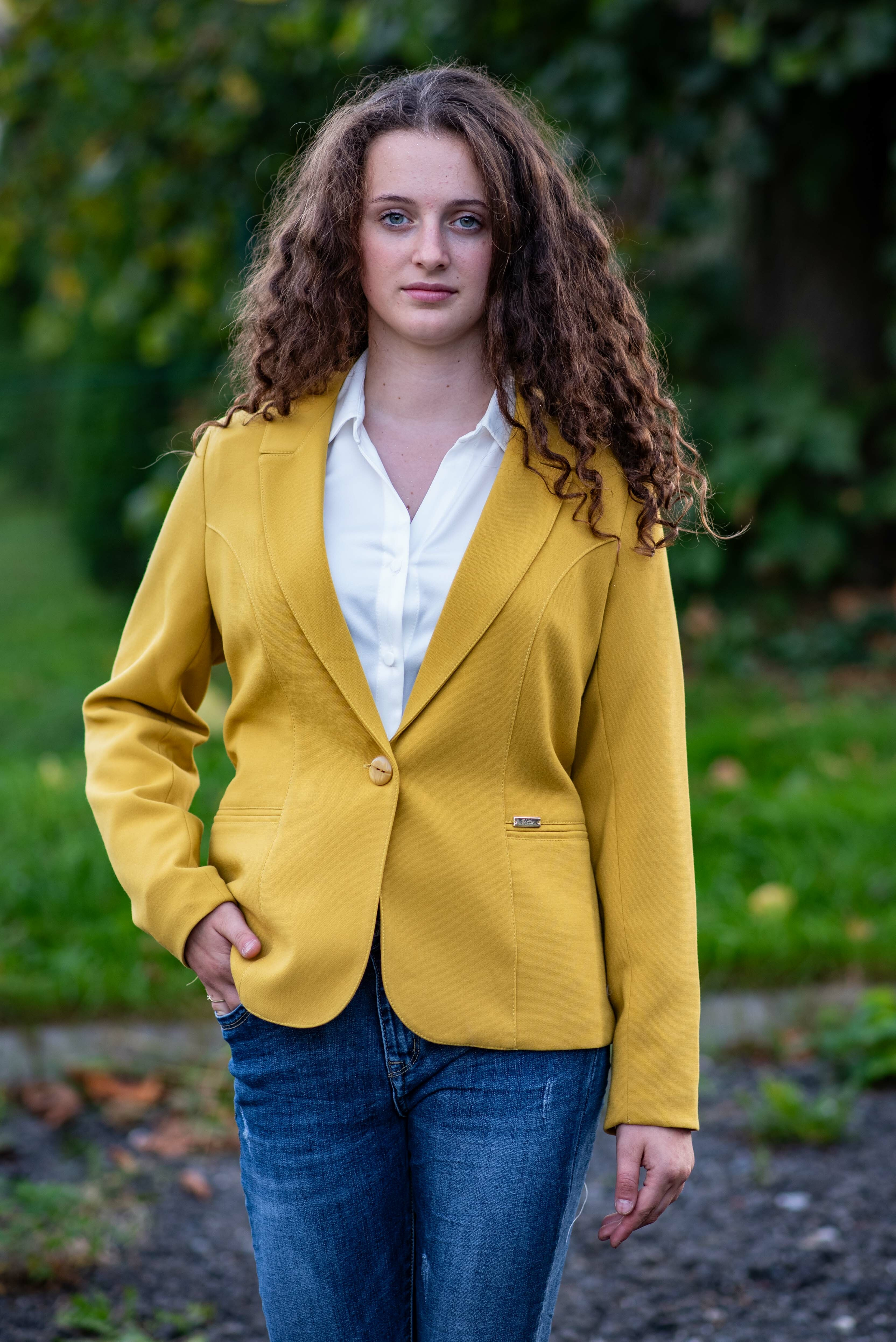 Elegantní dámské jednobarevné sako na dva knoflíčky, vypodšívkované