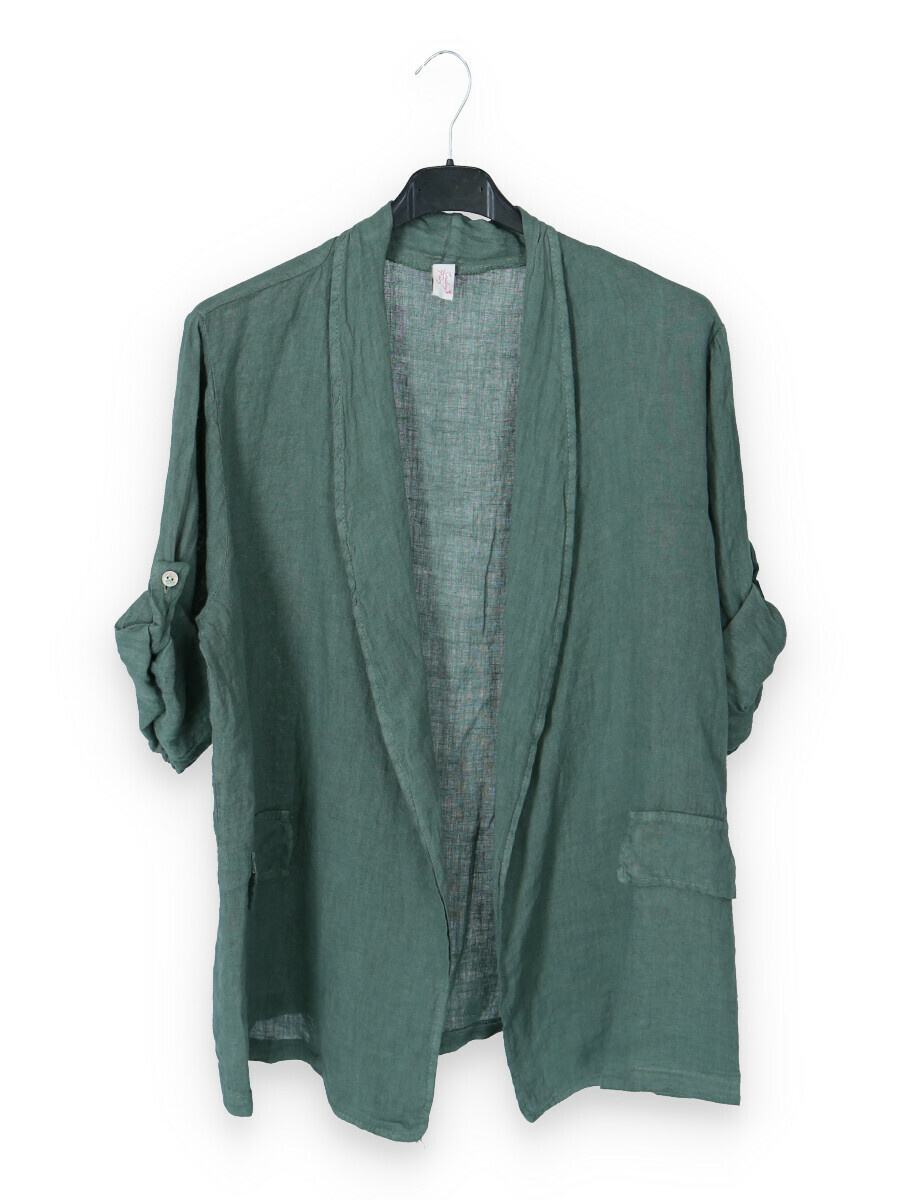 Materiál saka je 100% len, což zajišťuje vysokou prodyšnost a schopnost absorbovat vlhkost, což je ideální pro teplé letní dny. Len je také ekologicky udržitelný materiál, jehož pěstování vyžaduje méně vody a pesticidů než bavlna. Péče o sako je jednoduchá - doporučujeme chemické čištění, které pomáhá udržet jeho tvar a barvu.