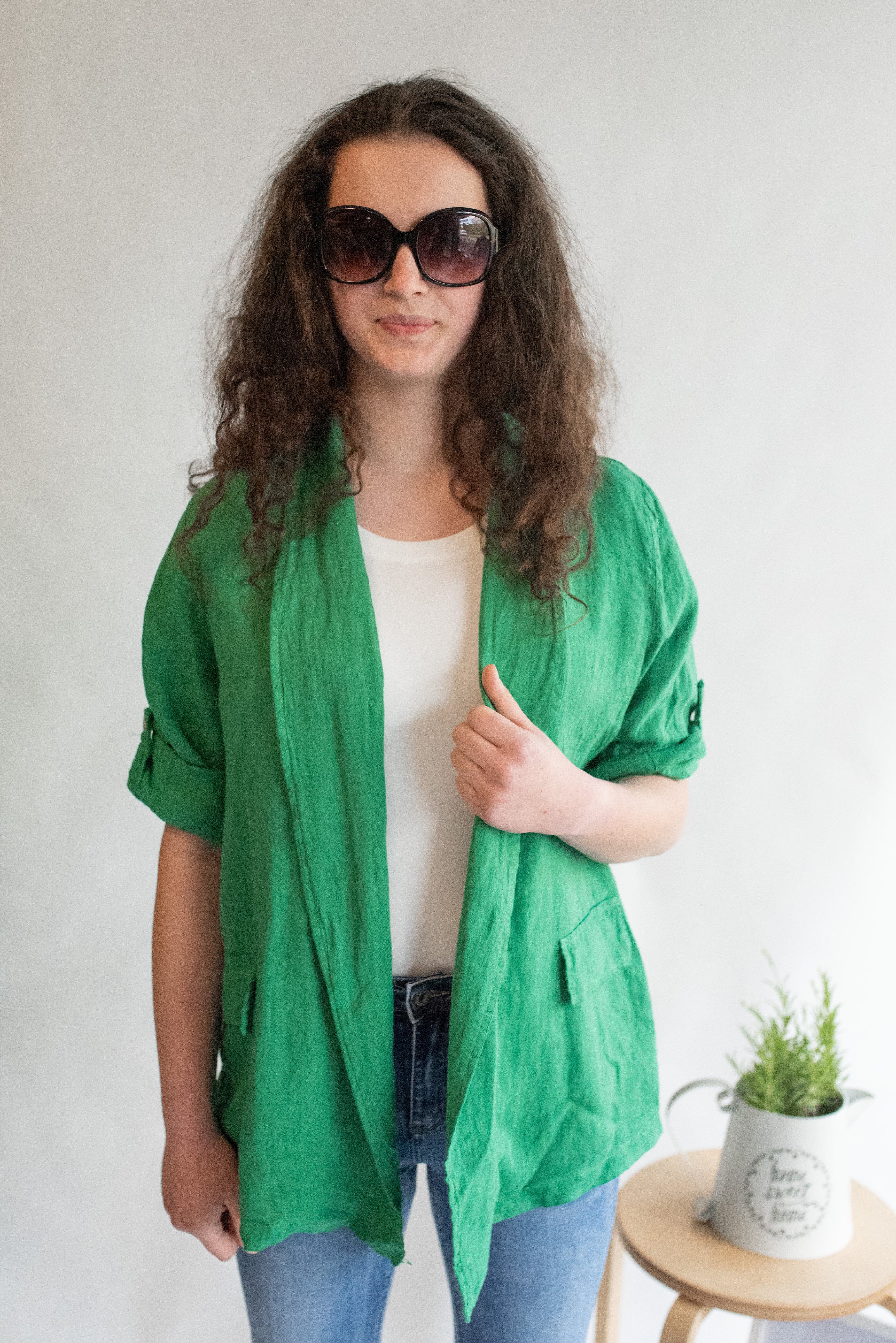 Lněné sako, falešné kapsy