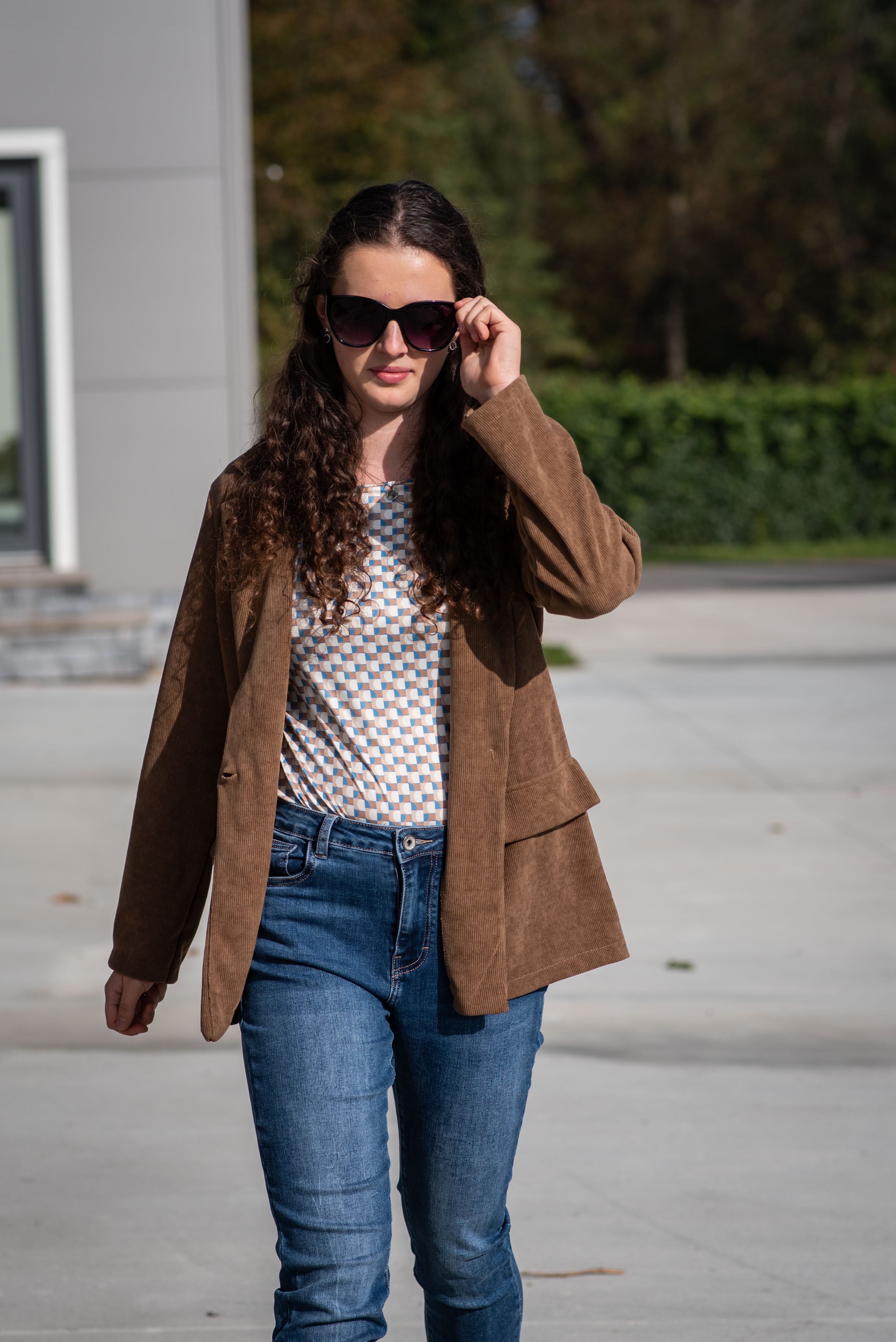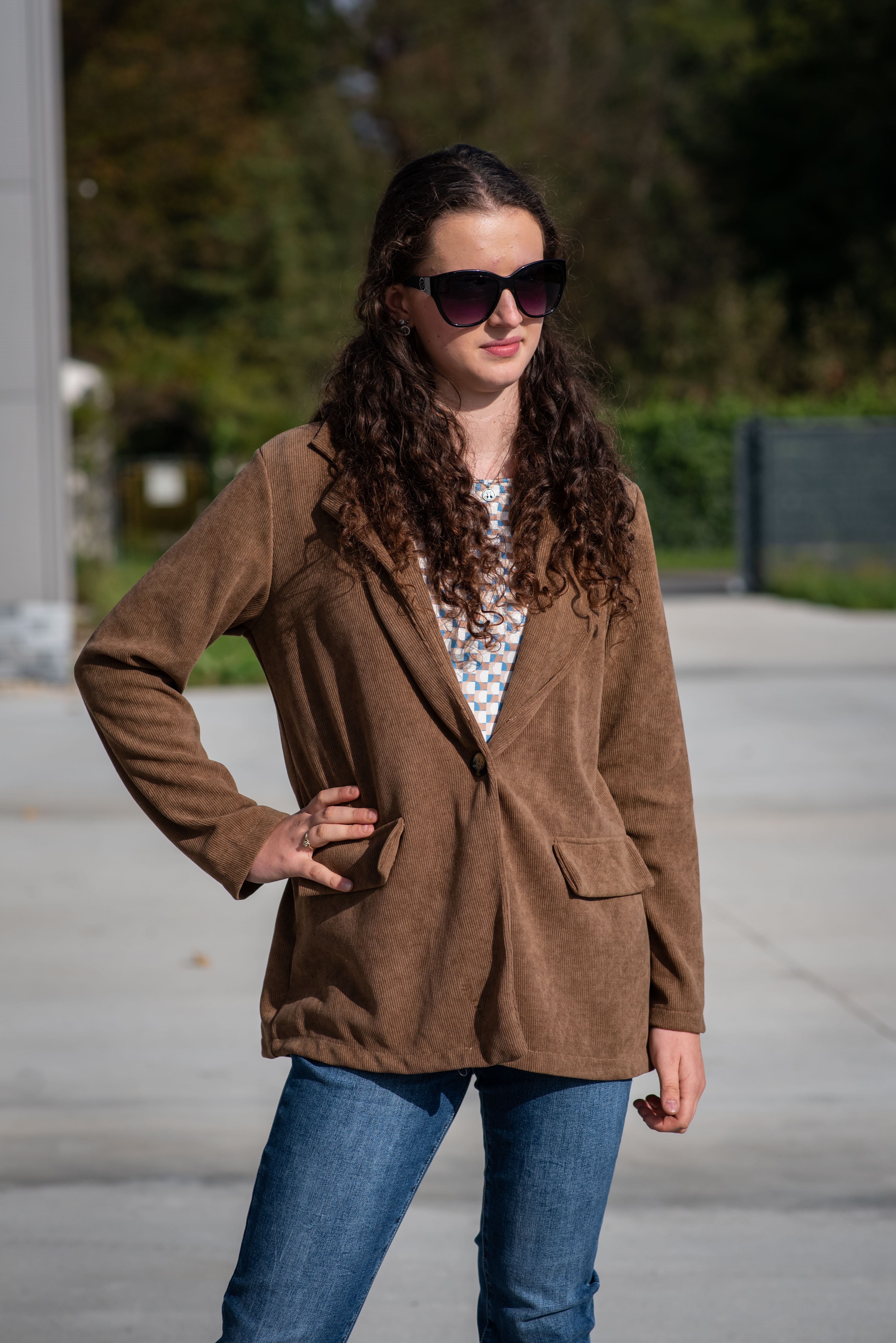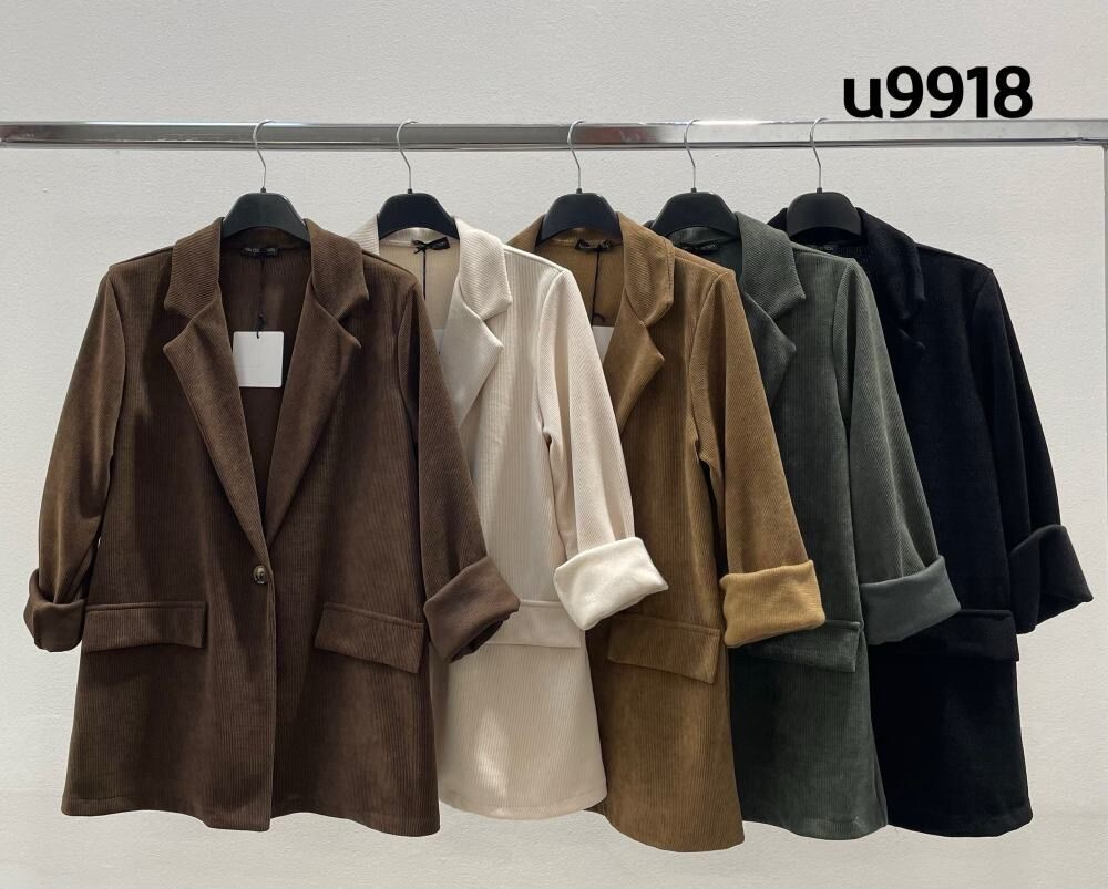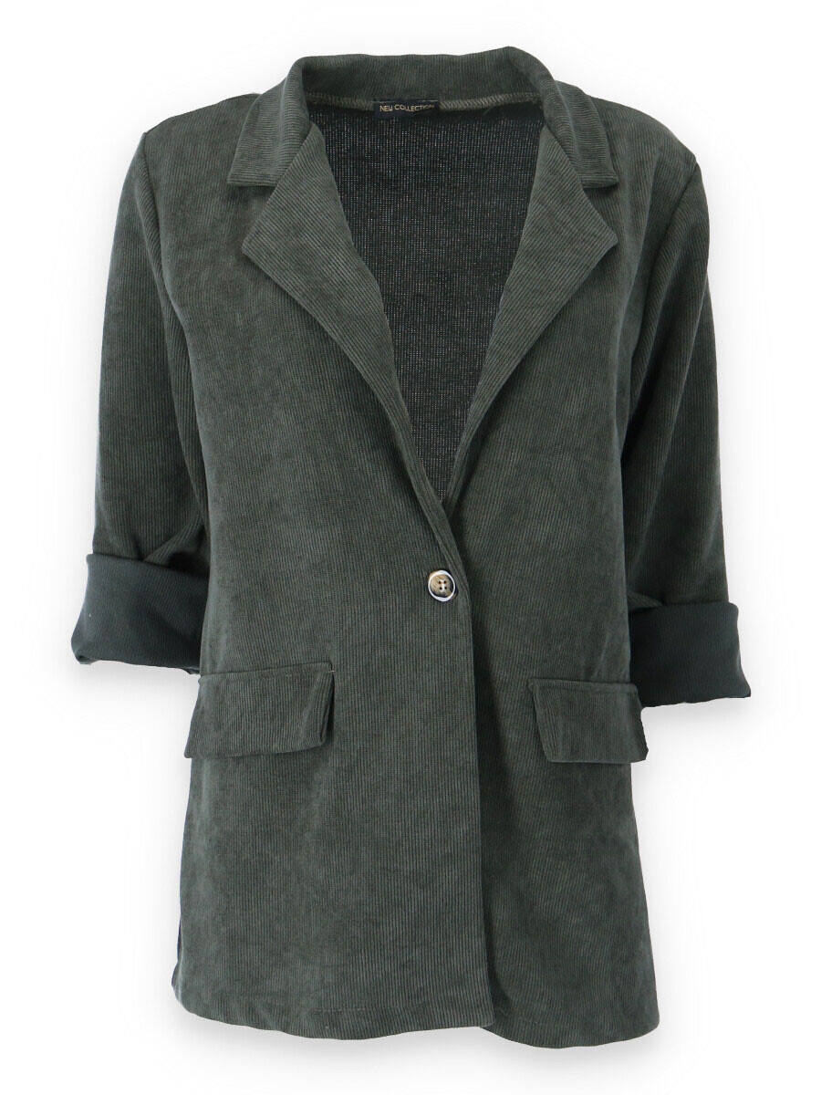 Trendy manšestrové sako, zapínání na knoflík. Na přední straně našité klopy.