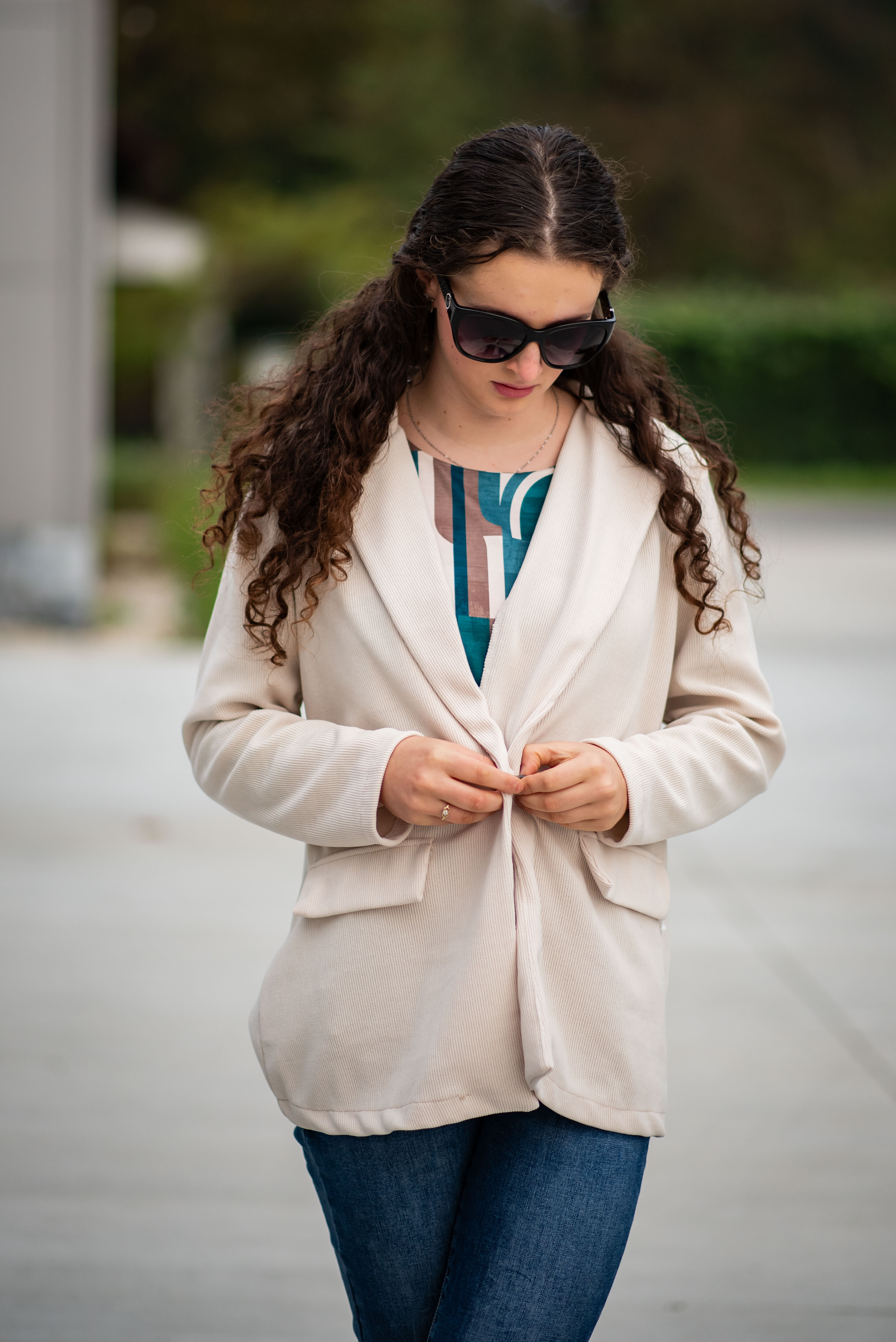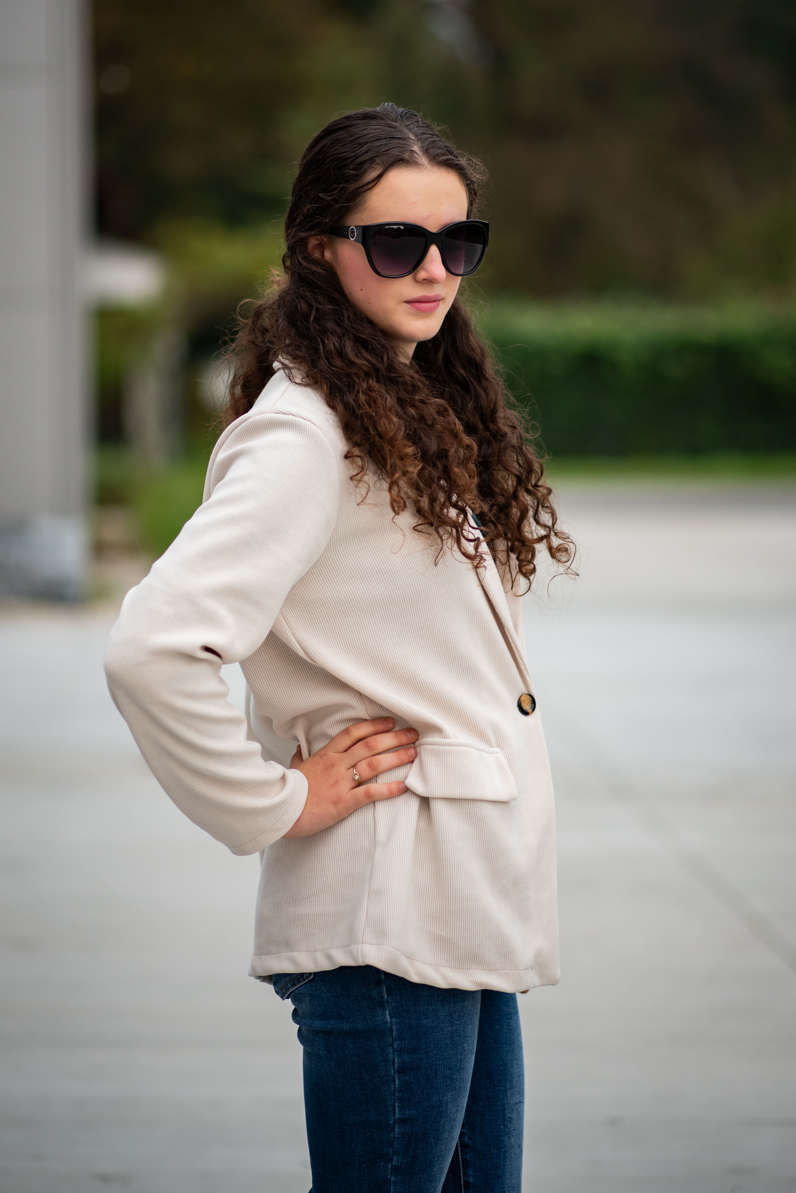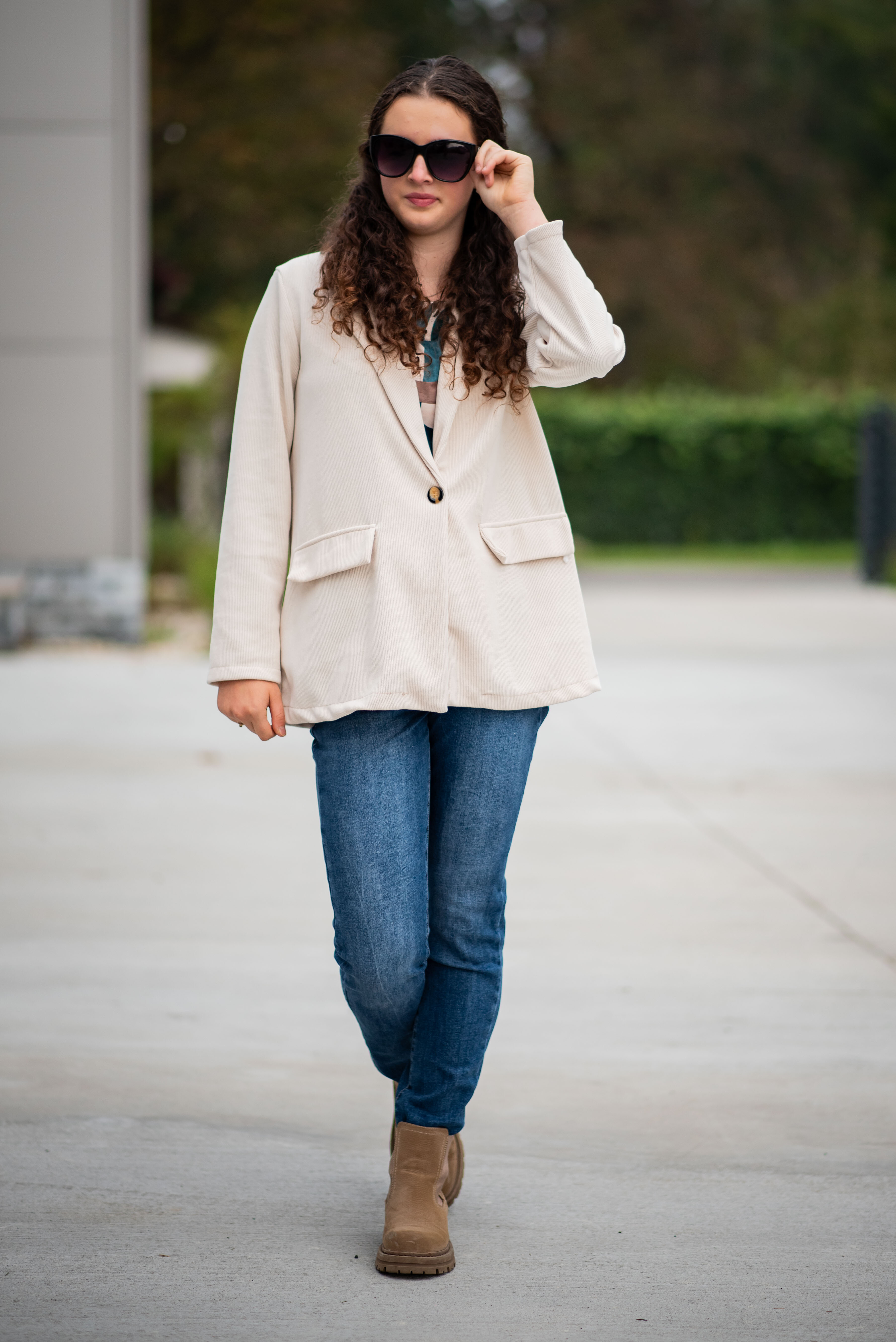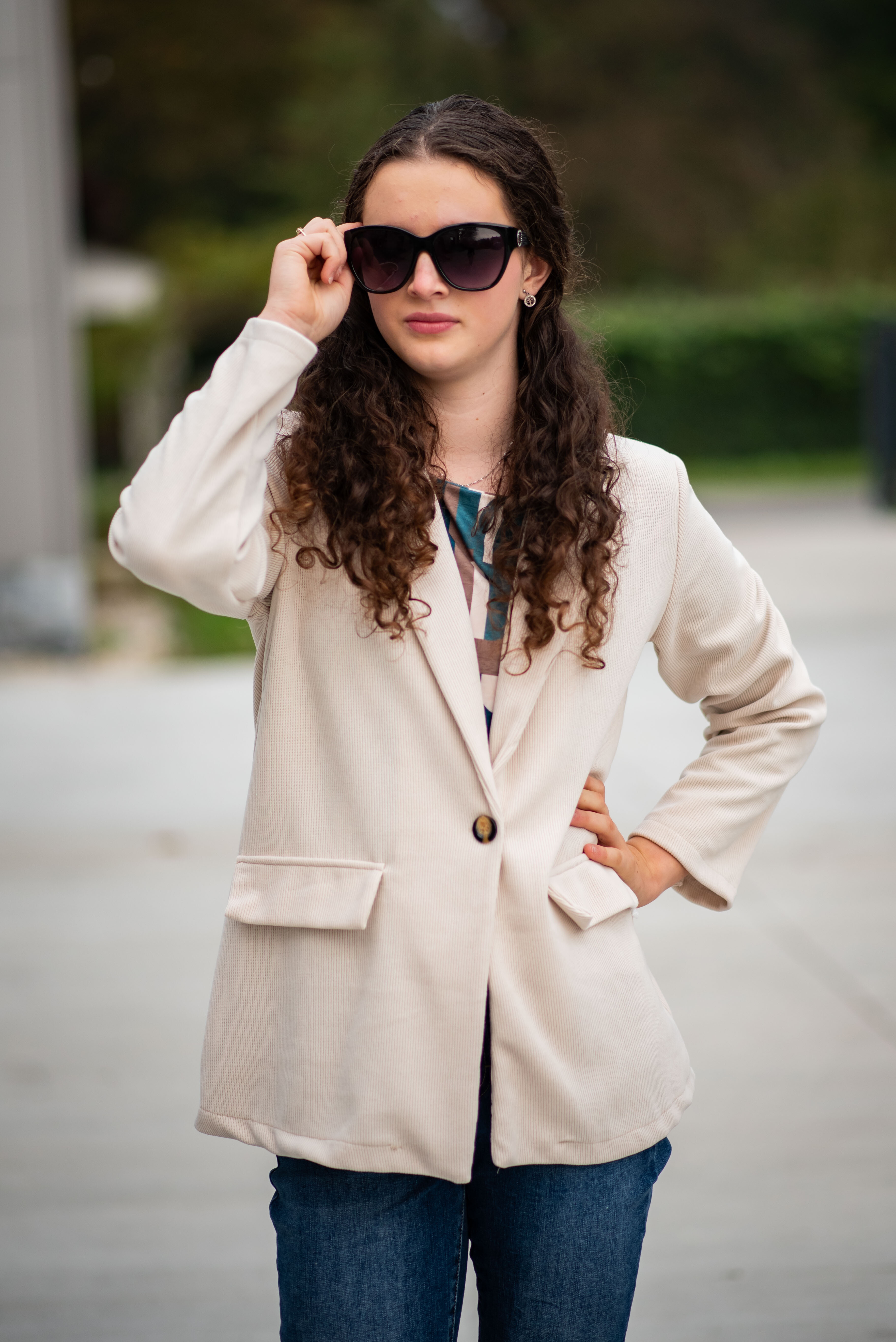 Trendy manšestrové sako, zapínání na knoflík. Na přední straně našité klopy.