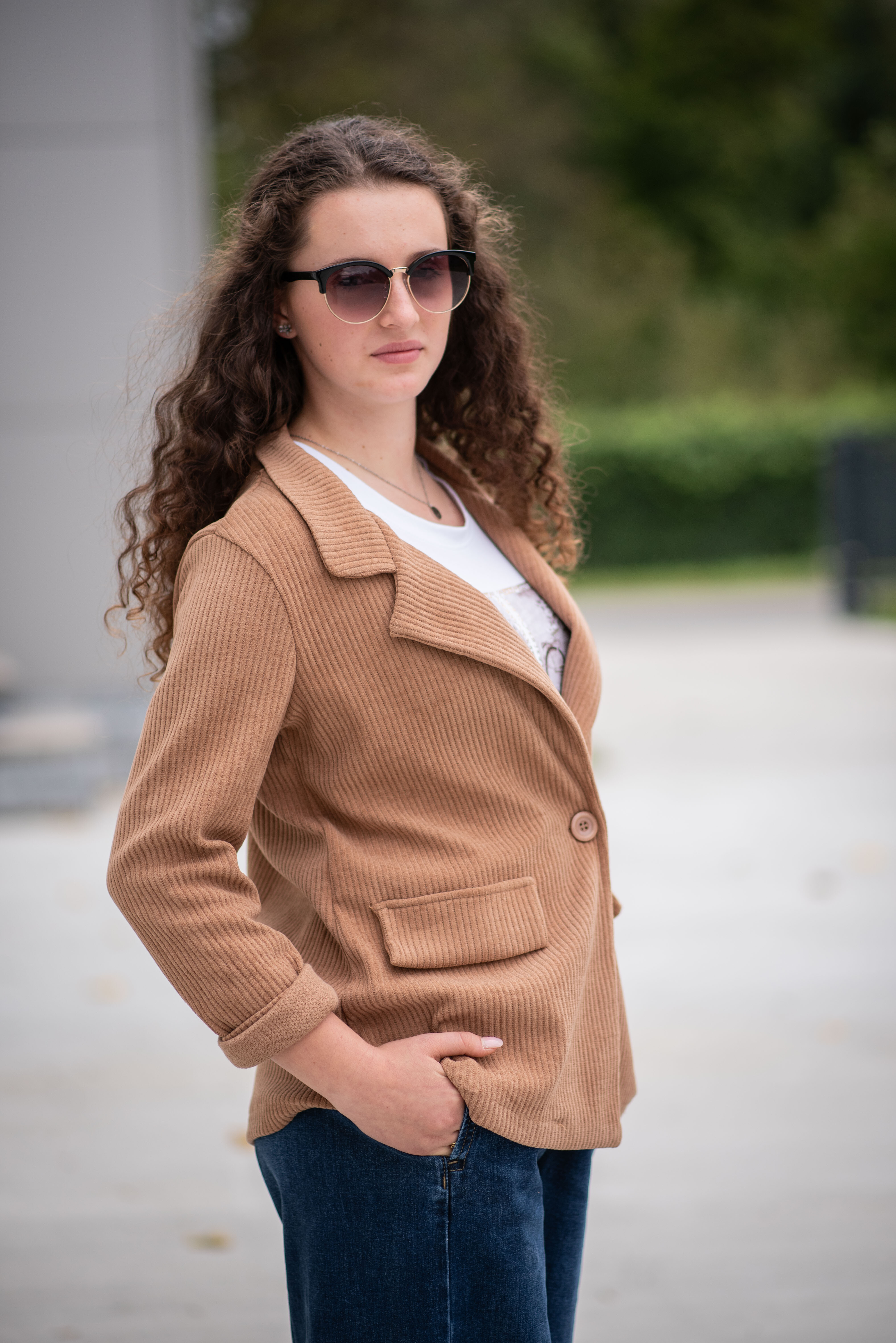 Stylové manšestrové sako na knoflíky, našité falešné kapsy.