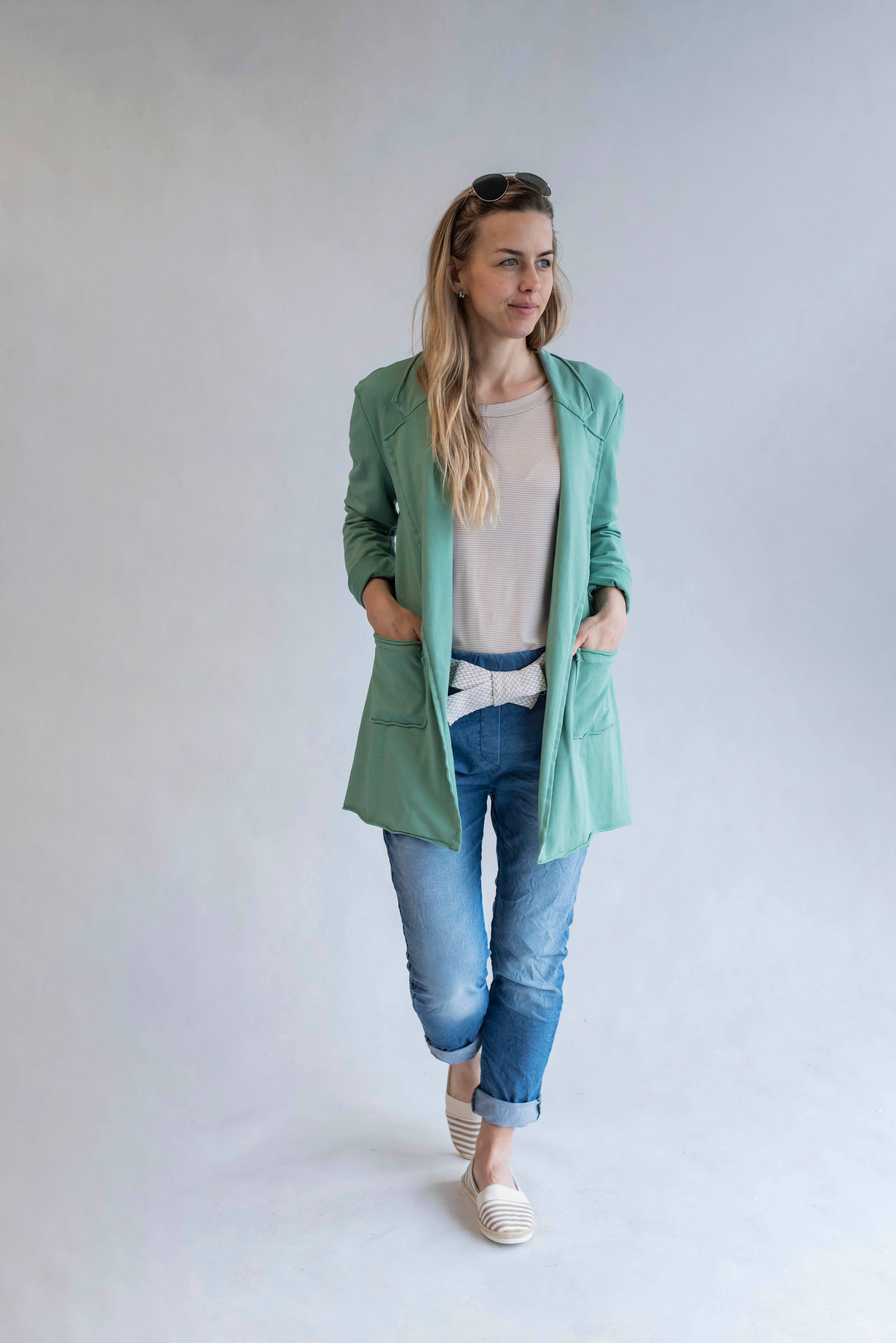 Stylové bavlněné prodloužené sako pro denní nošení.