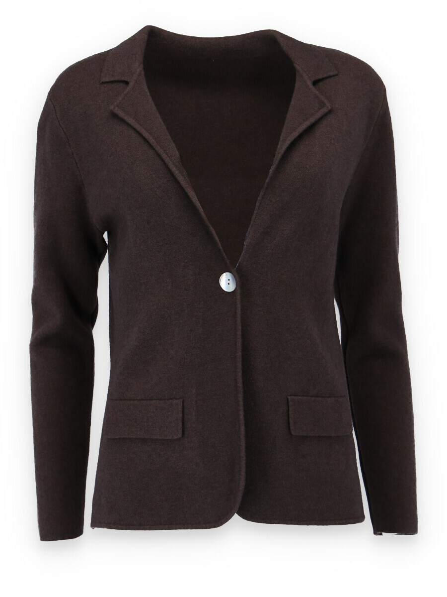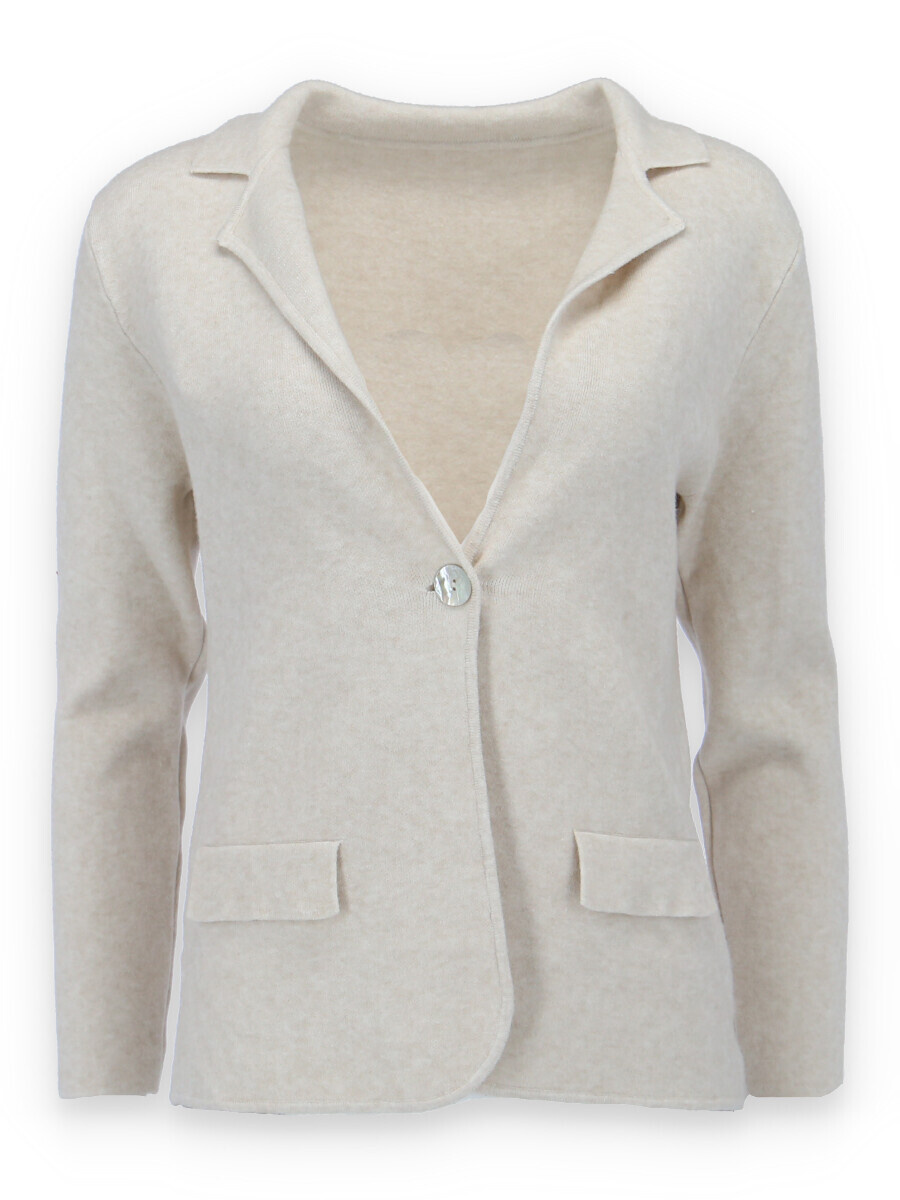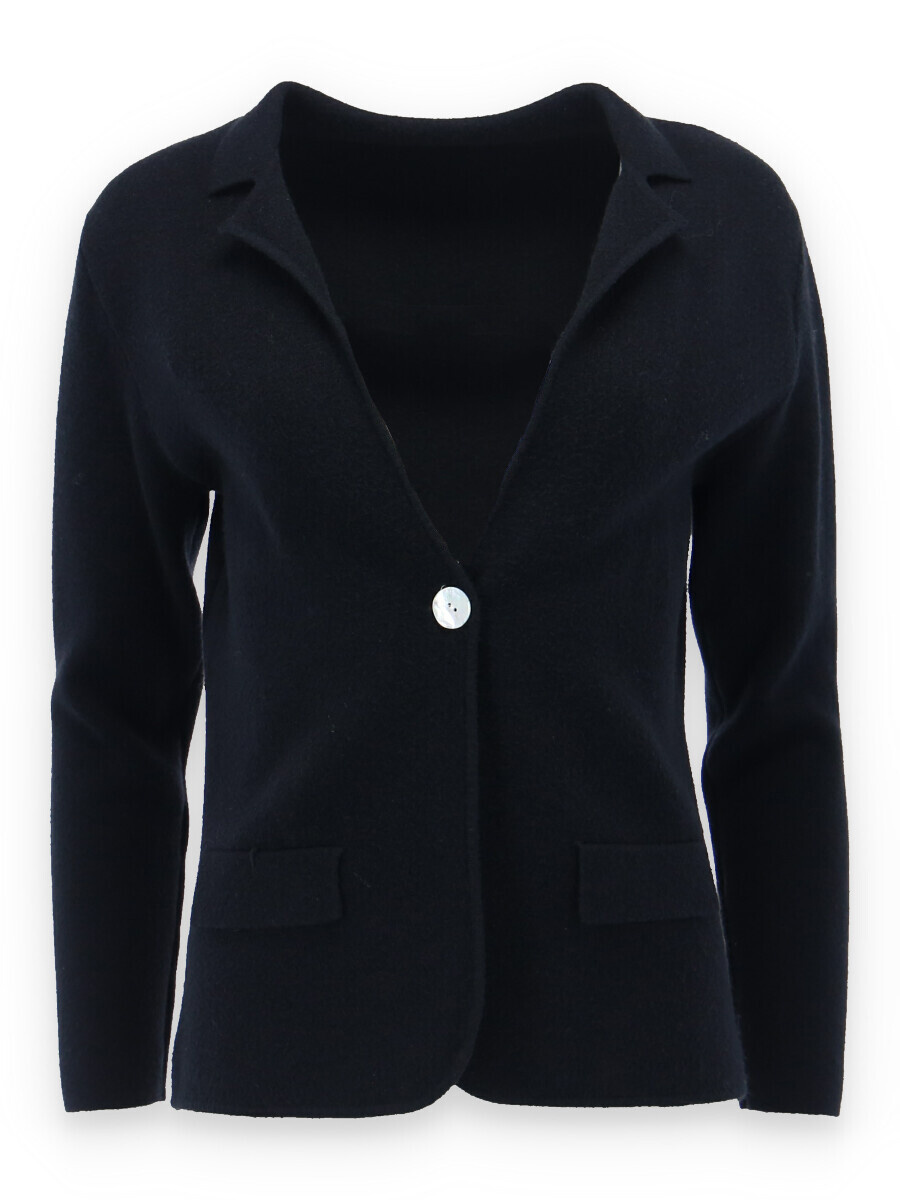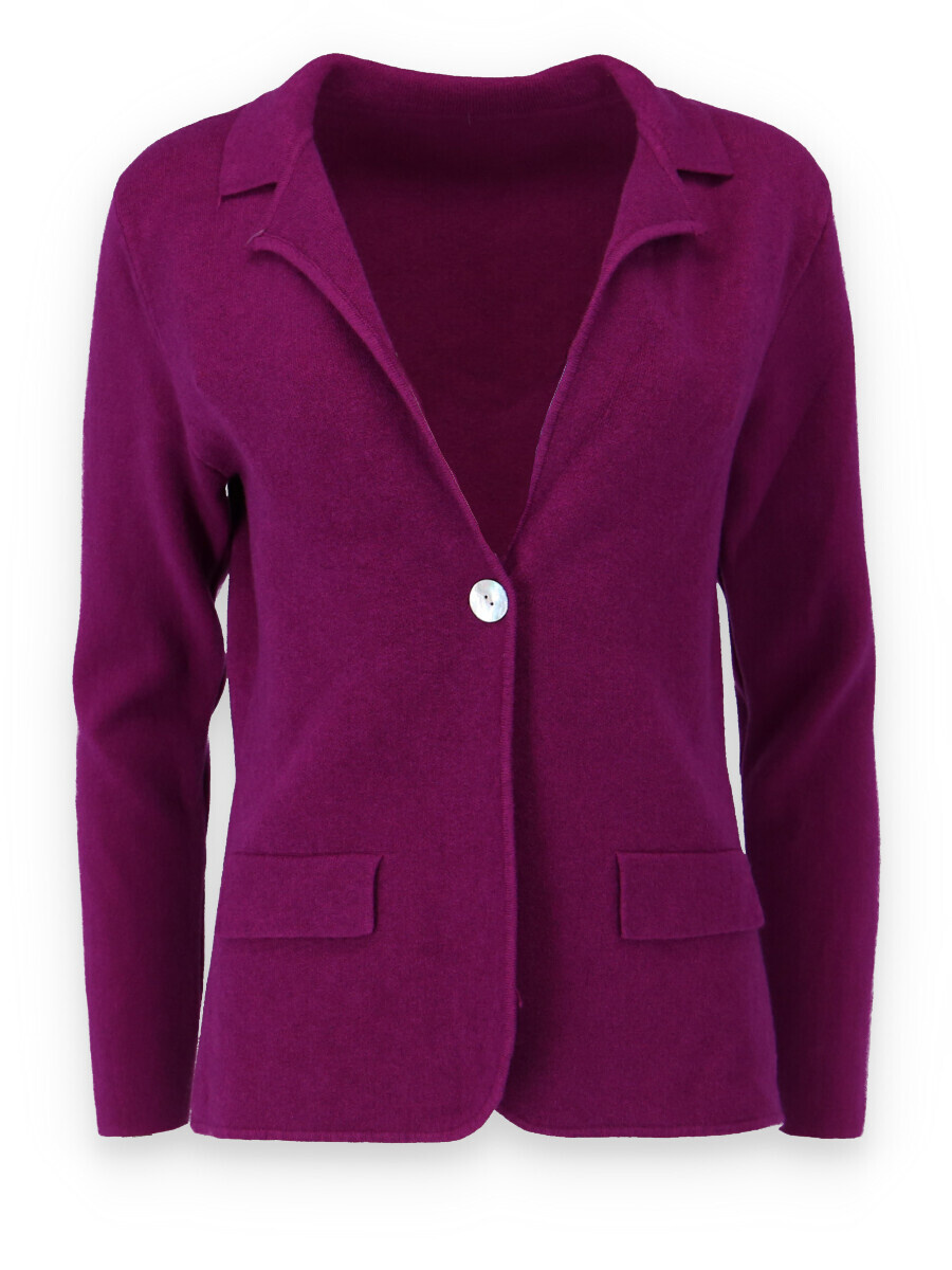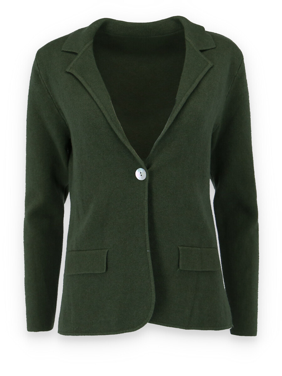 Úpletové sako LADY velikosti se zapínáním na knoflík, na přední části našité falešné kapsy. Trendy kousek, který by neměl chybět v žádném šatníku moderní ženy. Dovoz Itálie.