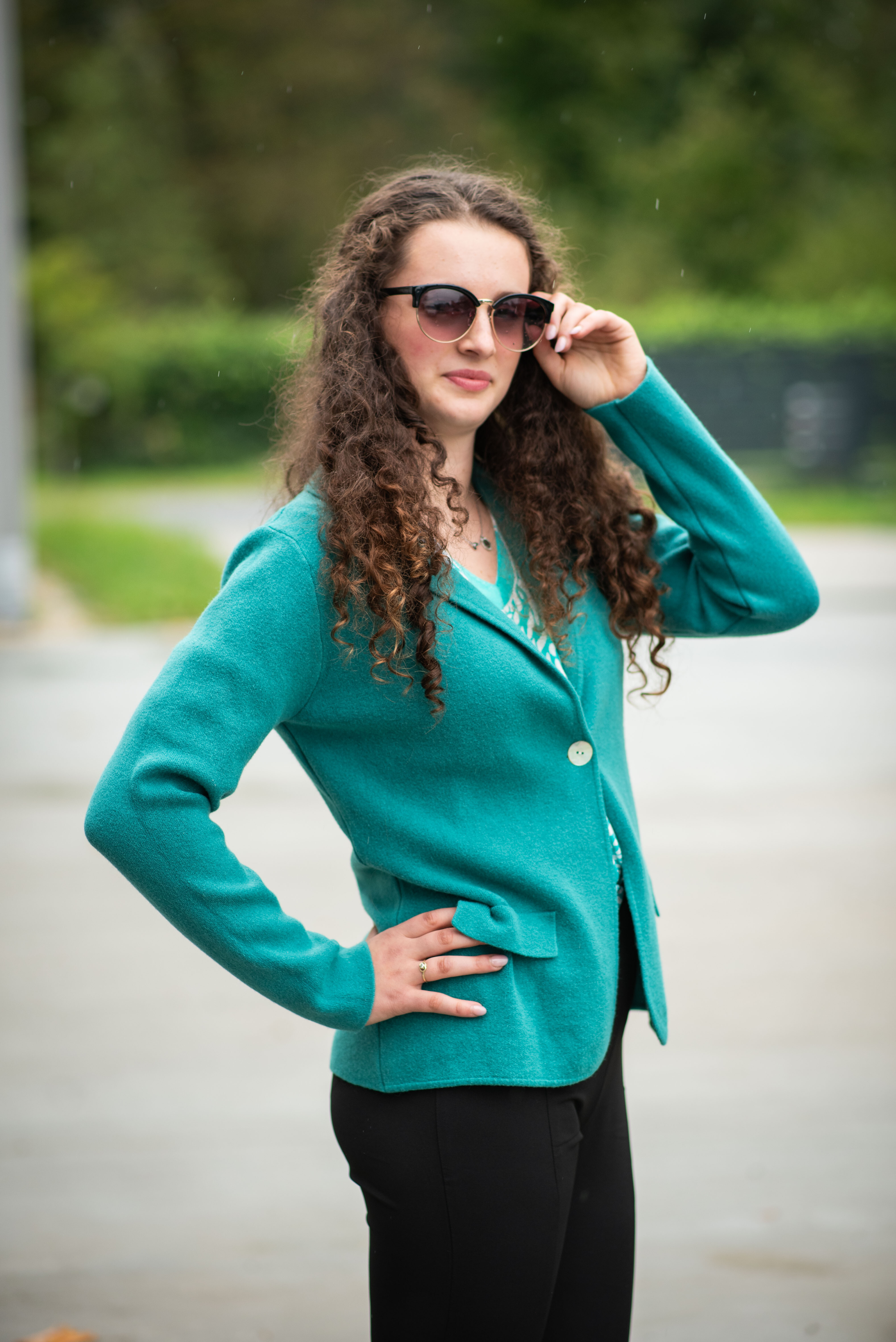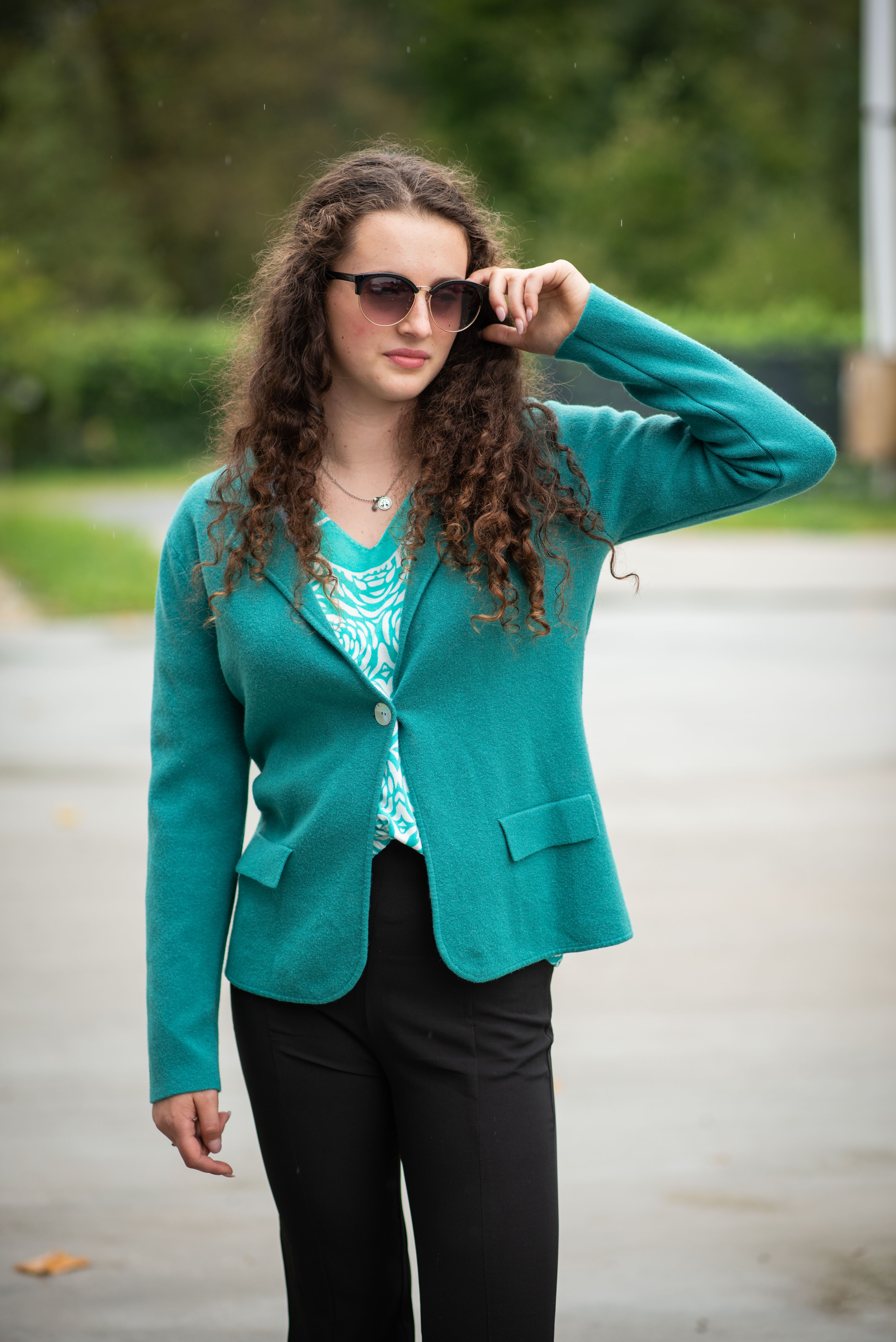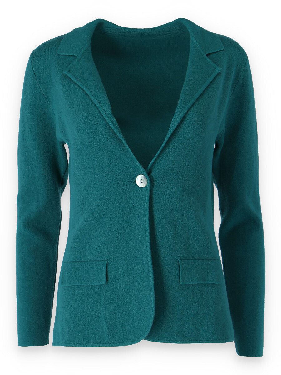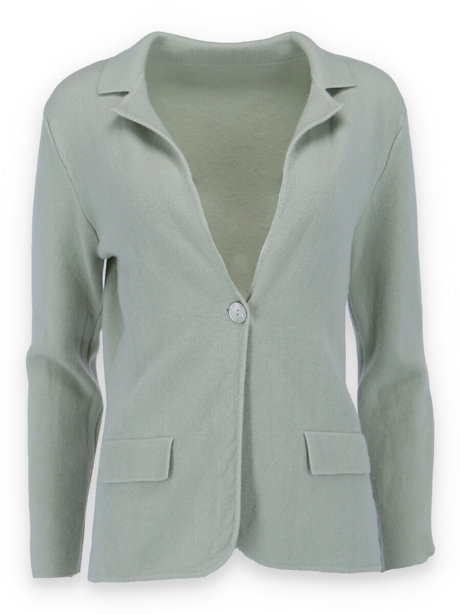 Úpletové sako LADY velikosti se zapínáním na knoflík, na přední části našité falešné kapsy. Trendy kousek, který by neměl chybět v žádném šatníku moderní ženy. Dovoz Itálie.