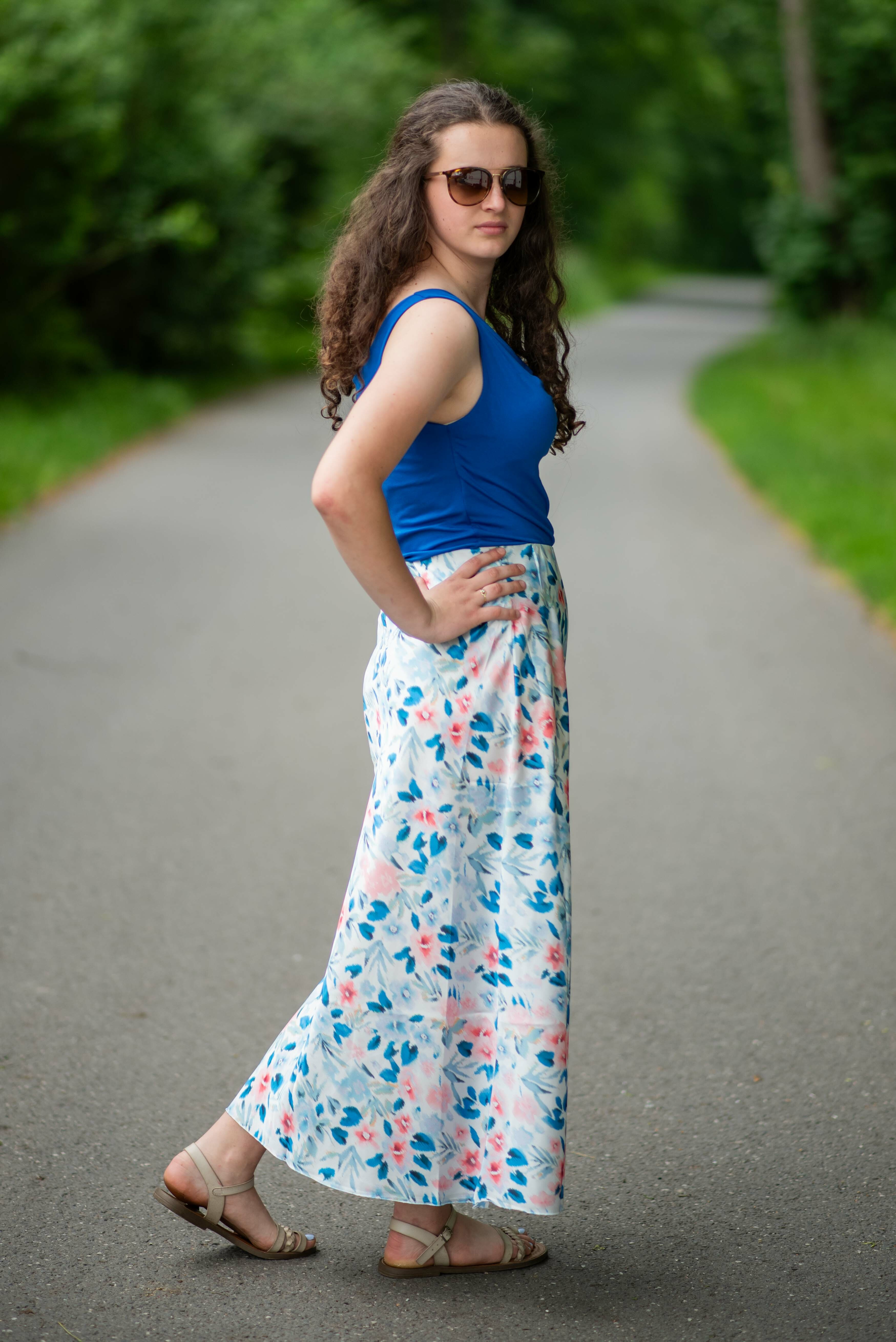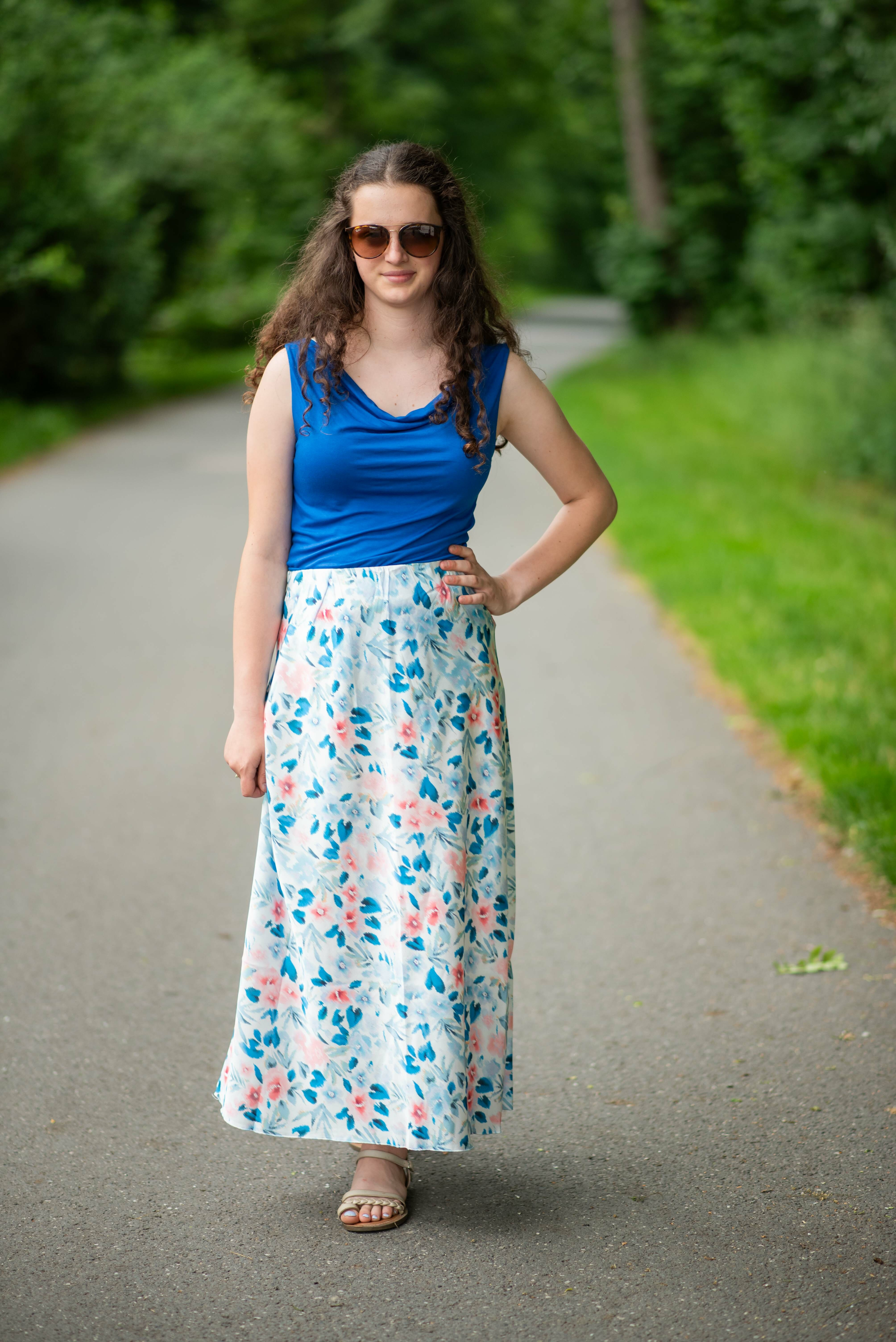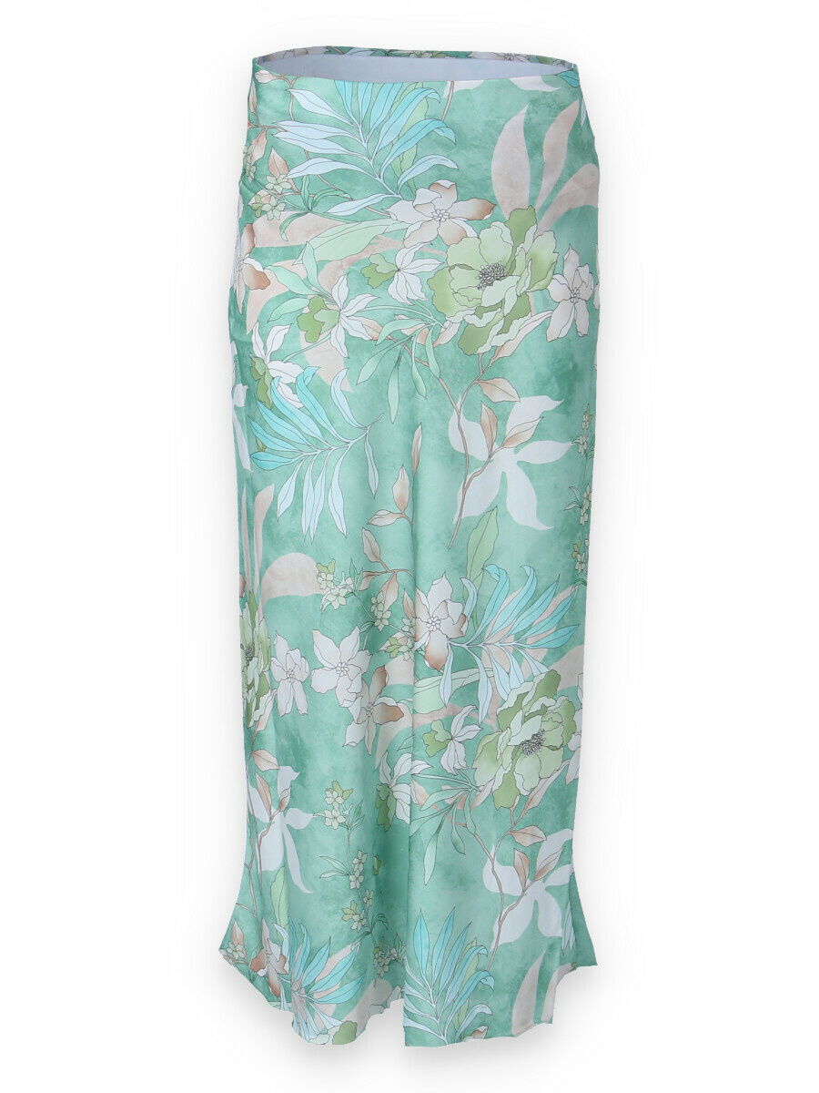 Dlouhá saténová sukně s potiskem, vhodné pro období JARO/LÉTO, velice příjemný a lehký materiál, v pase do gumy.