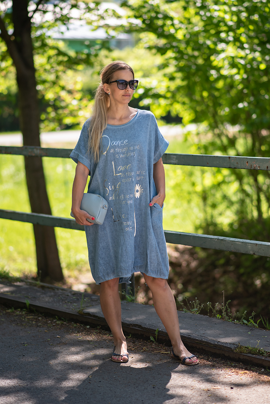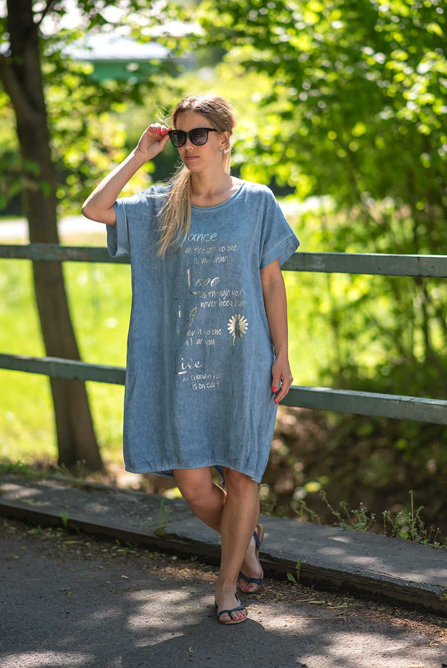 Elegantní dámská bavlněná volnočasová šatovka , všité postranní kapsy pro denní nošení, z lehkého a vzdušného materiálu.