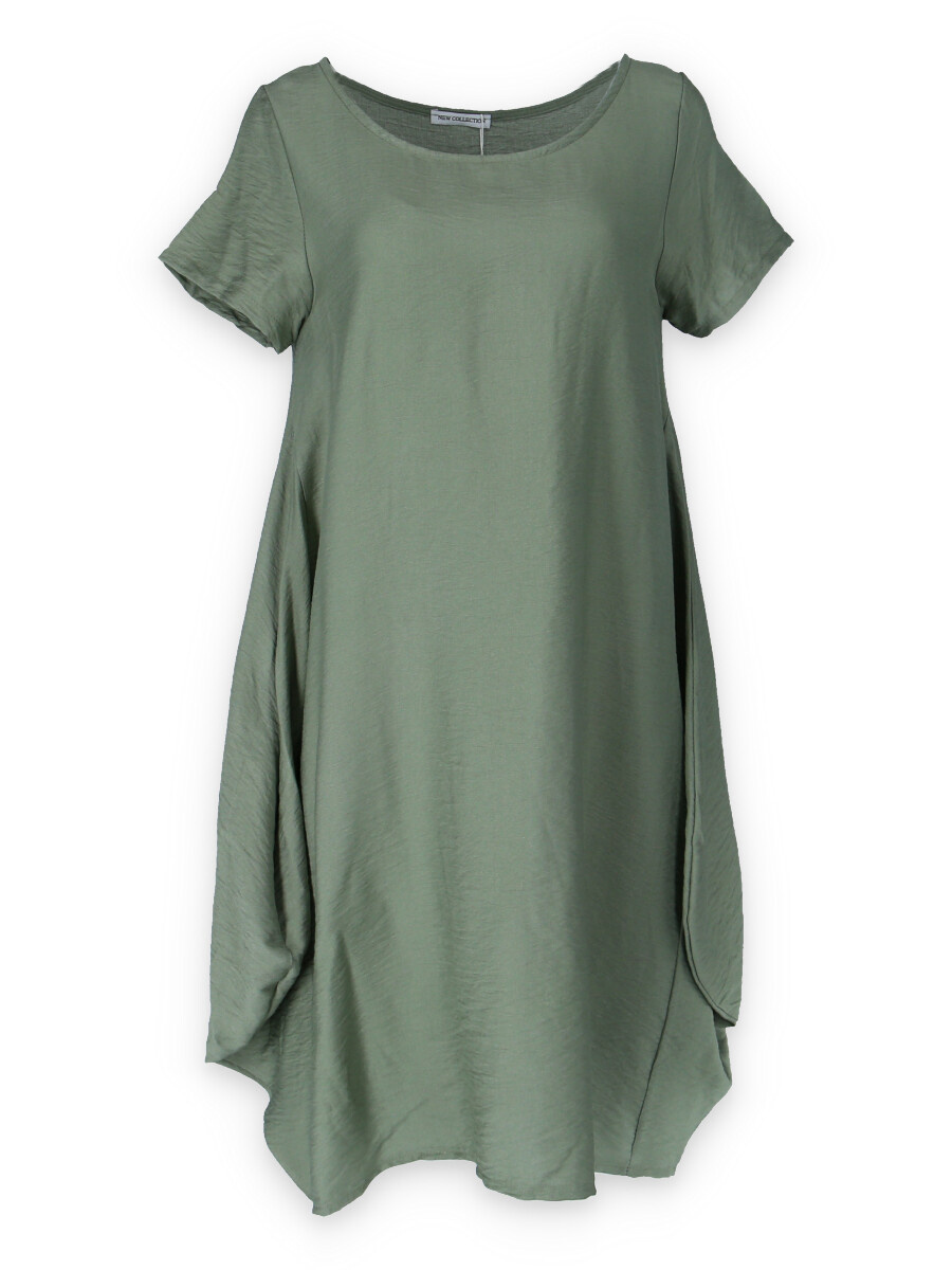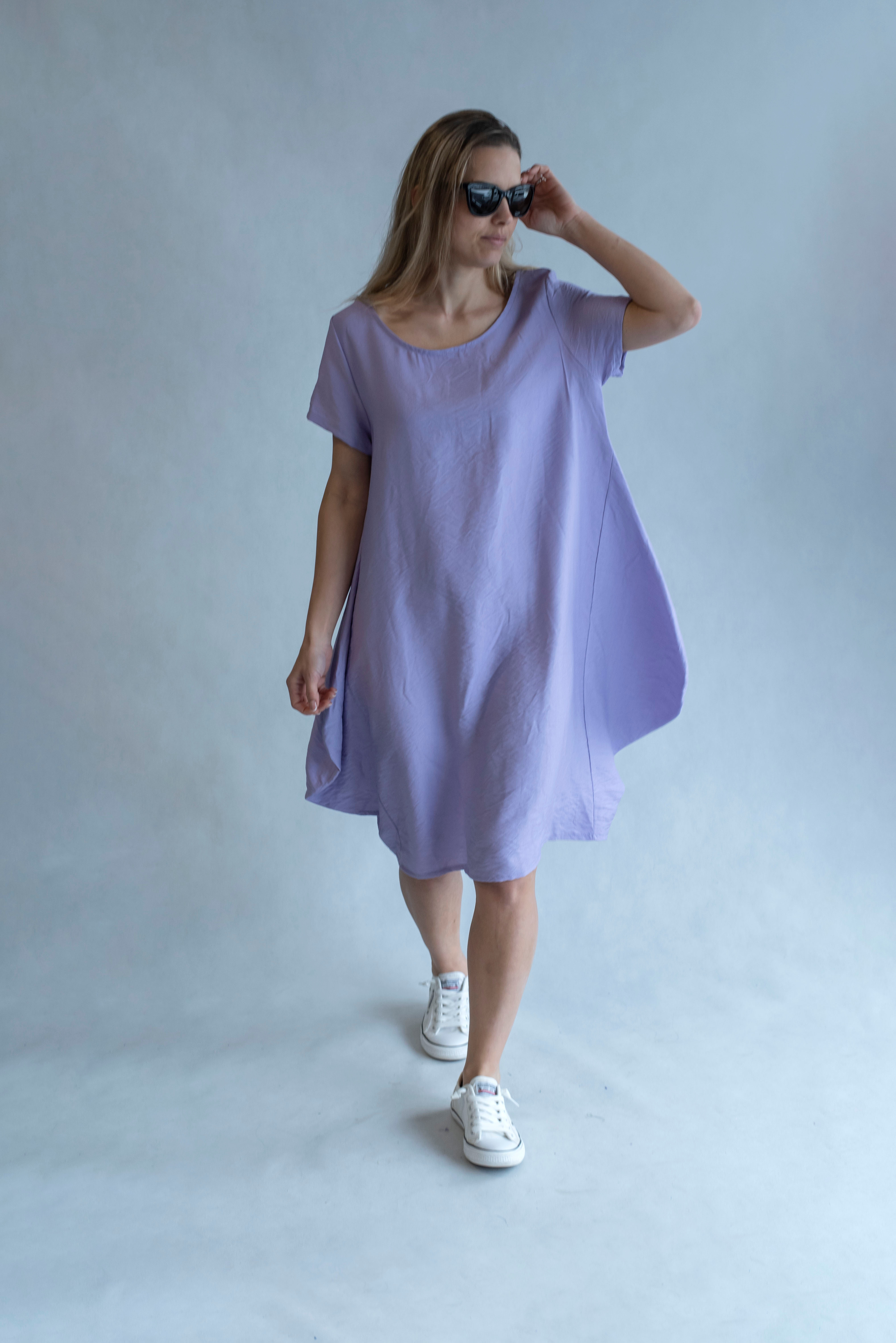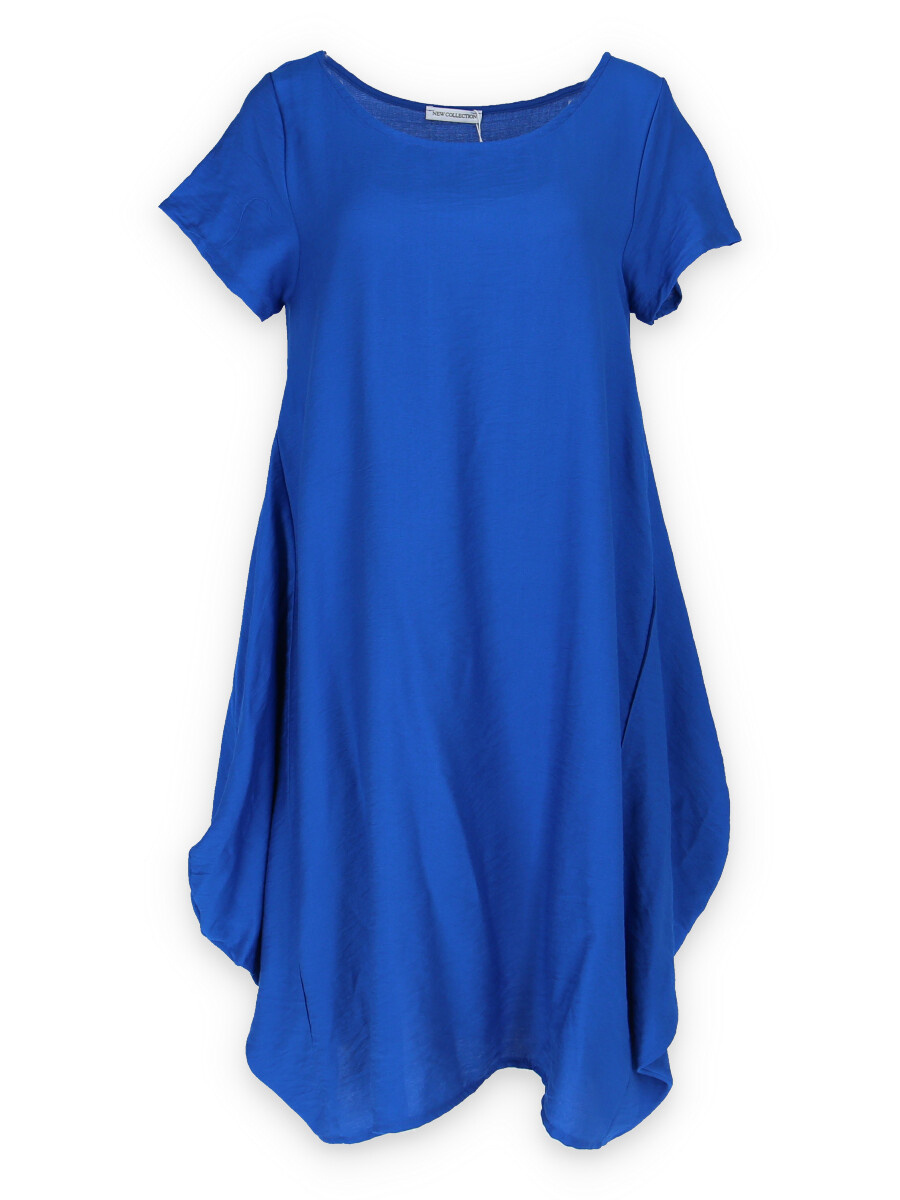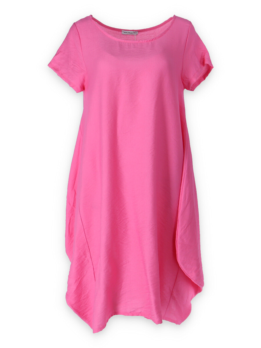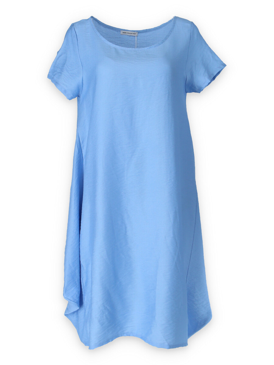 Elegantní, dámská lněná volnočasová šatovka pro denní nošení z lehkého a vzdušného materiálu , kulatý výstřih , do cípu, vyrobeno v Italii