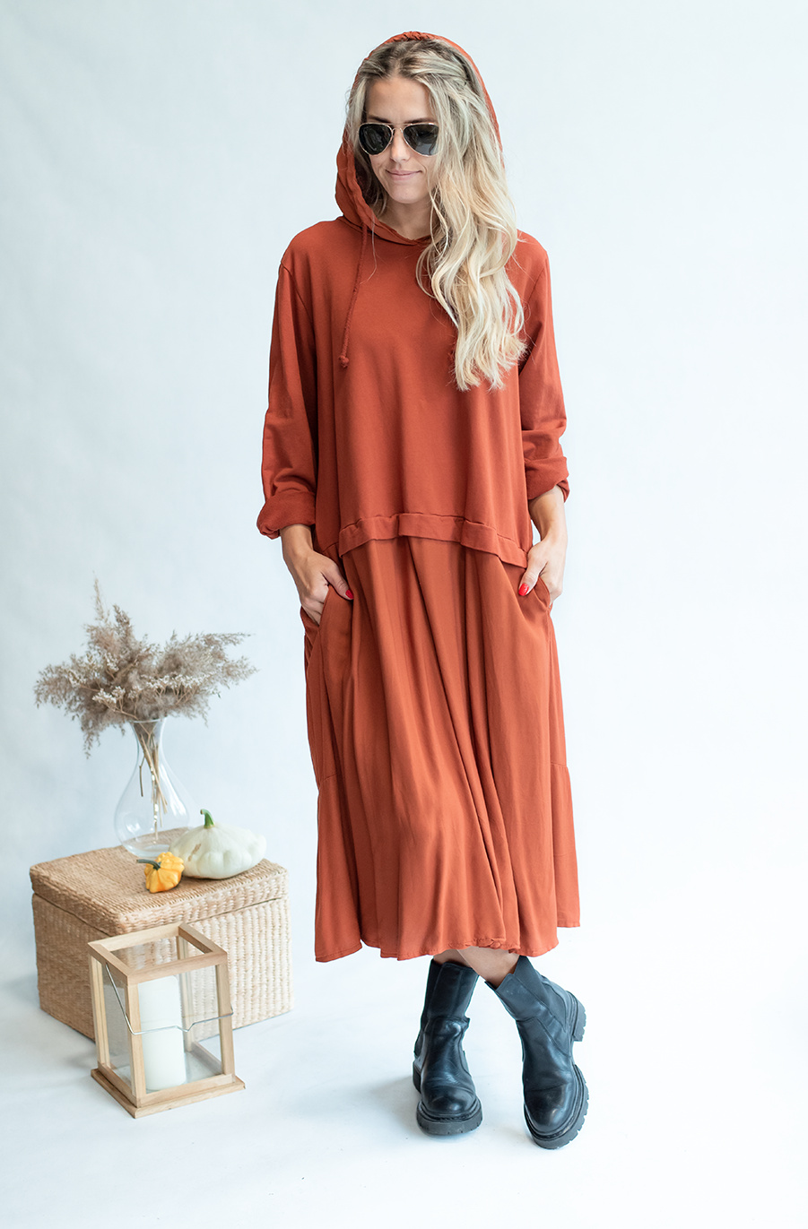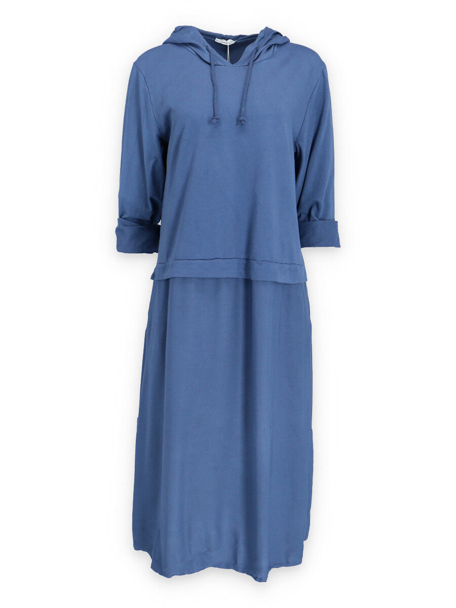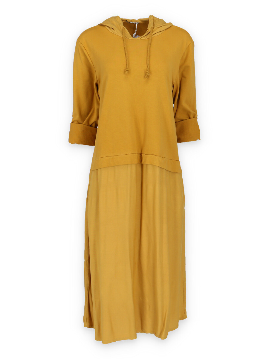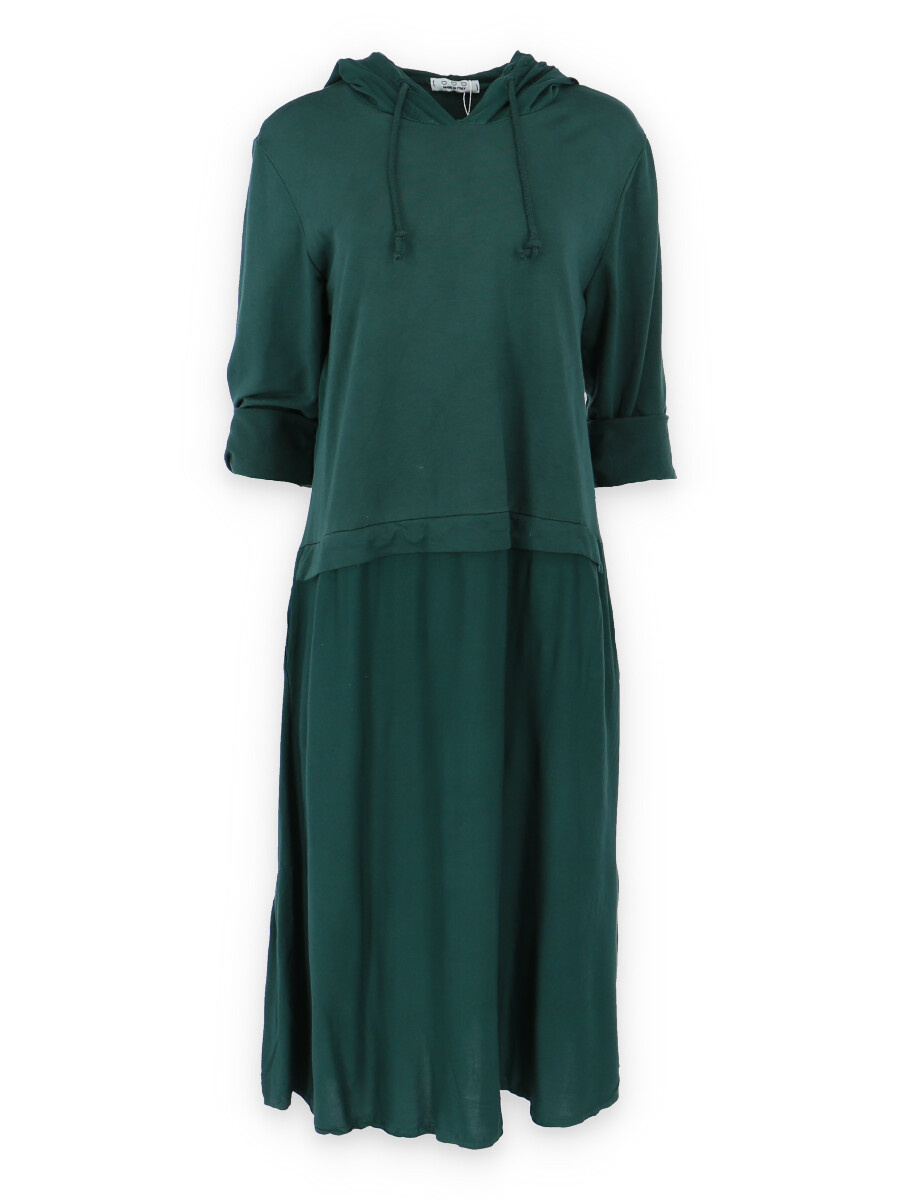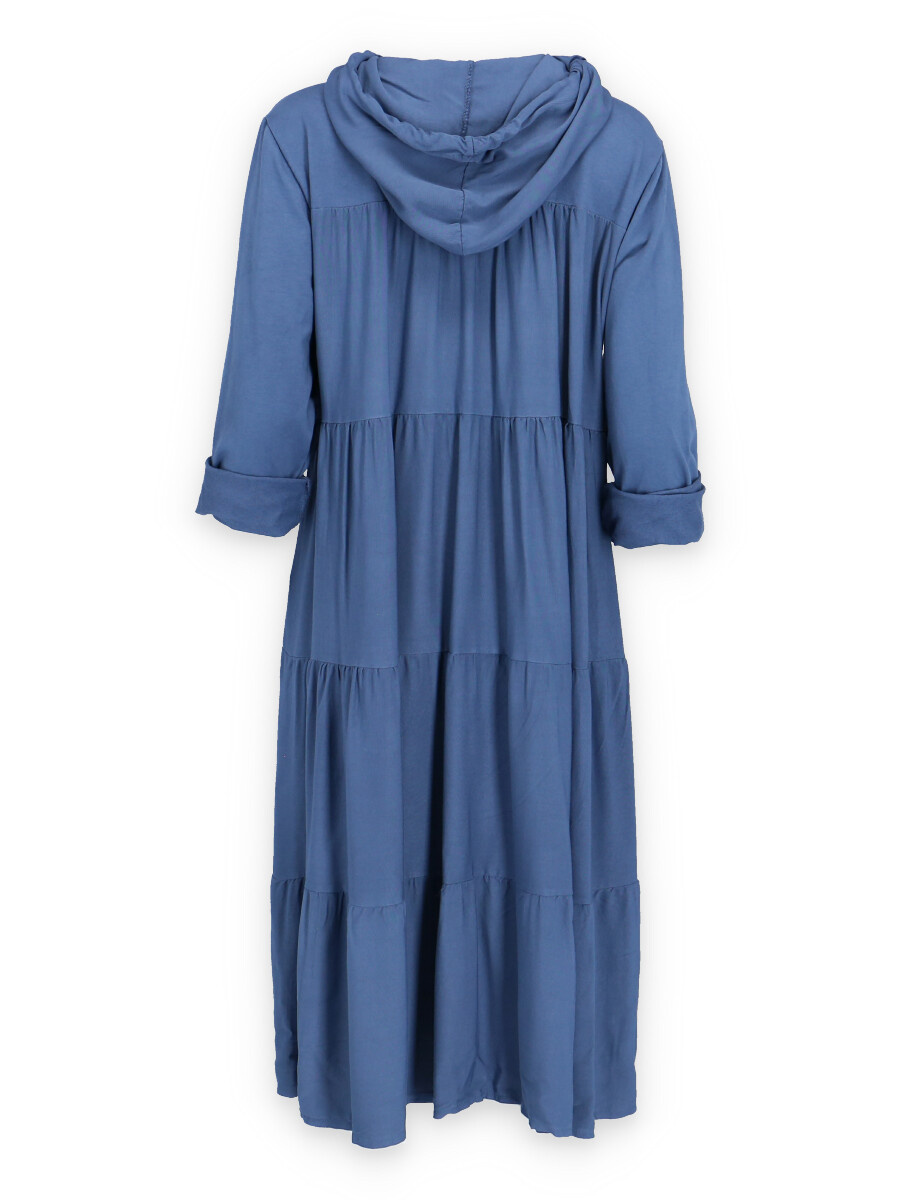 Módní dámské šatovka s kapucí s dlouhým rukávem, všívané kapsy
