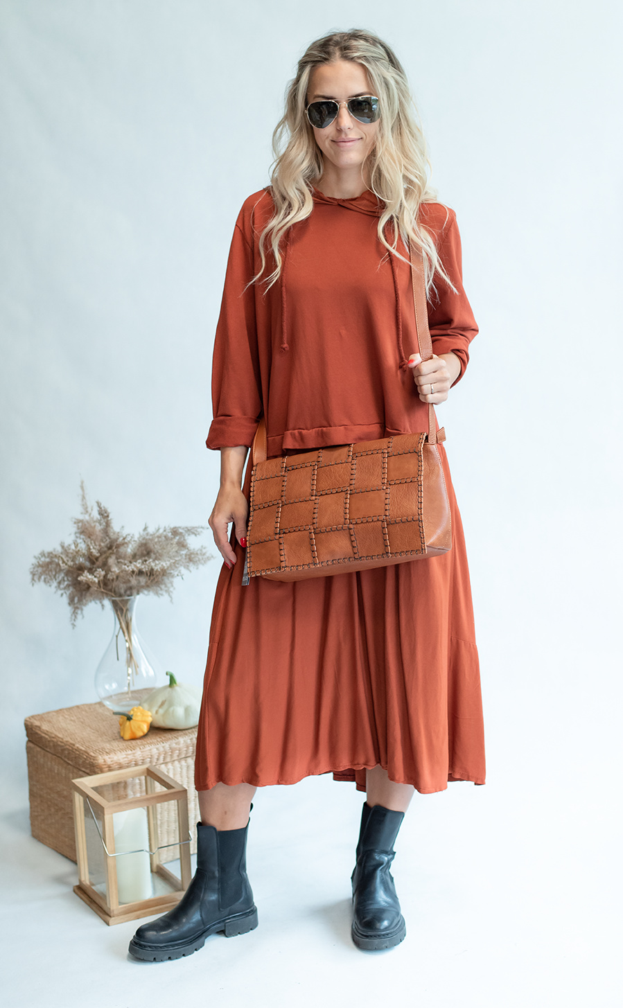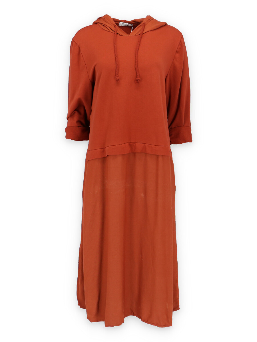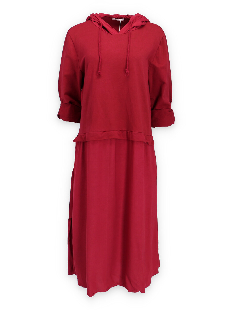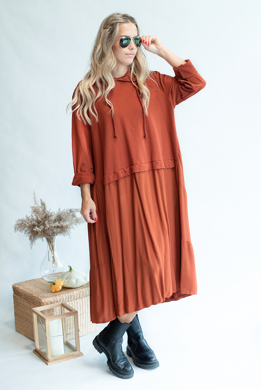Módní dámské šatovka s kapucí s dlouhým rukávem, všívané kapsy