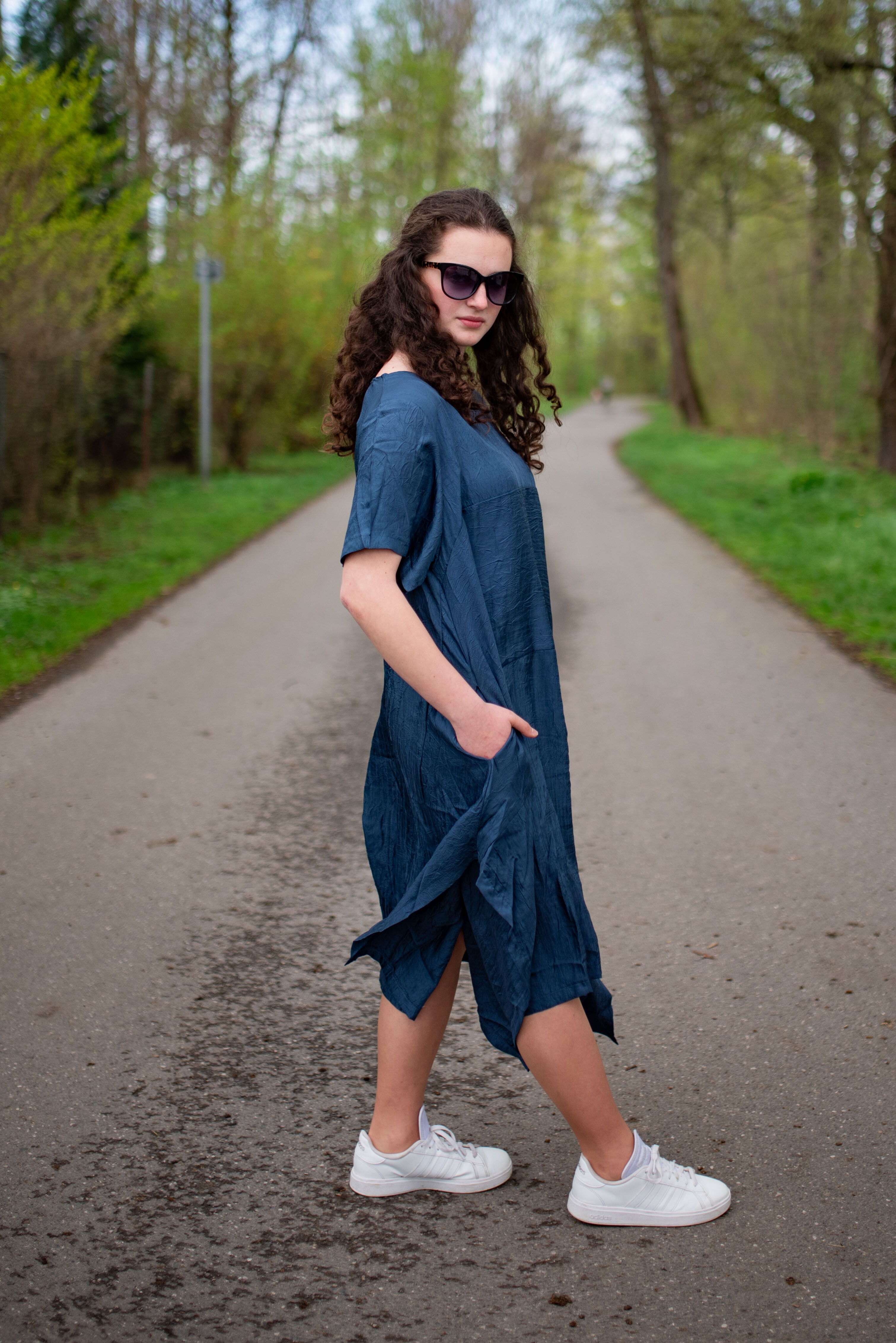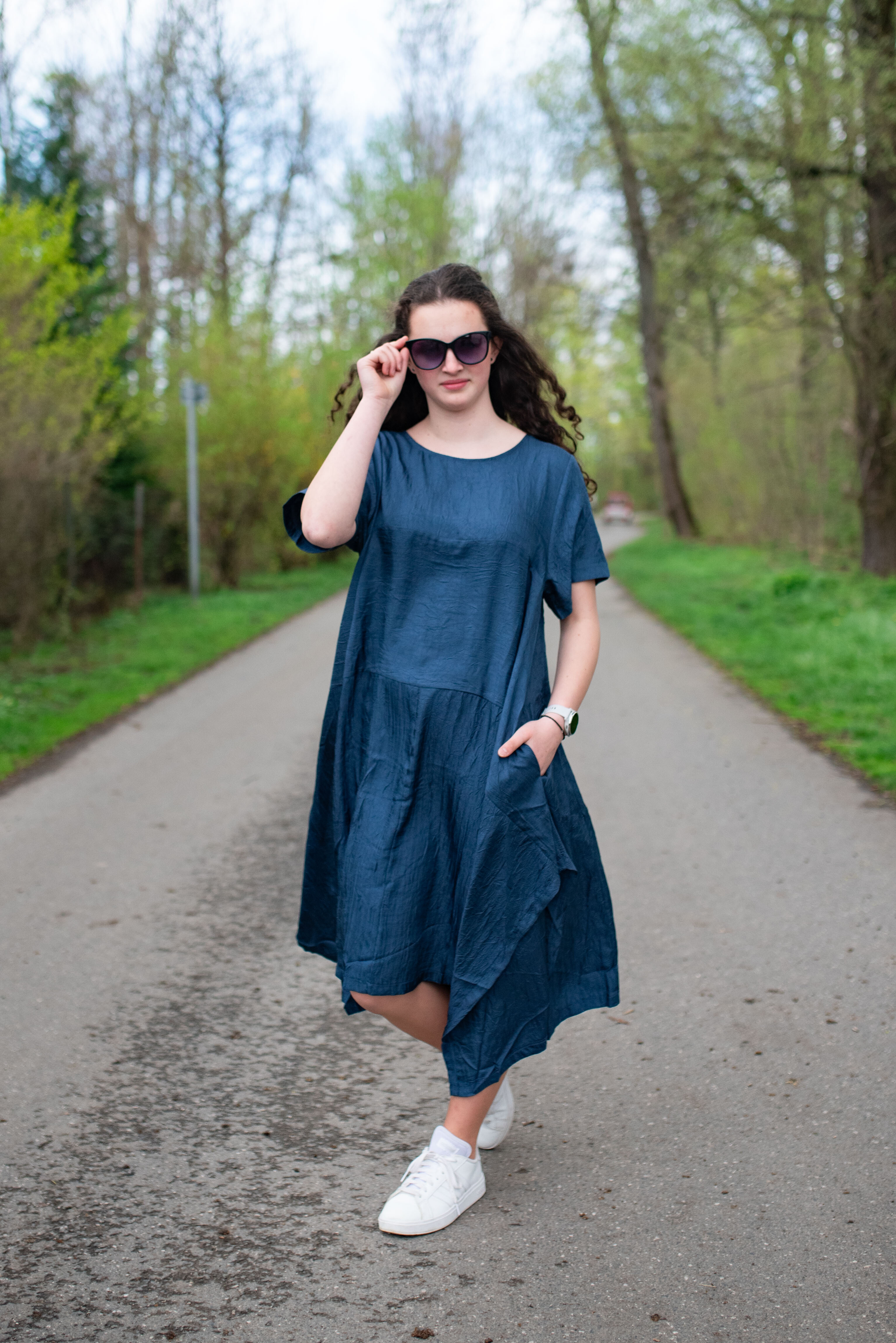 Elegantní, dámská volnočasová šatovka pro denní nošení balónového střihu, vzdušného materiálu. Jsou vyrobeny ze speciálního krčeného materiálu. Vyrobeno v Italii