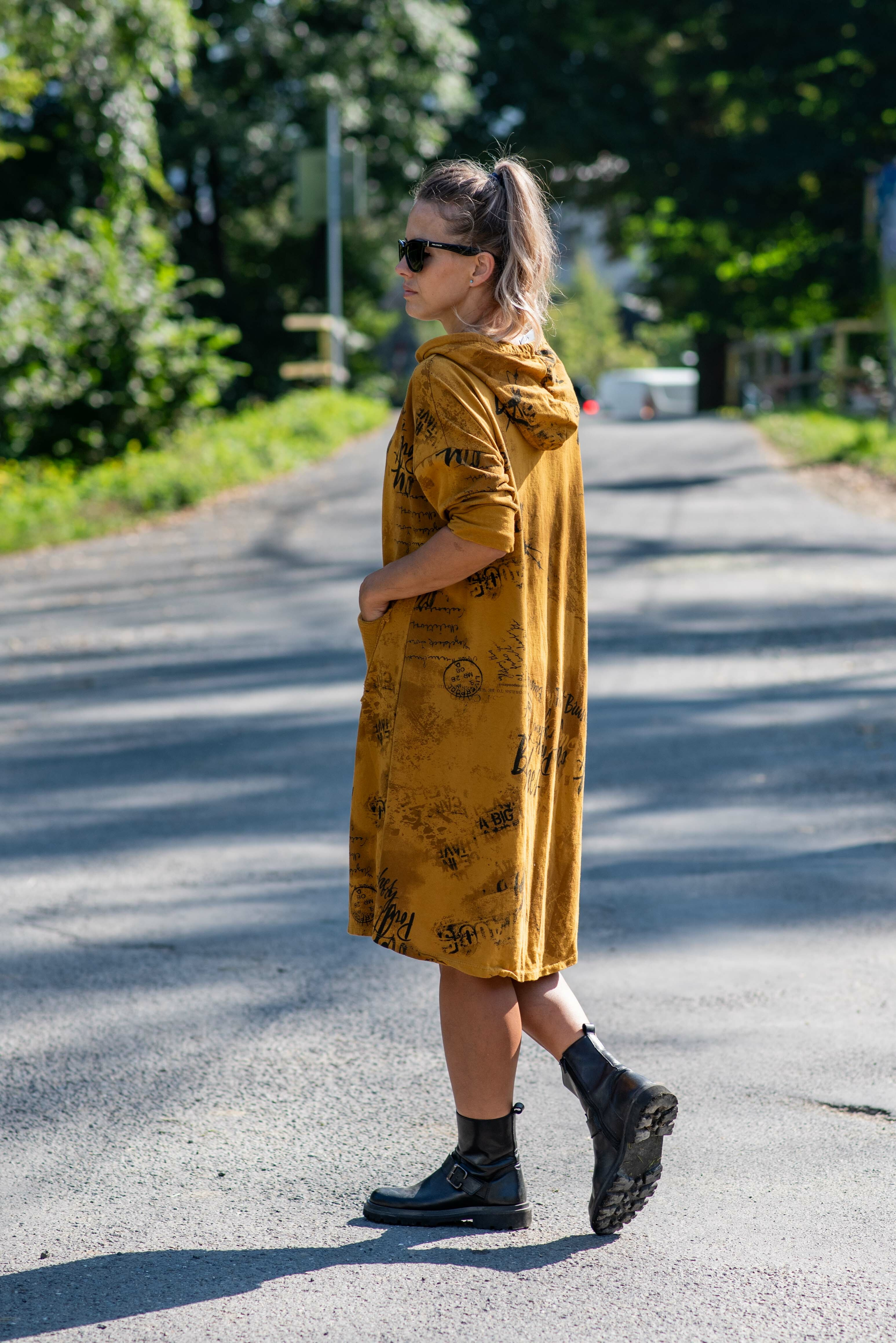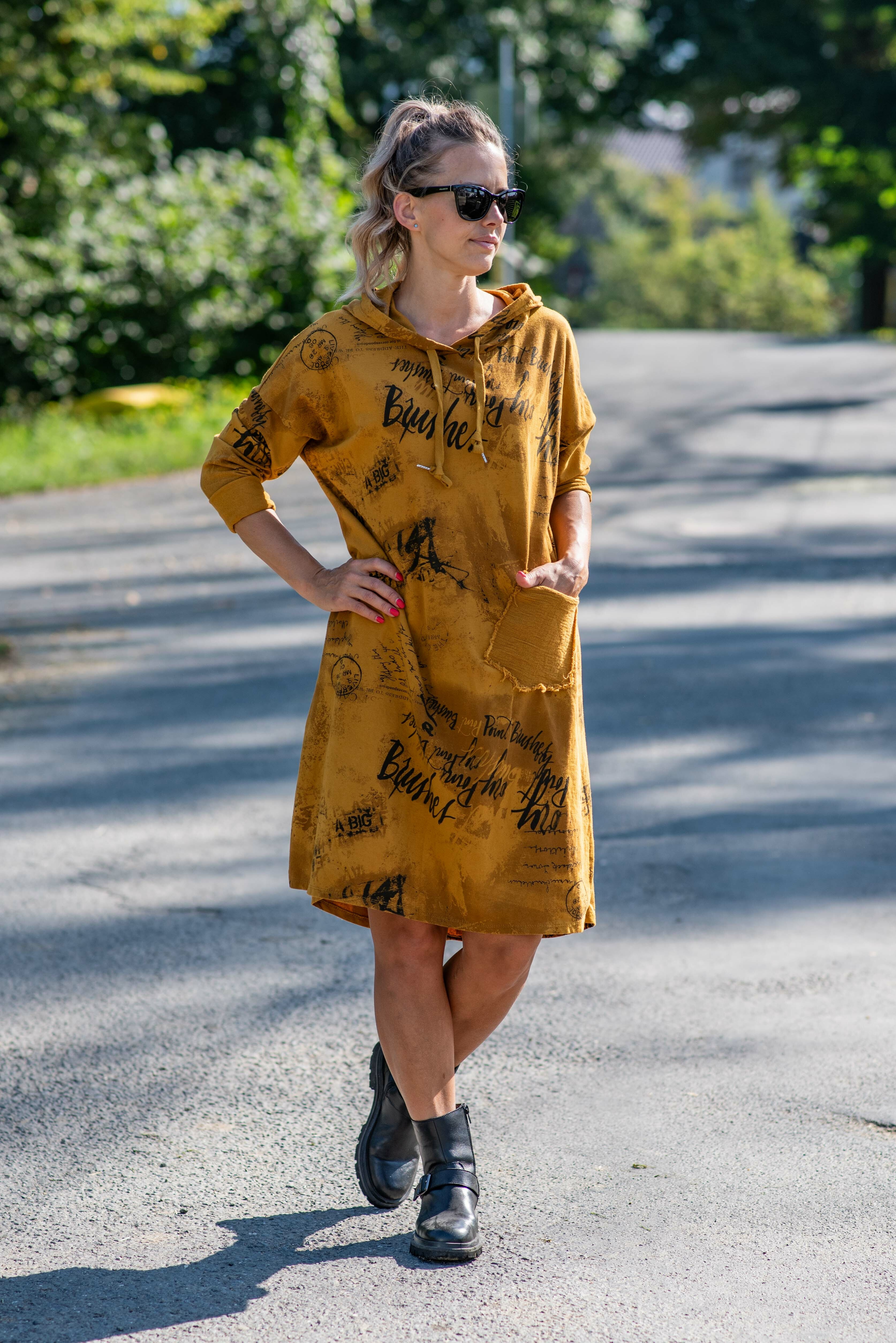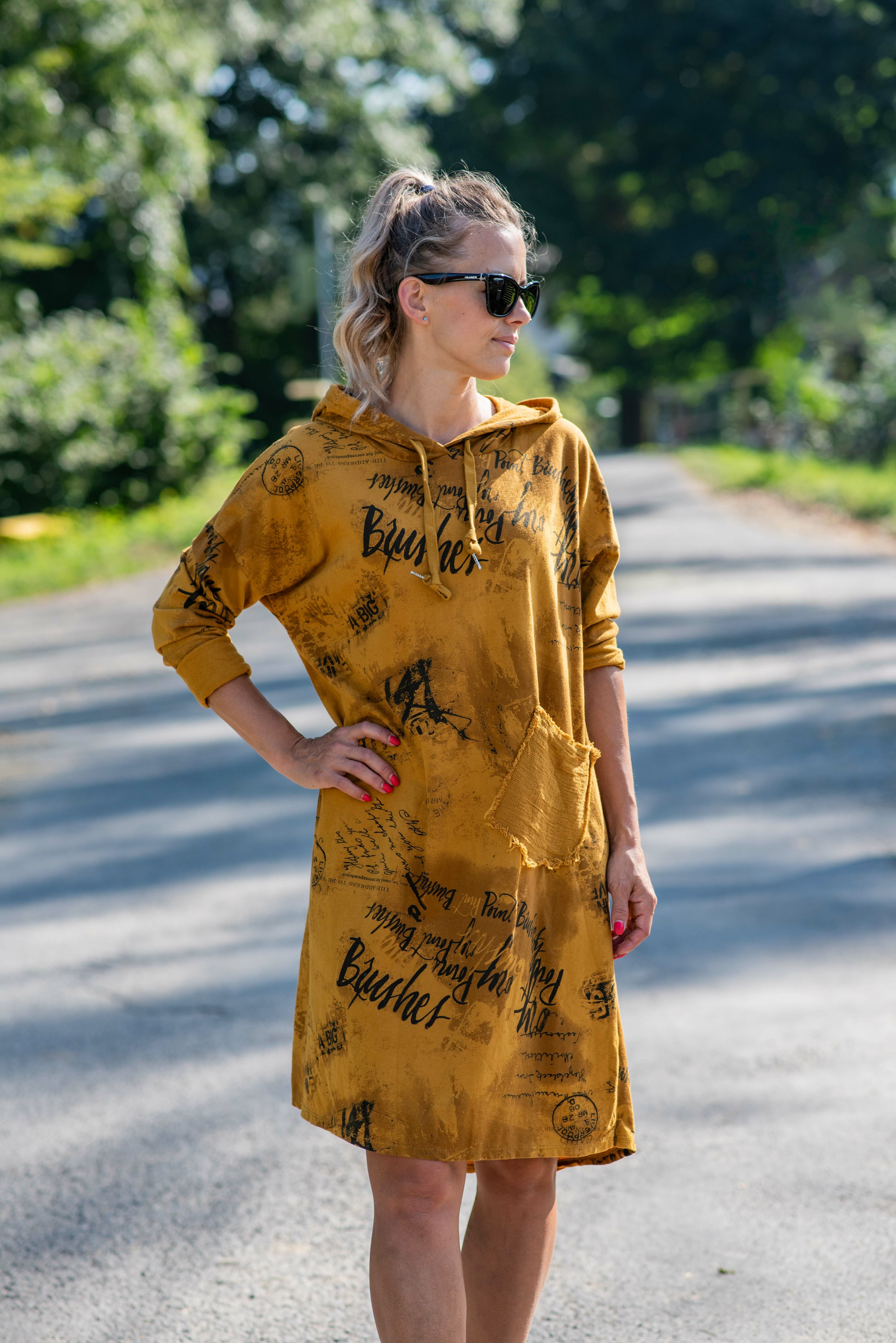 Šatovka s dlouhým rukávem, kapucí , potiskem a kapsou vpředu. Itálie