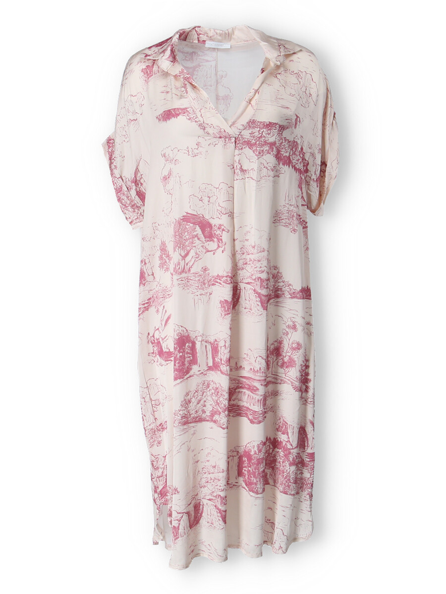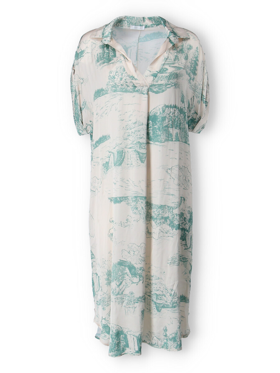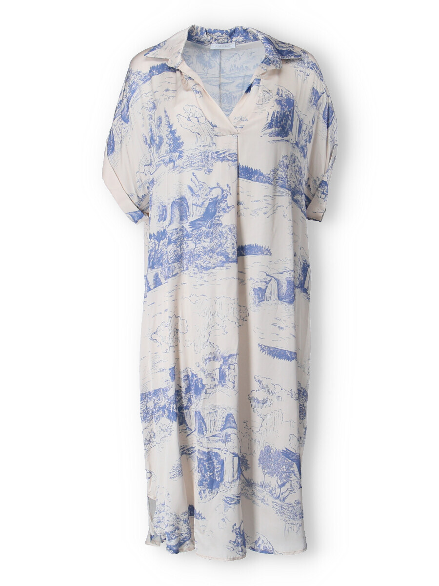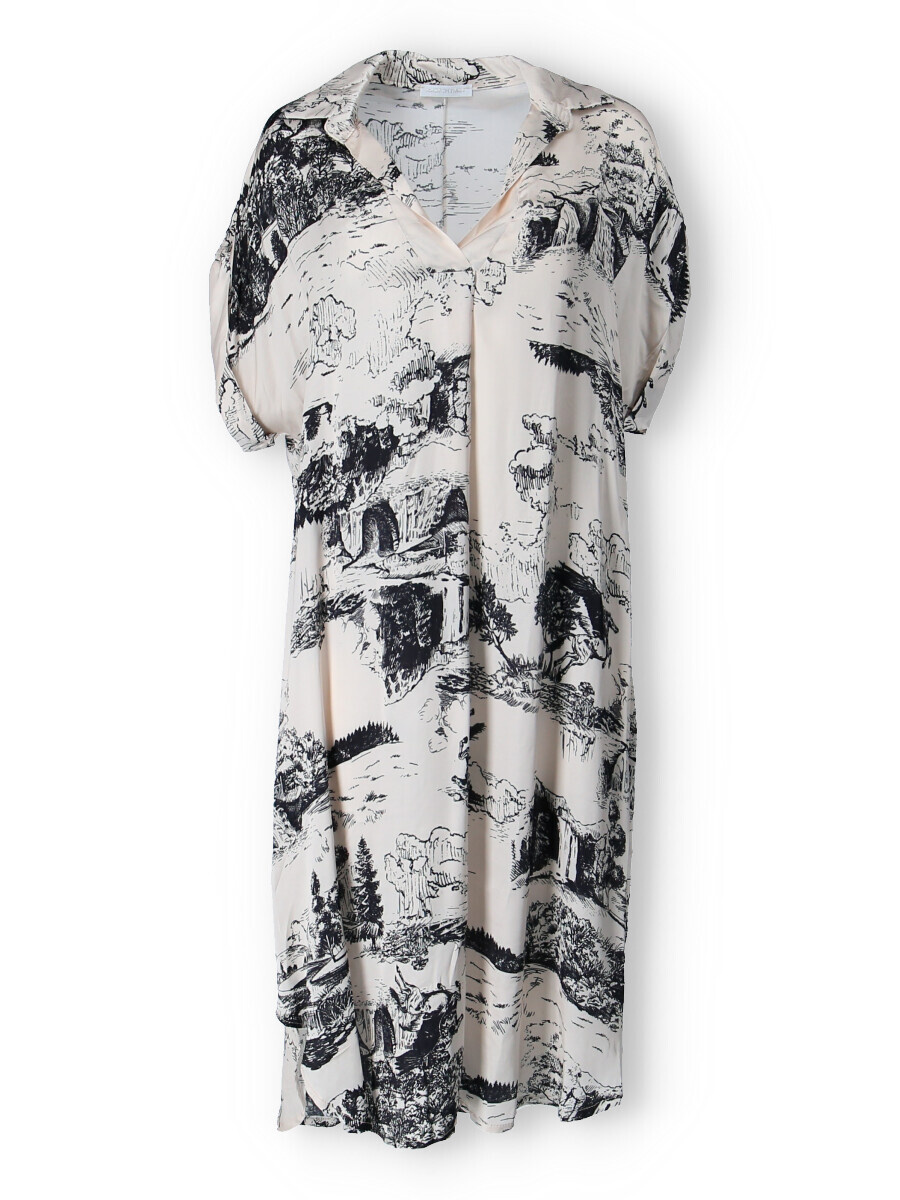 Módní dlouhá košilová šatovka s límečkem. Šatovka má krátký rukáv a výstřih do V.