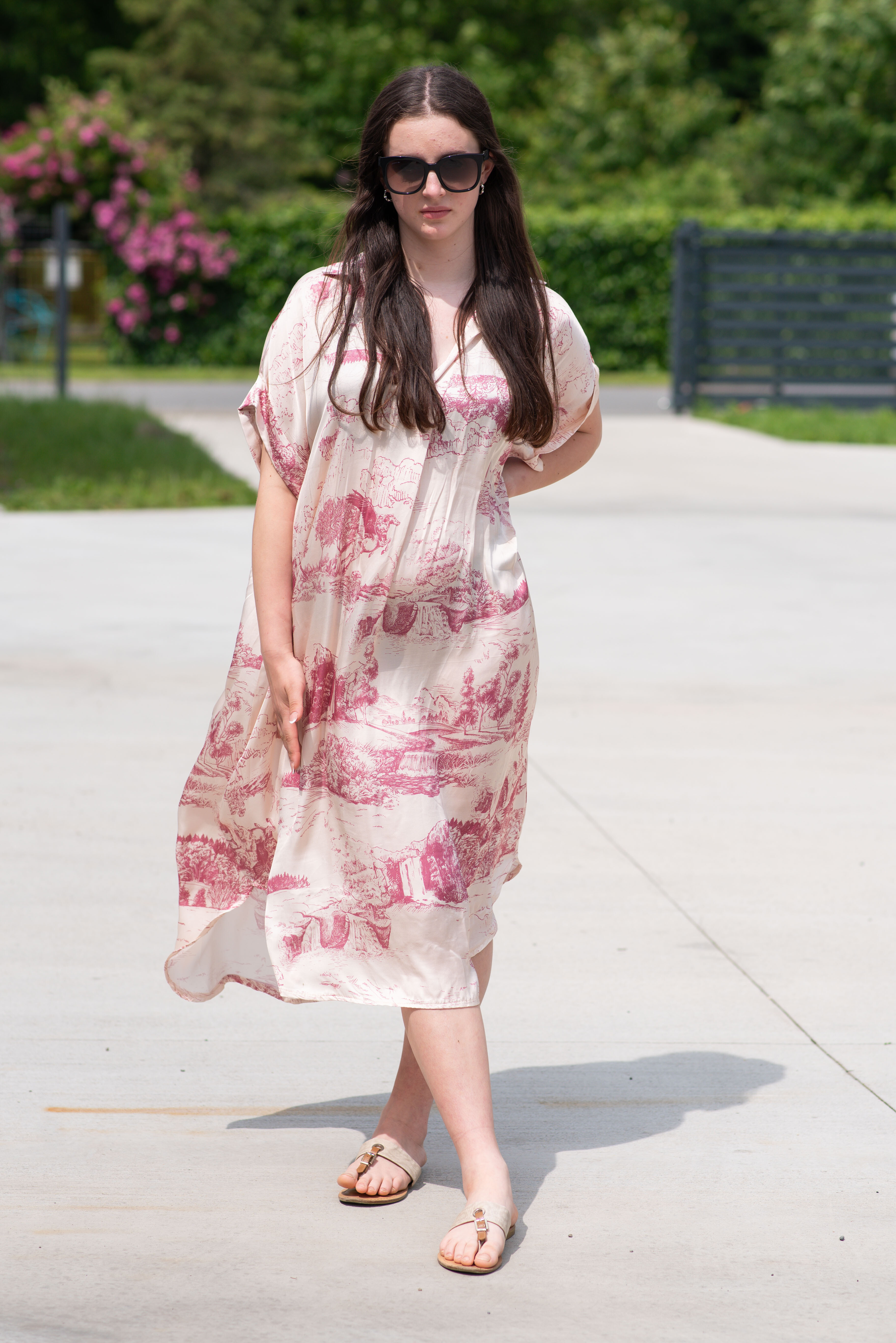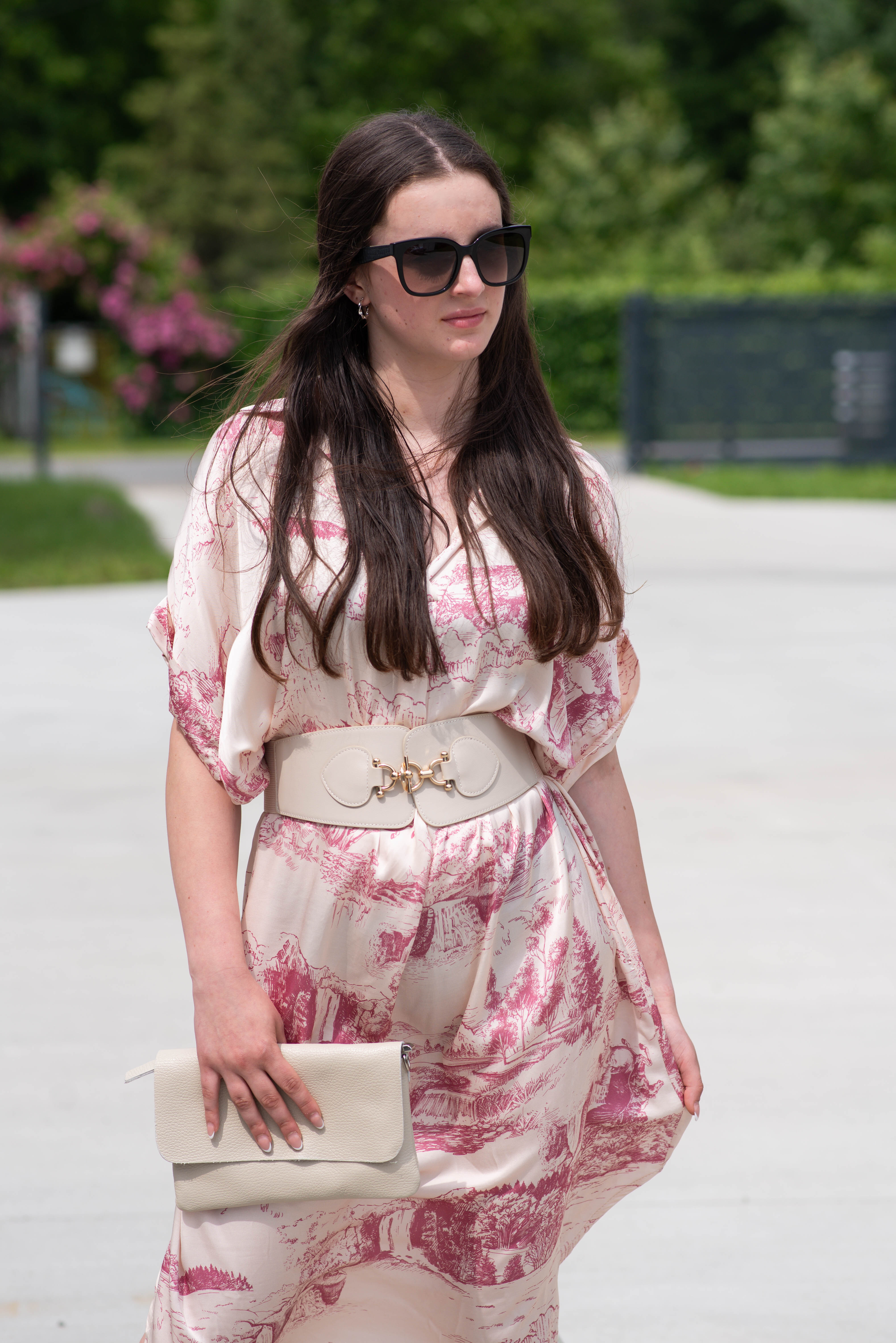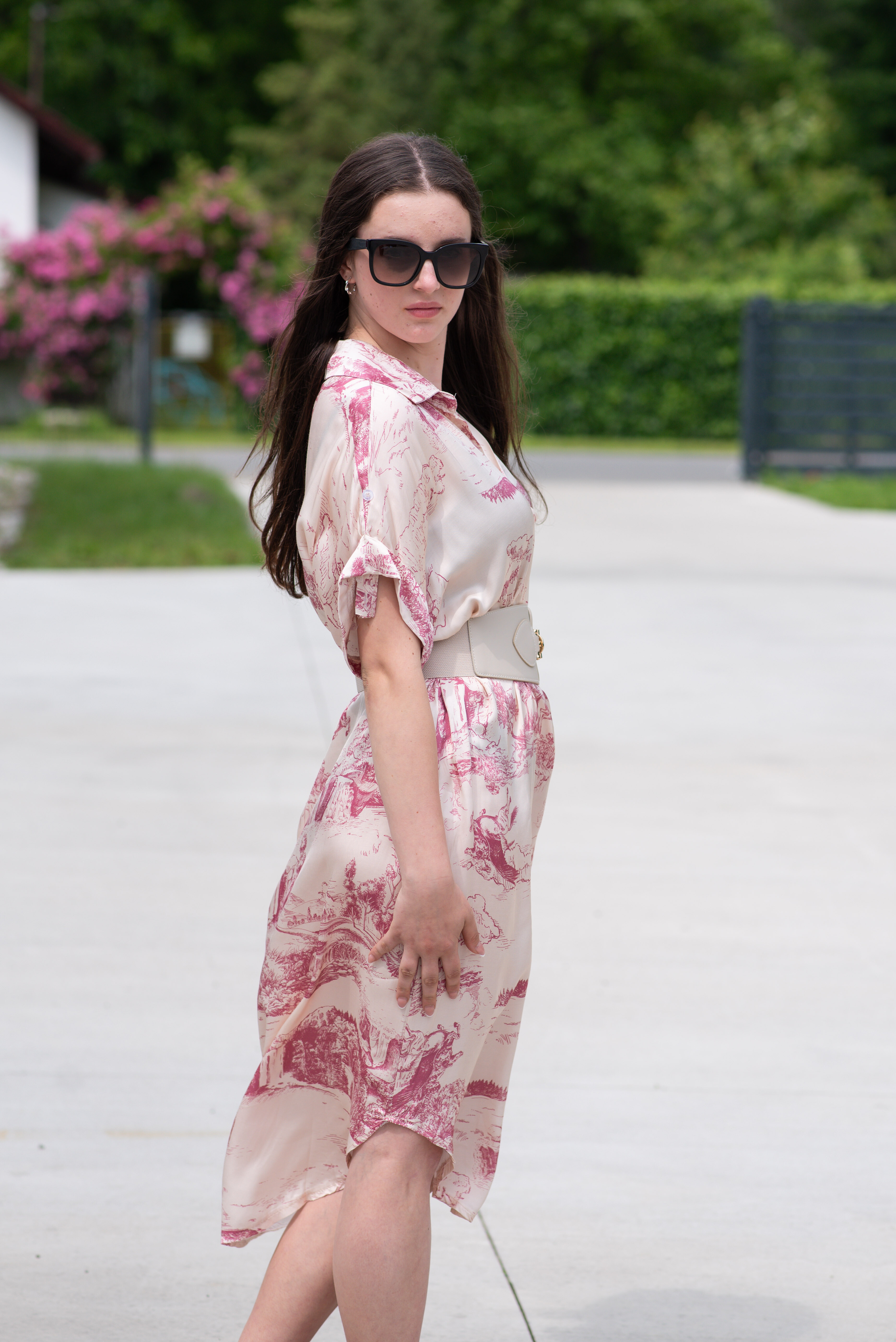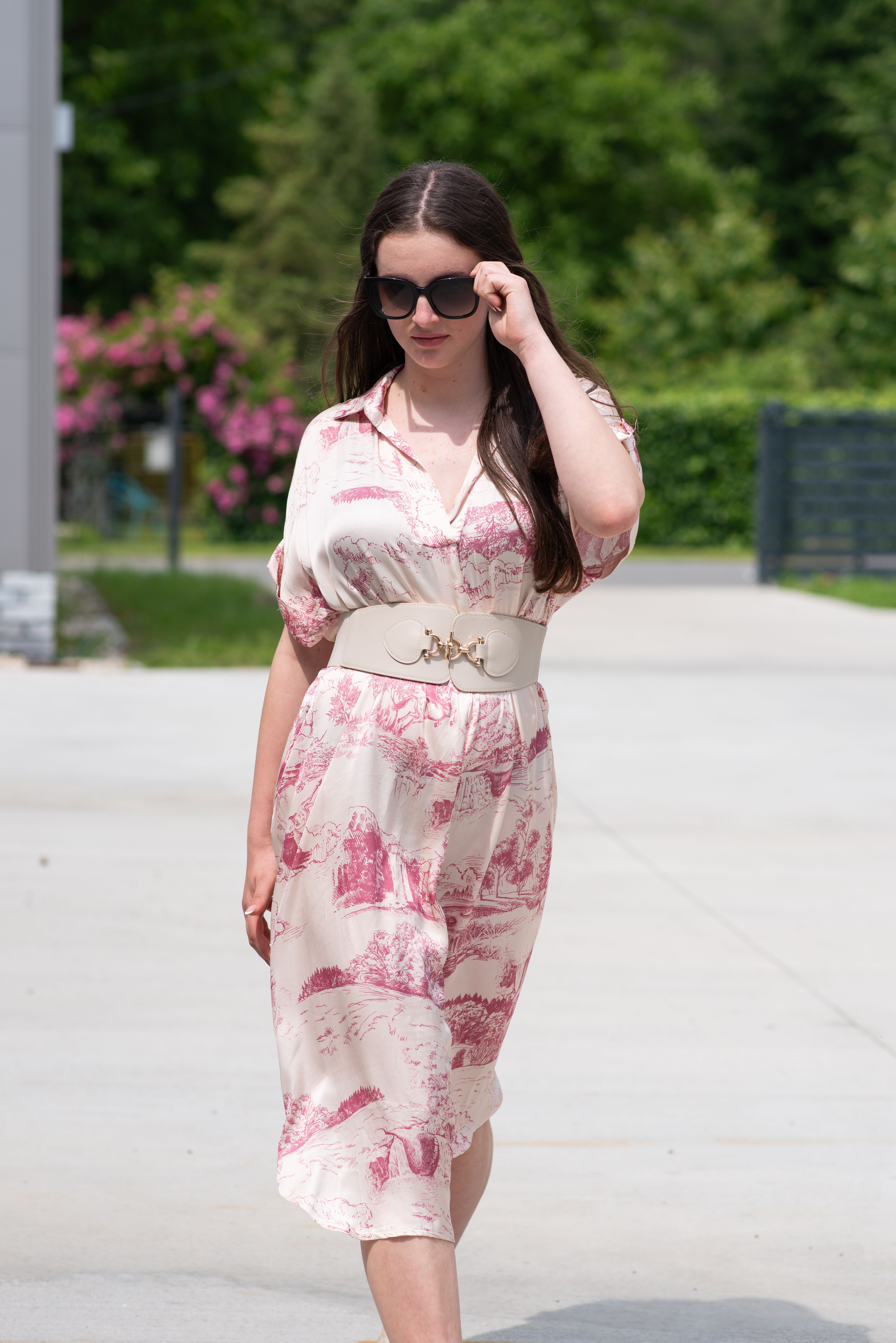 Módní dlouhá košilová šatovka s límečkem. Šatovka má krátký rukáv a výstřih do V.