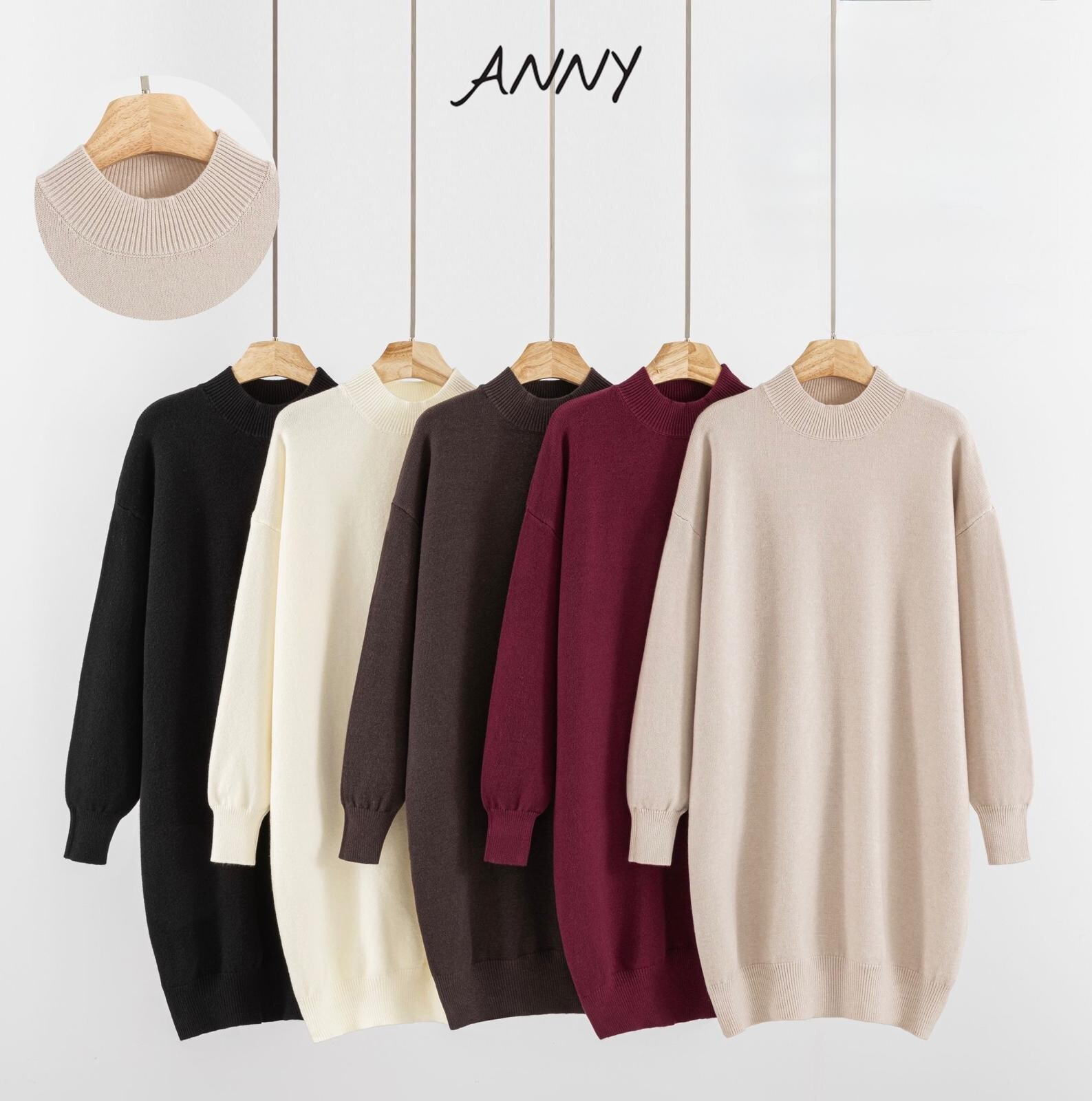Trendy šatovka z příjemného úpletu se stojáčkem. Šatovka má stojáček a zakončení na rukávech a spodní lem z žebrovaného úpletu.