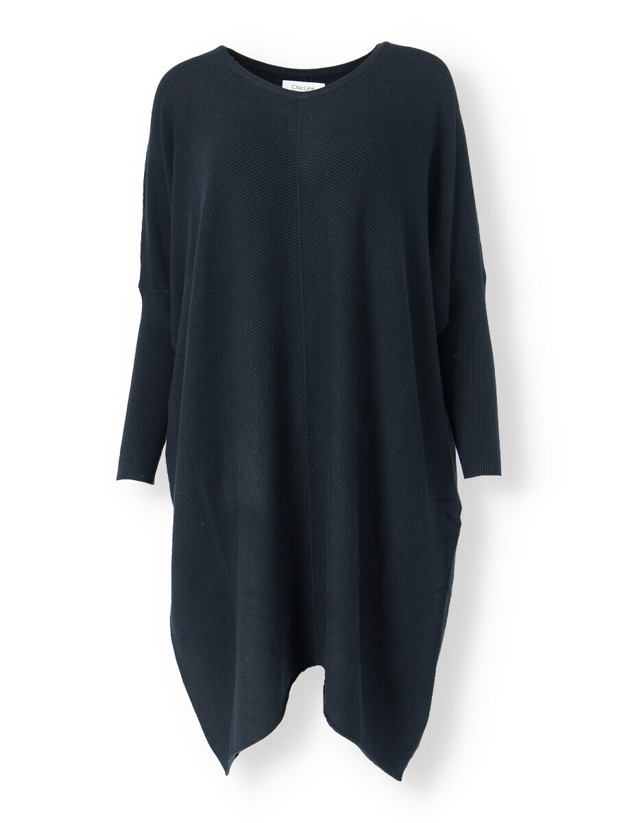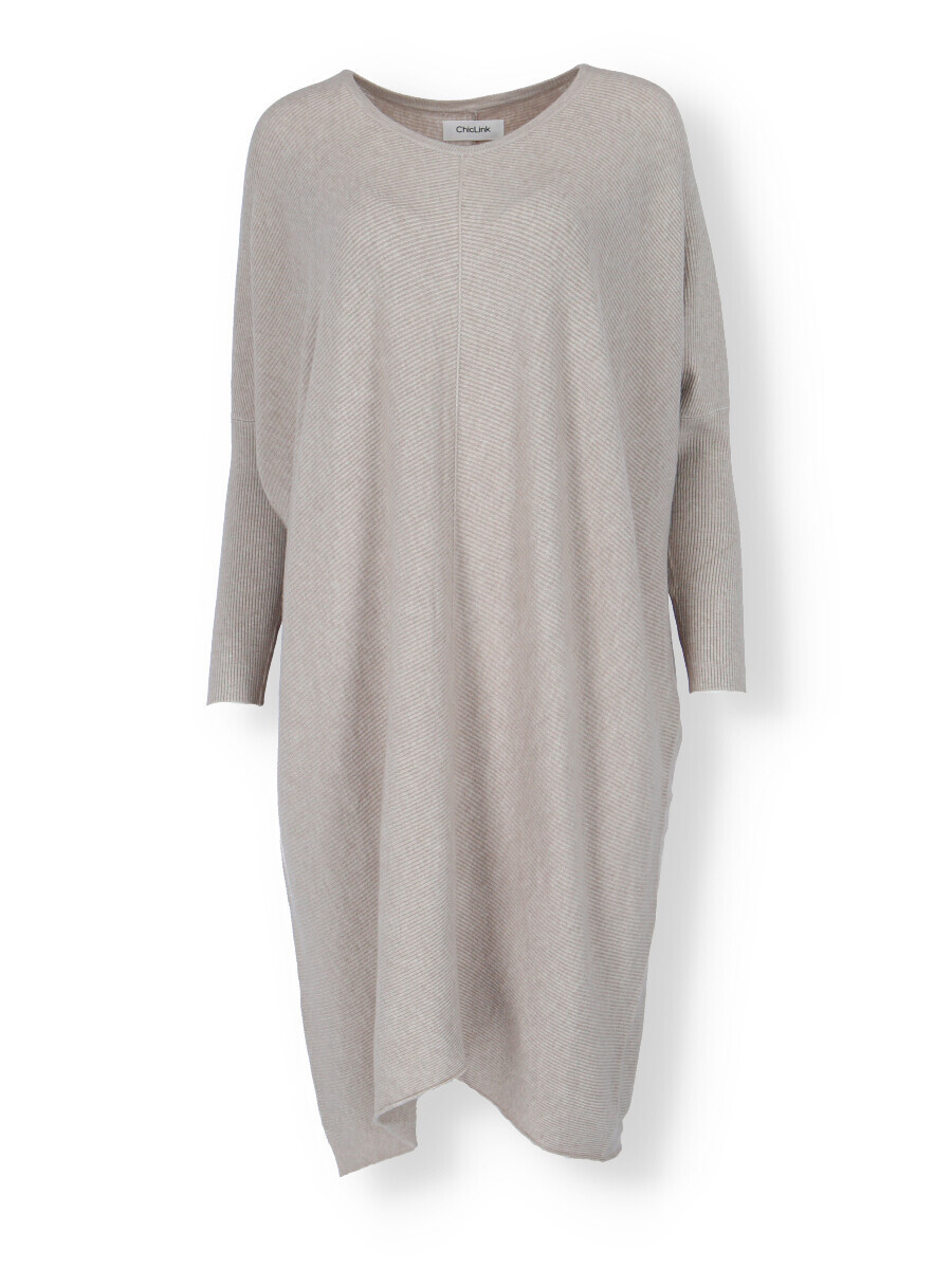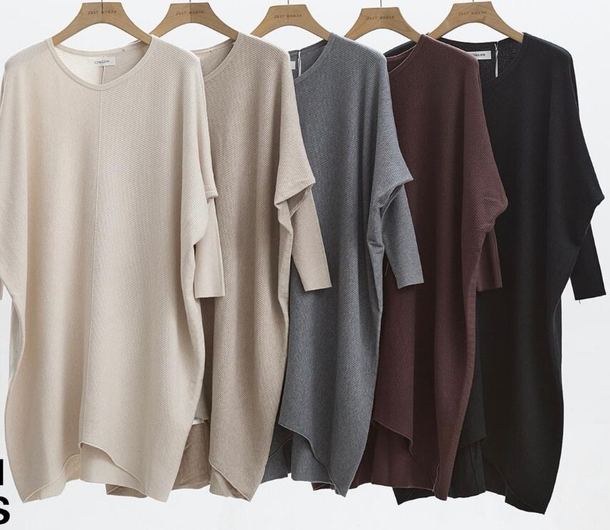 Módní úpletová šatovka s kulatým výstřihem. Šatovka je volnějšího střihu s raglánovým 3/4 rukávem