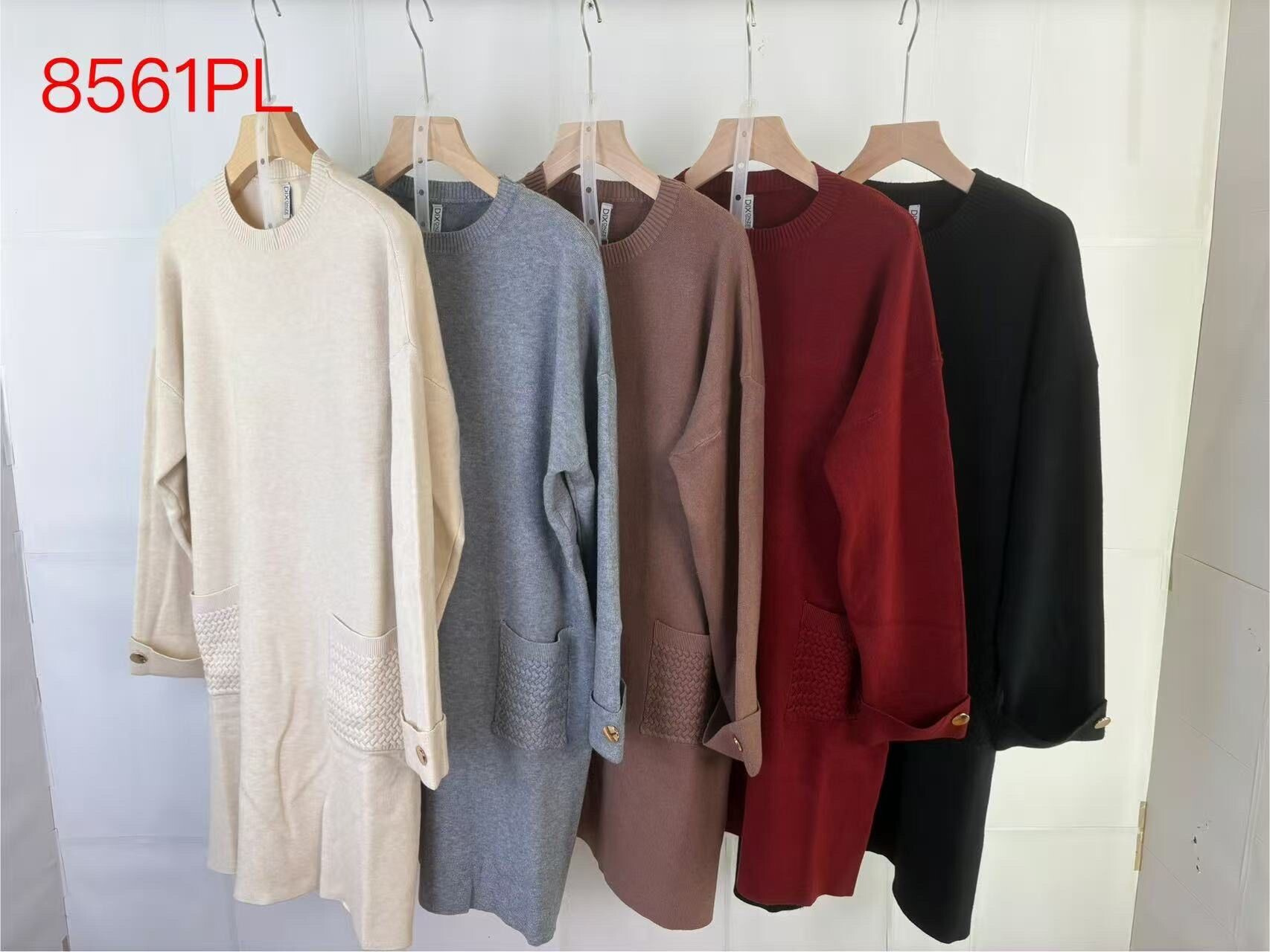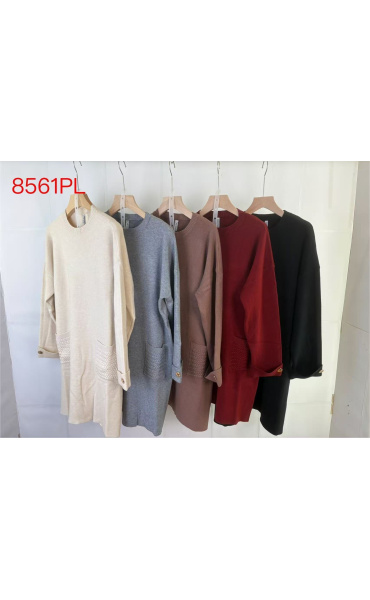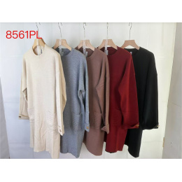 Dámská tunika z úpletového materiálu. Tunika je volnějšího střihu, má kulatý výstřih a na přední straně našité kapsy.