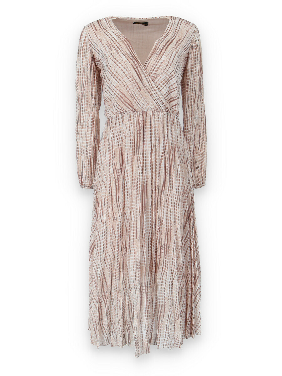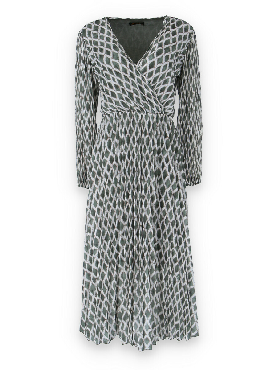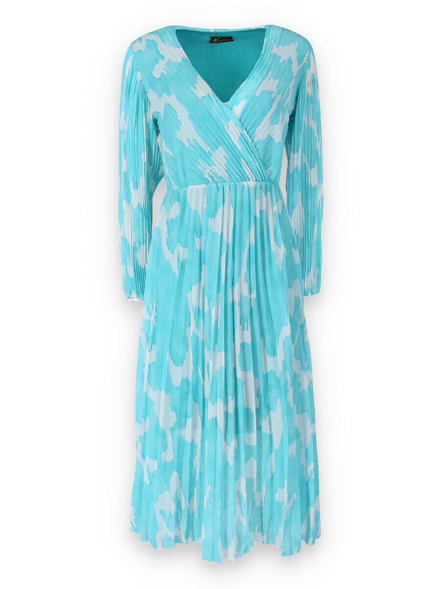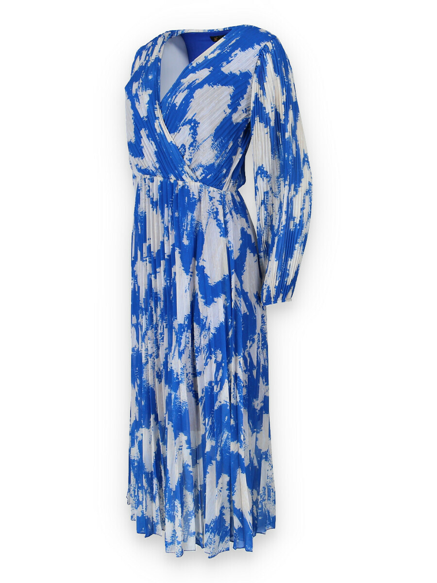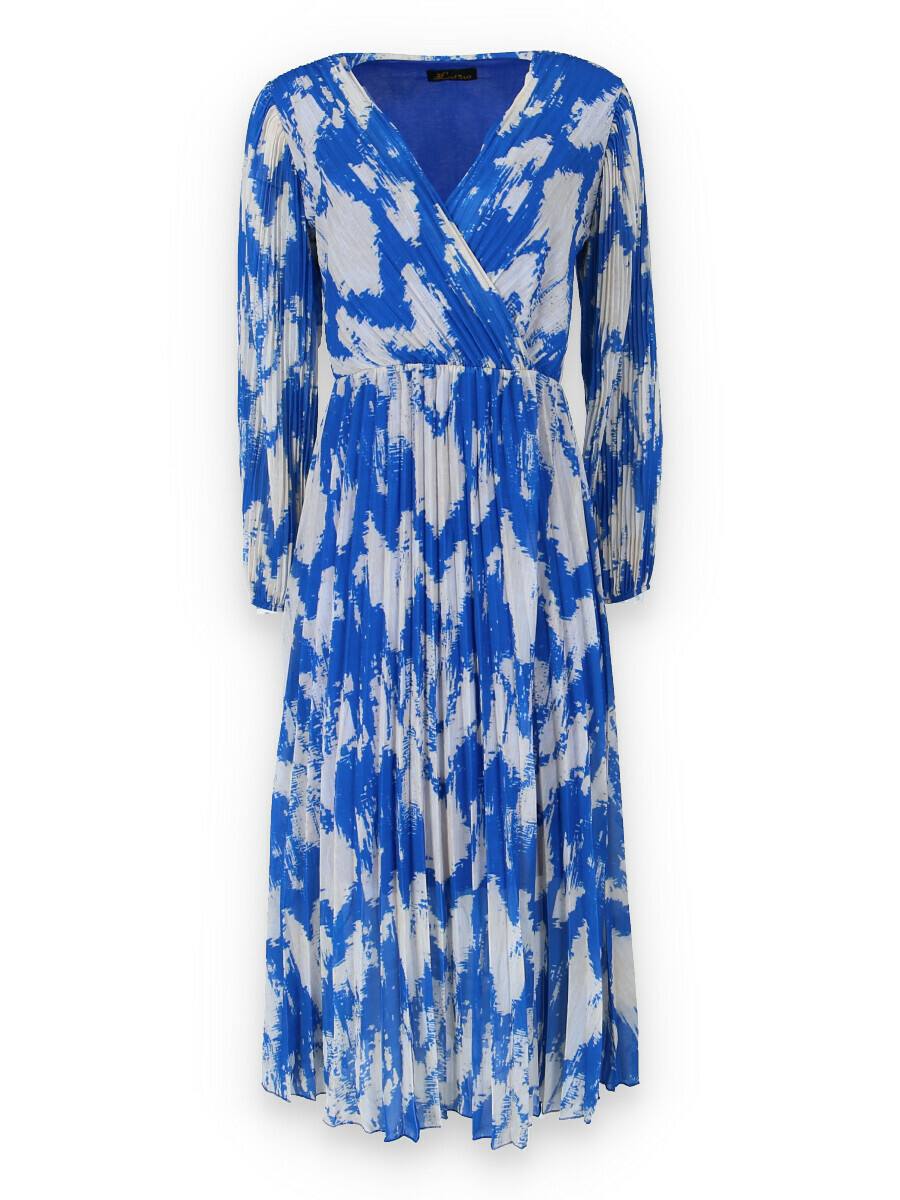 Dámské dlouhé šaty s dlouhým rukávem, spodní část plisé, překřížený výstřih do V, zadní část do gumy, podšívka
