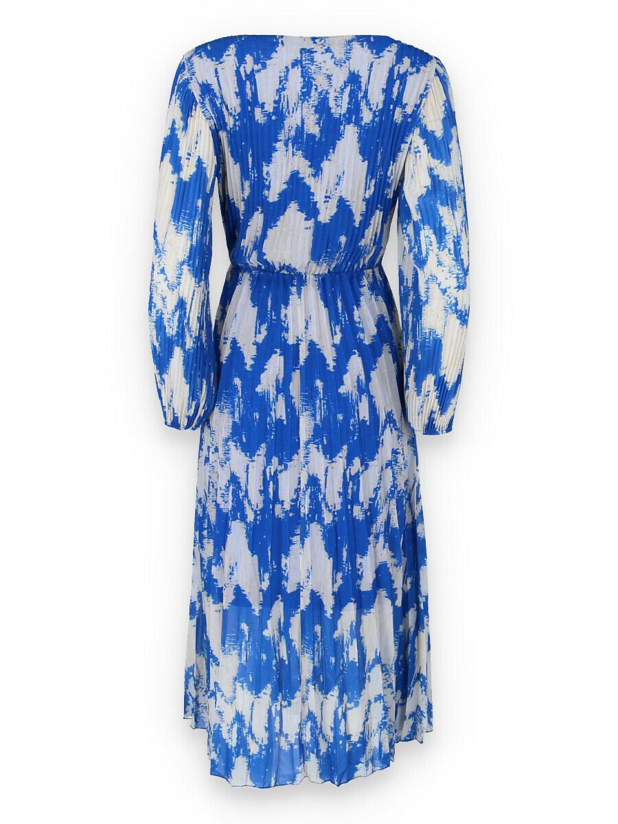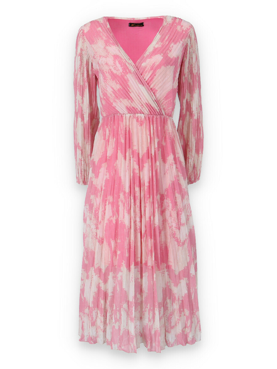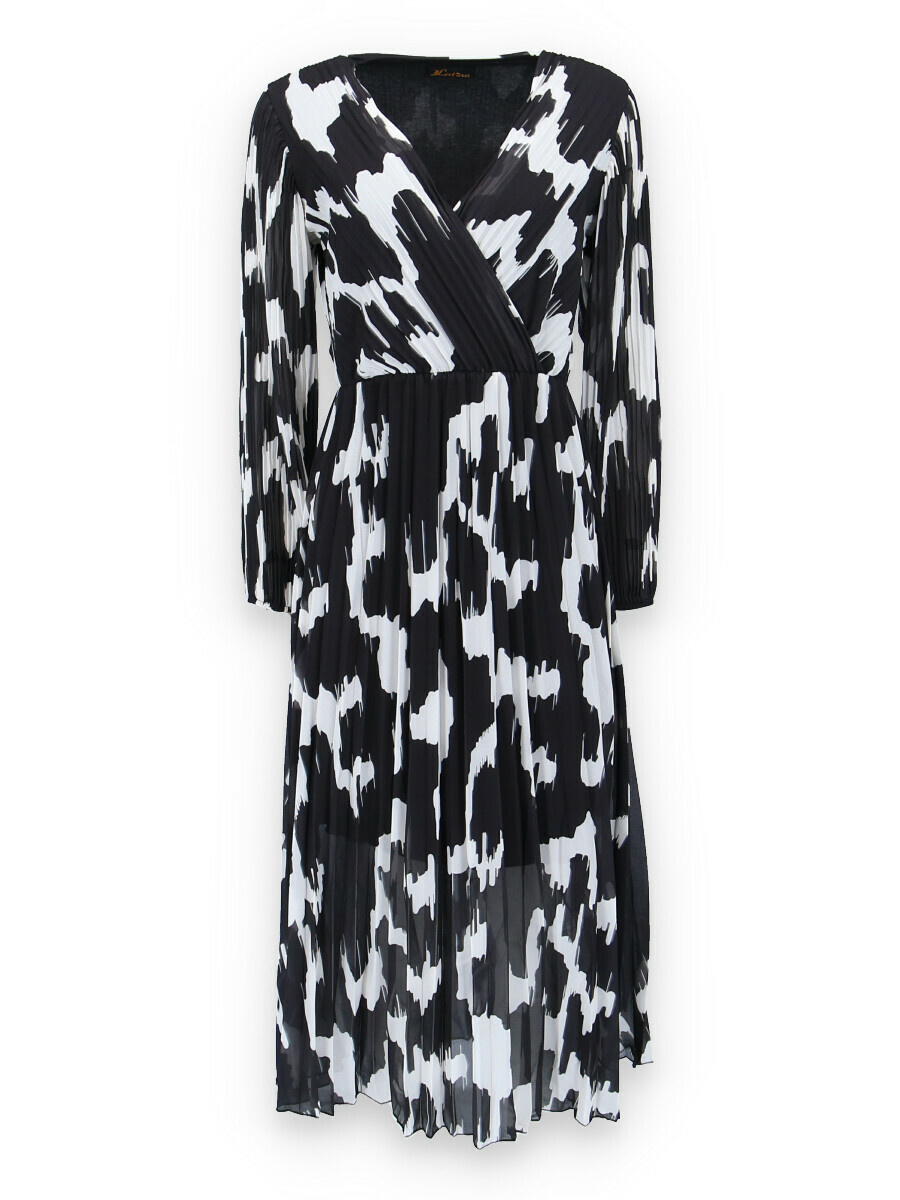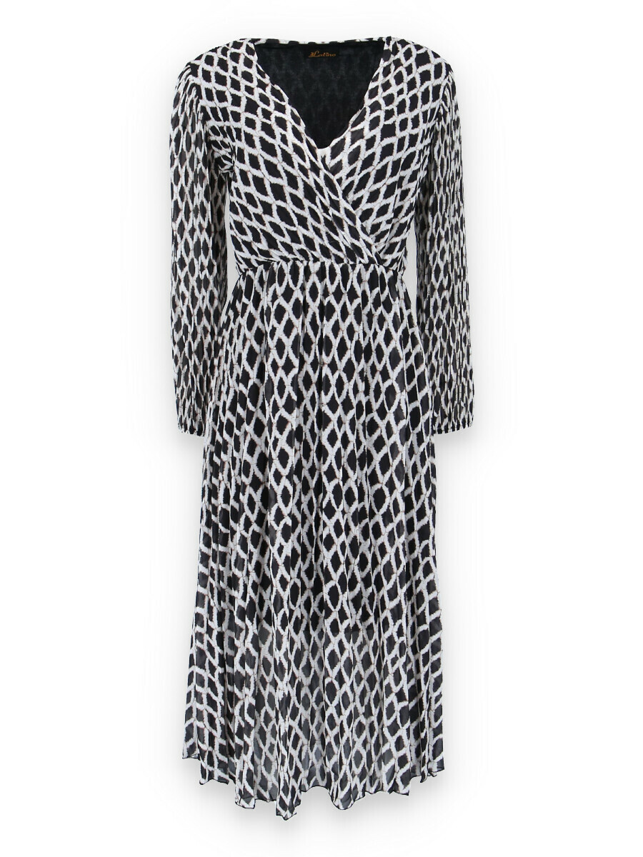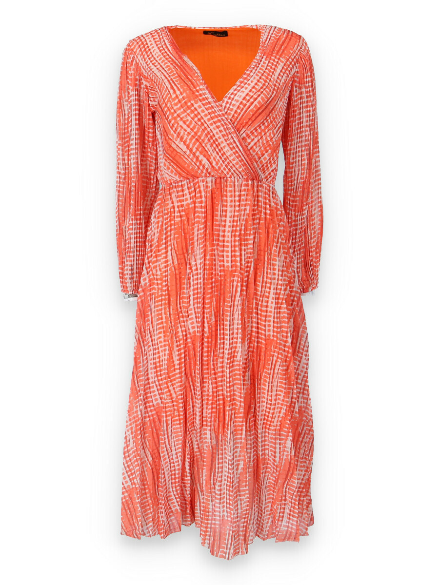 Dámské dlouhé šaty s dlouhým rukávem, spodní část plisé, překřížený výstřih do V, zadní část do gumy, podšívka