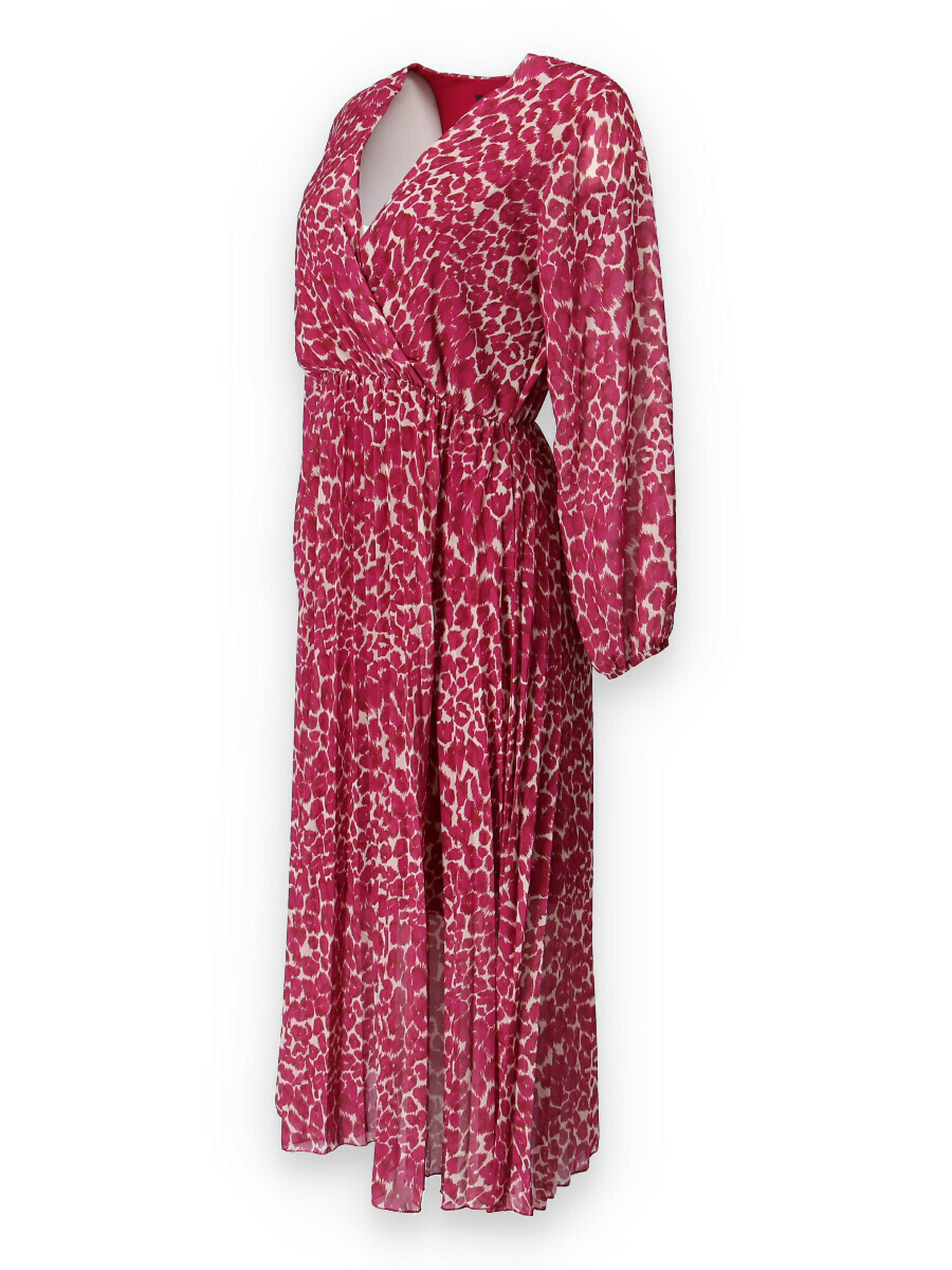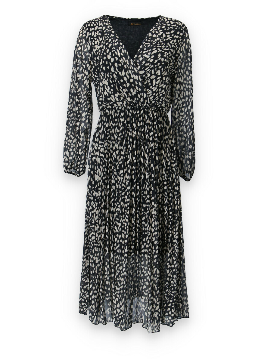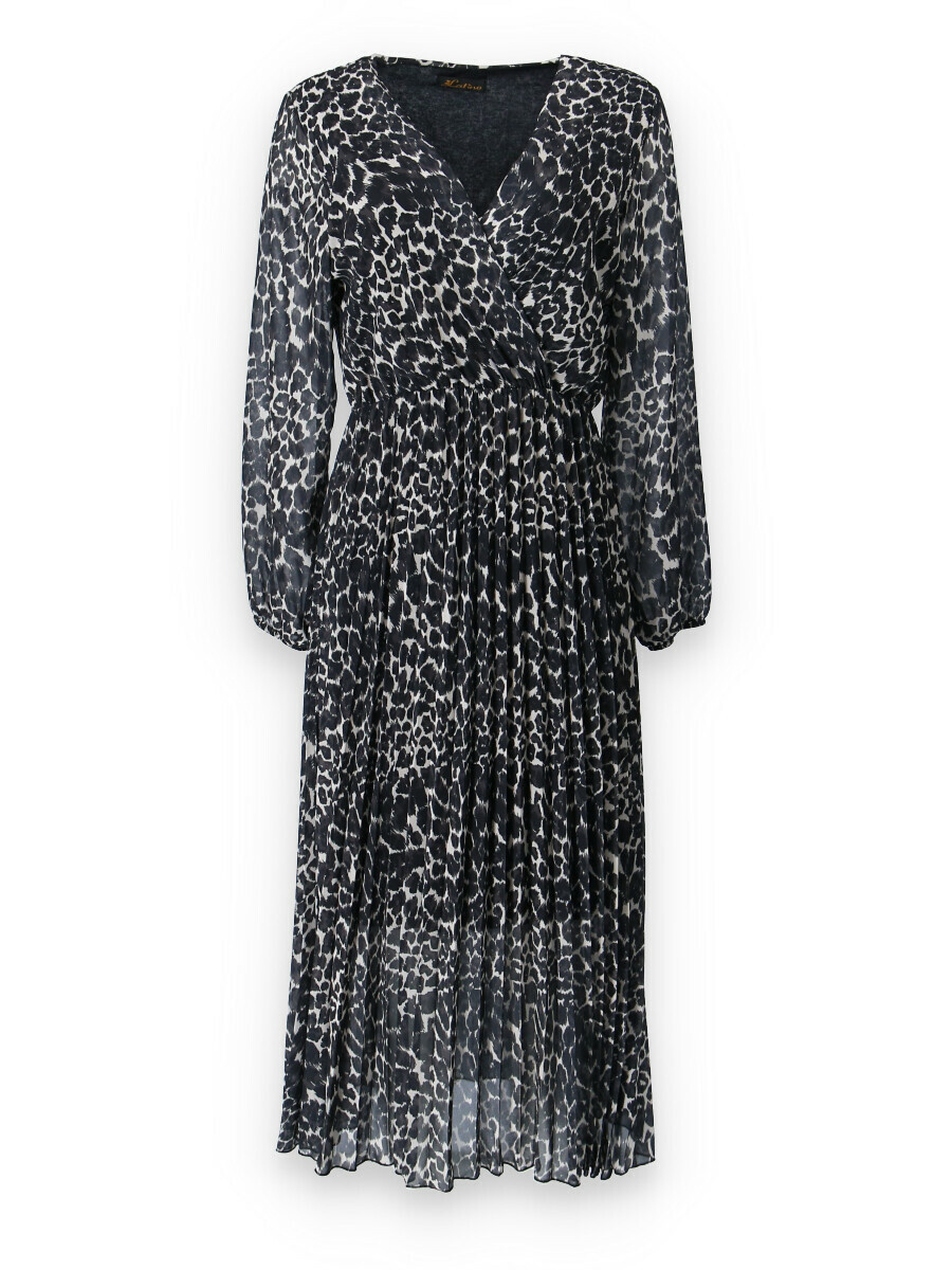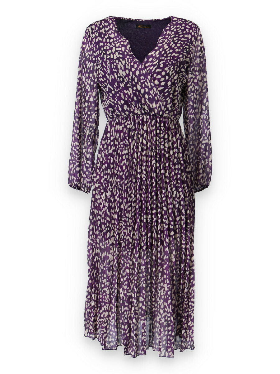 Dámské dlouhé šaty s dlouhým rukávem, spodní část plisé, výstřih do V , zadní část do gumy, podšívka