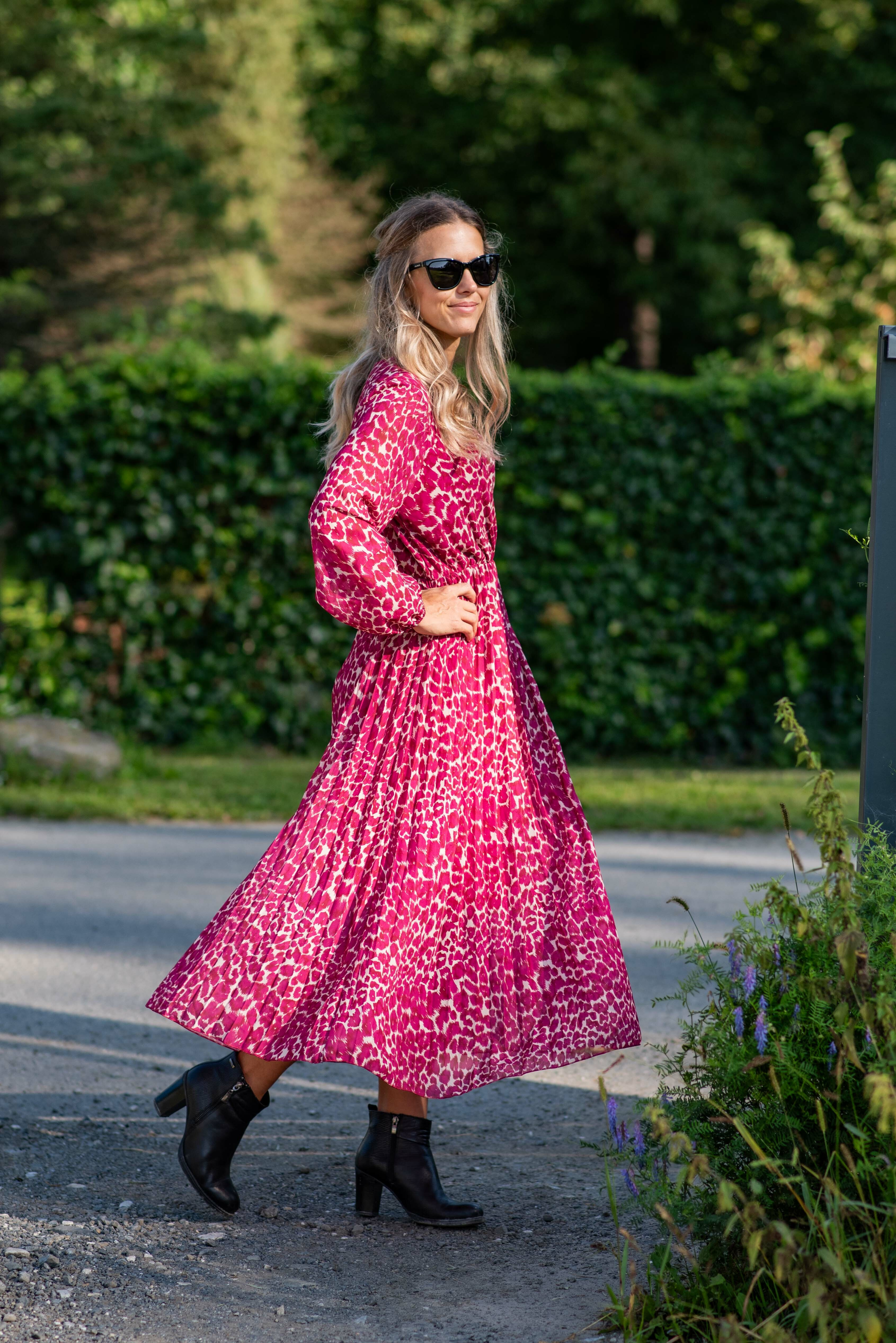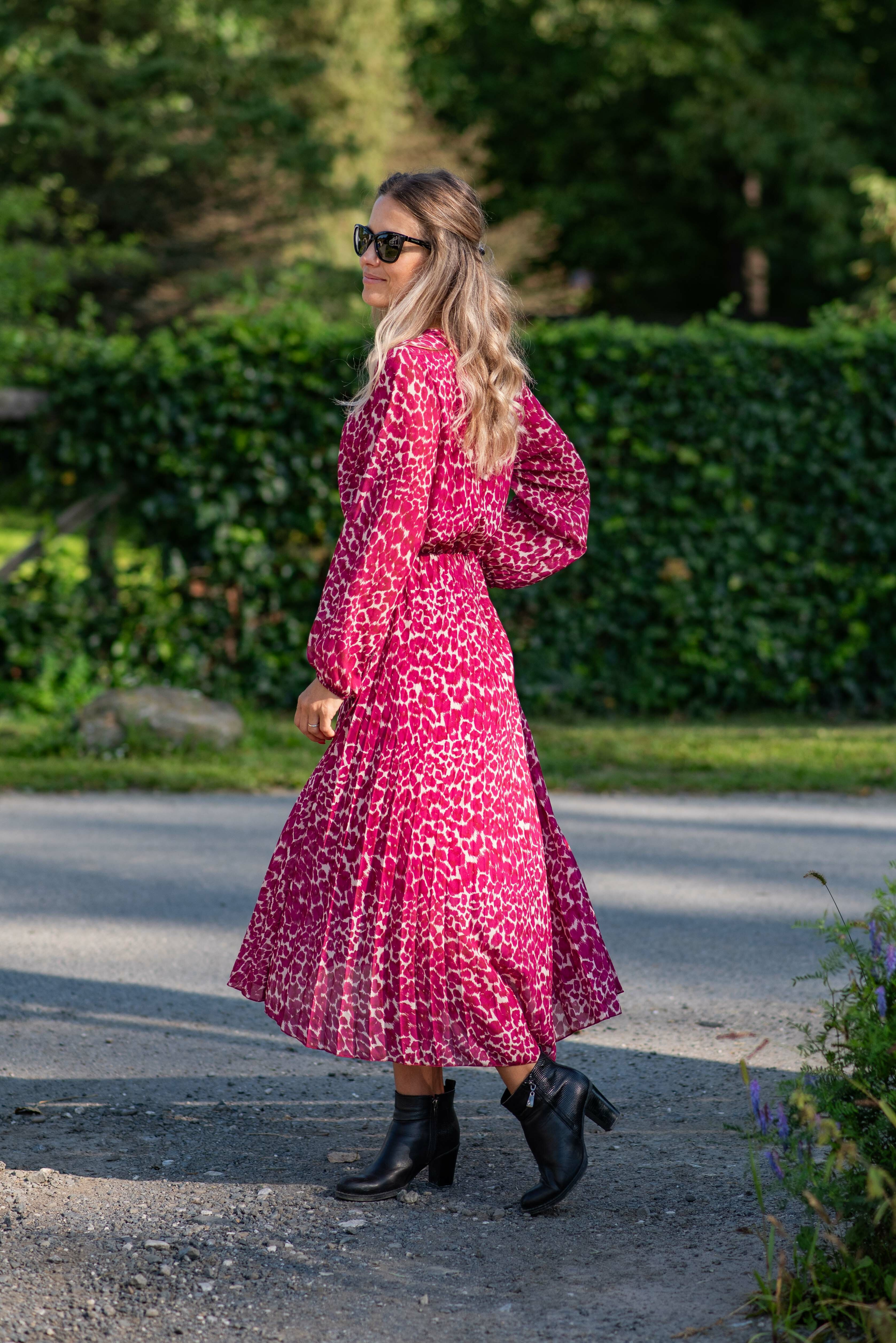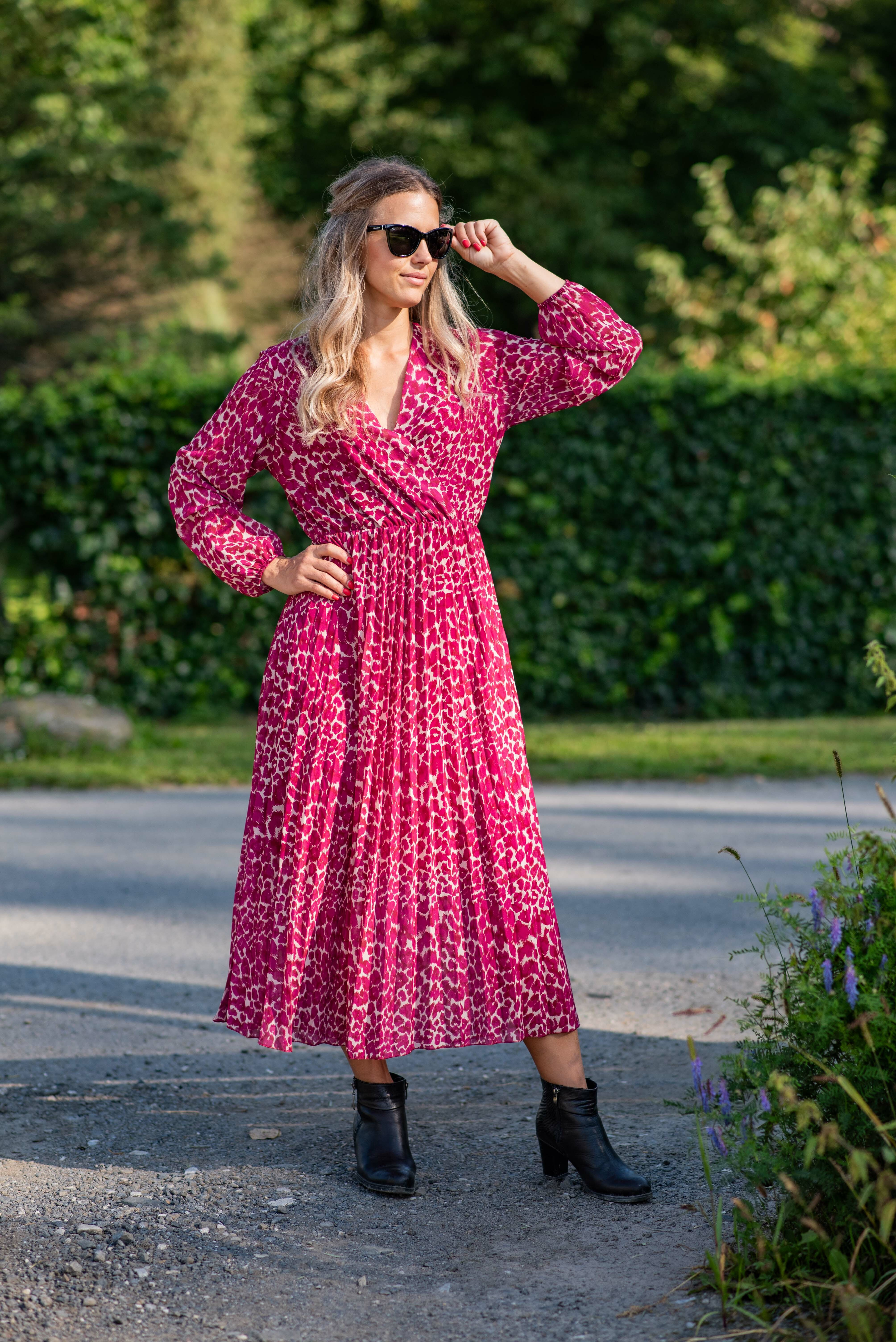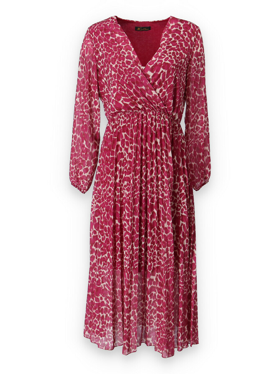 Dámské dlouhé šaty s dlouhým rukávem, spodní část plisé, výstřih do V , zadní část do gumy, podšívka