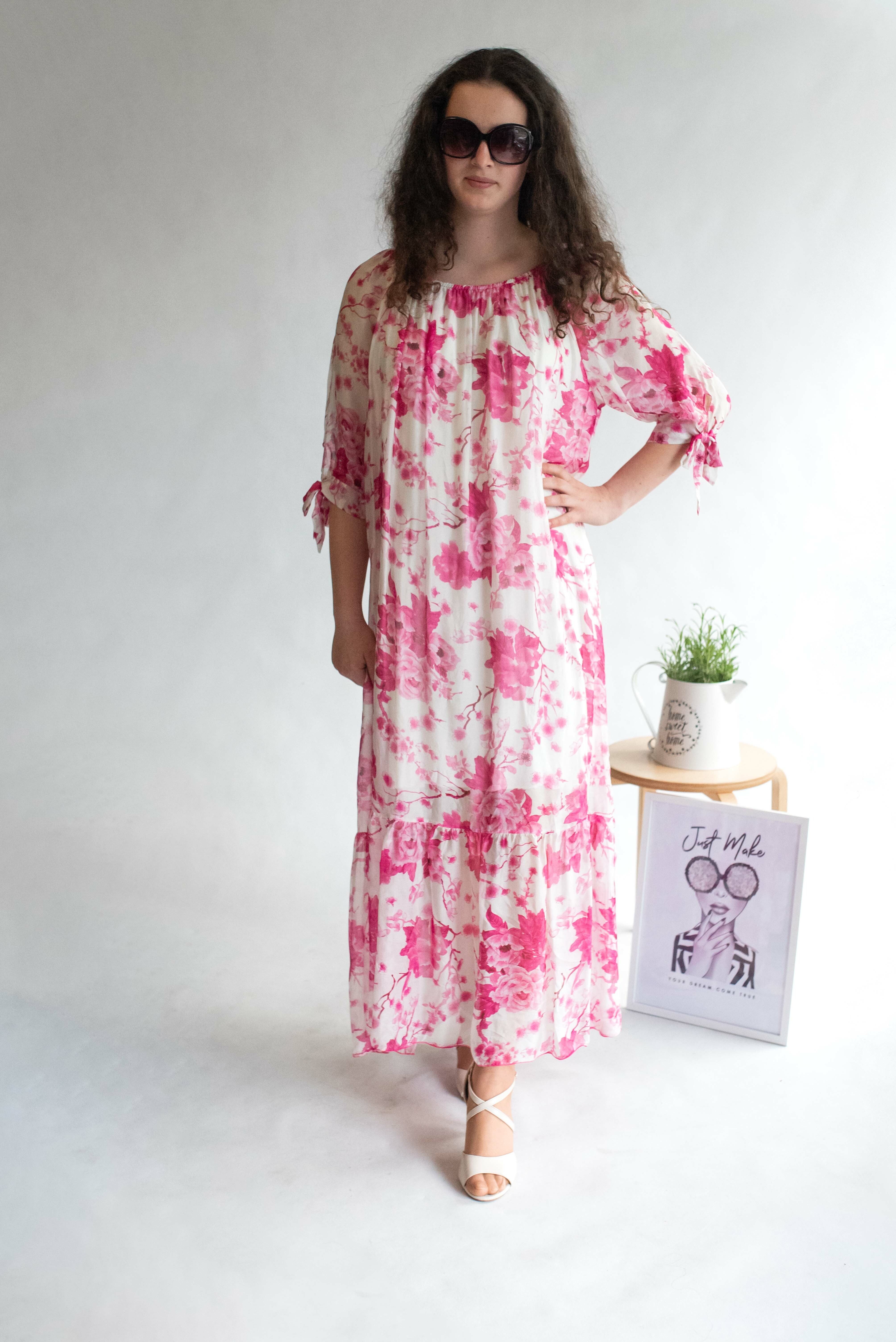 Šaty dlouhé hedvábí květ 59100 Italy