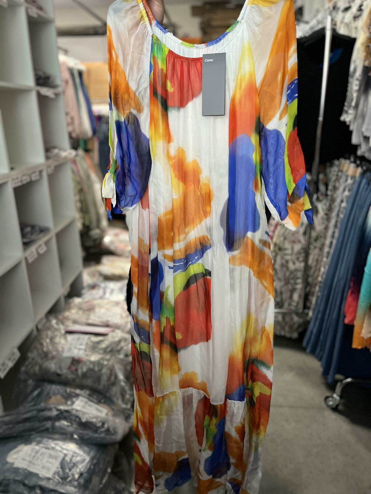Letní hedvábné šaty s podšívkou, možnost stažení přes ramena.