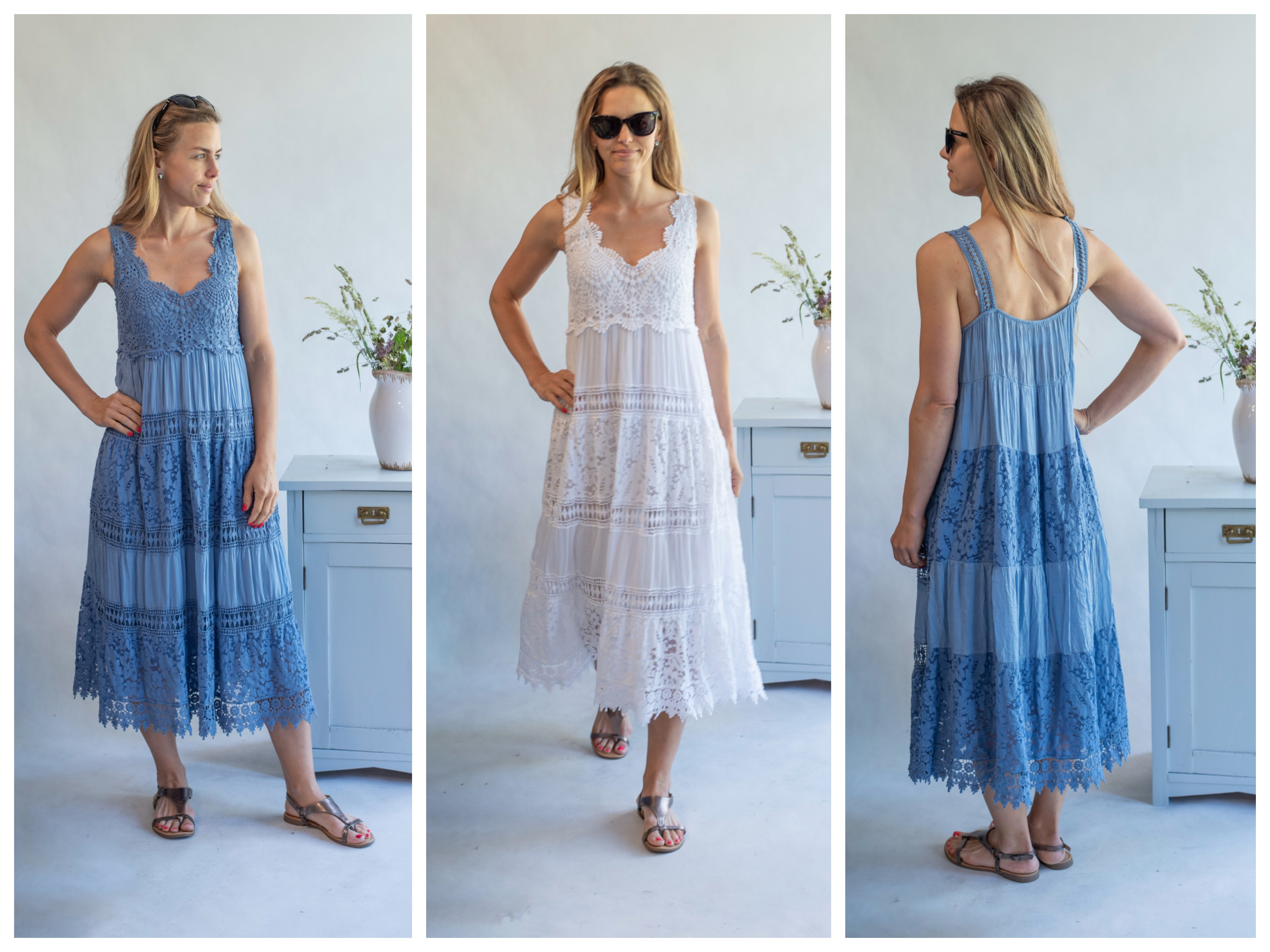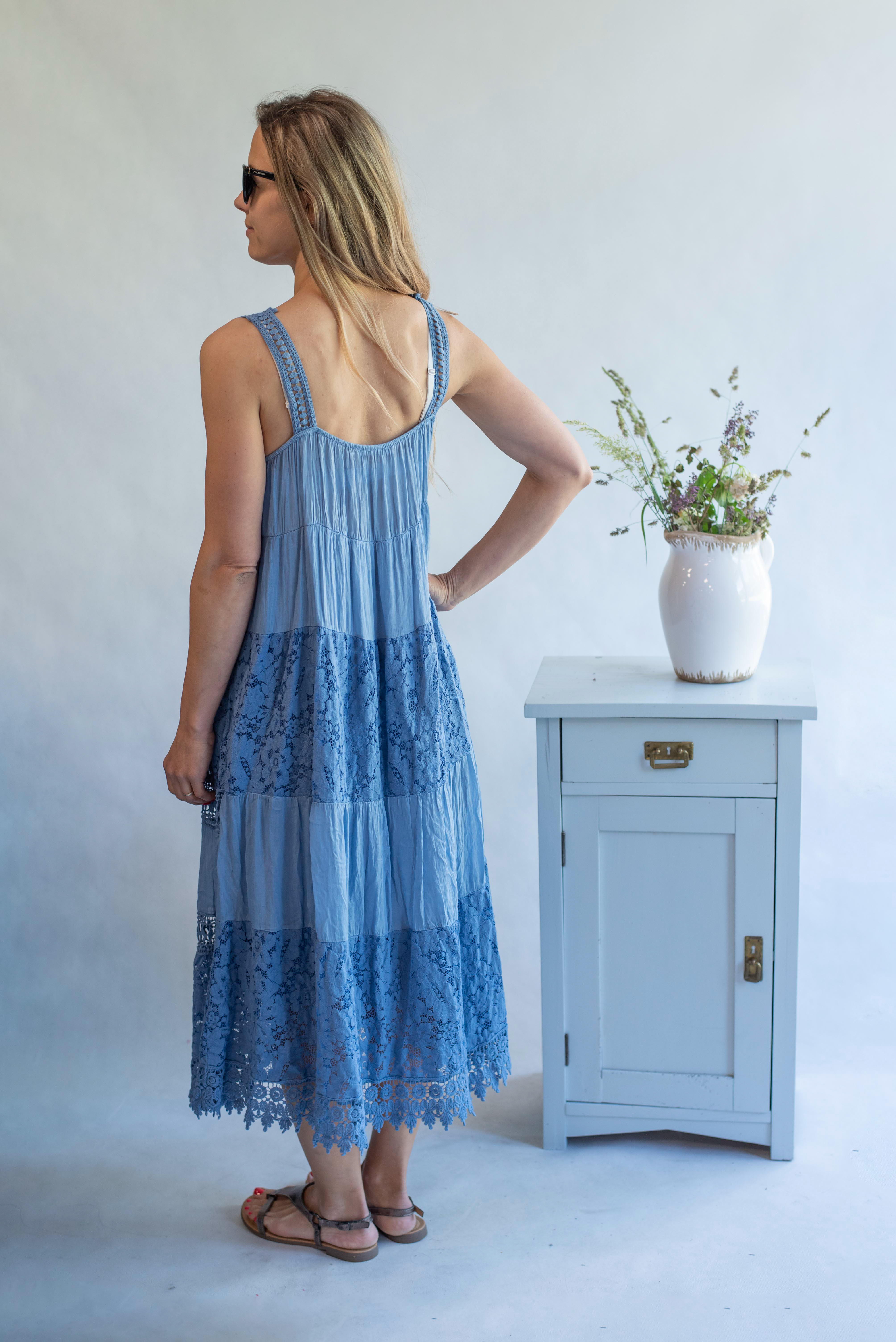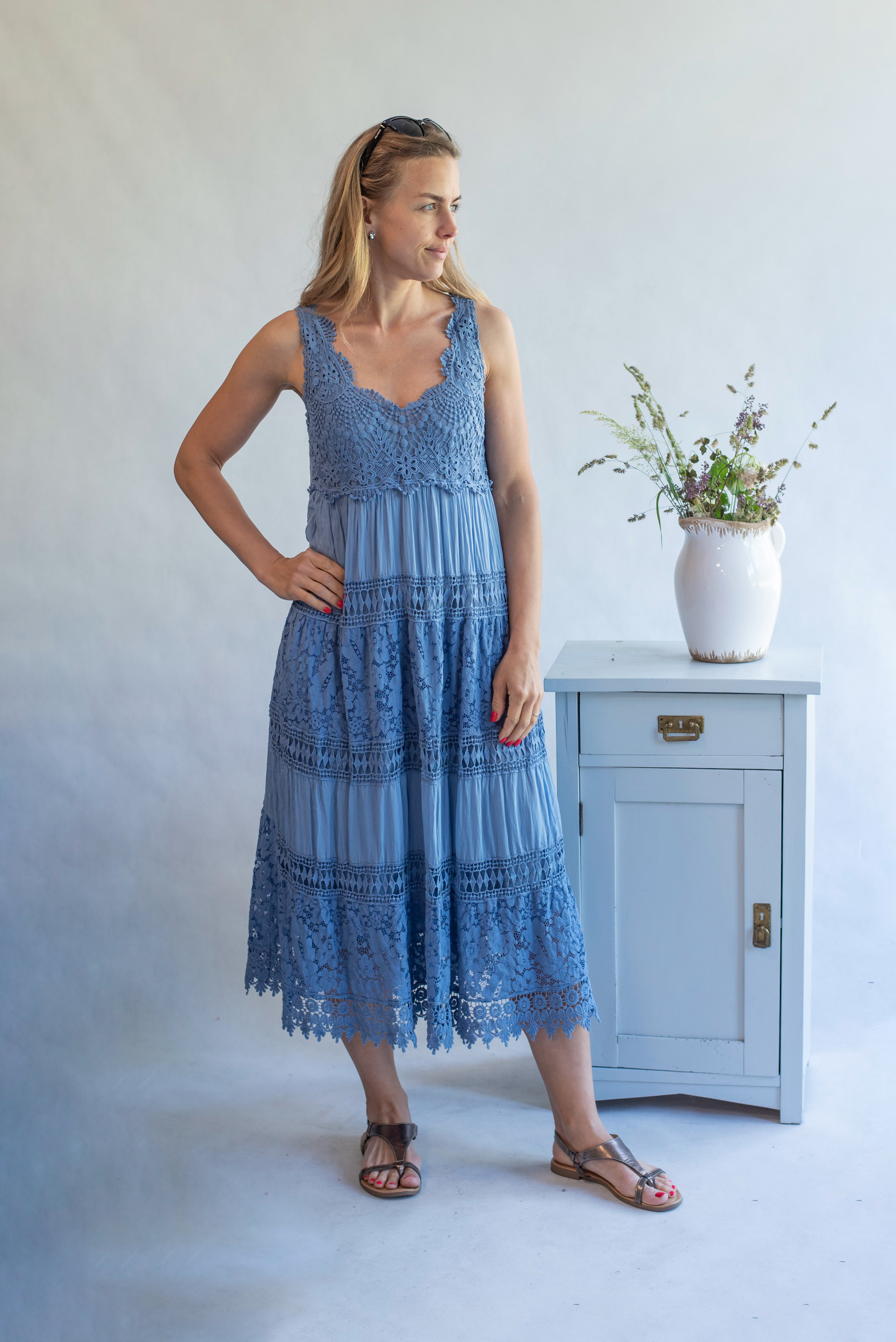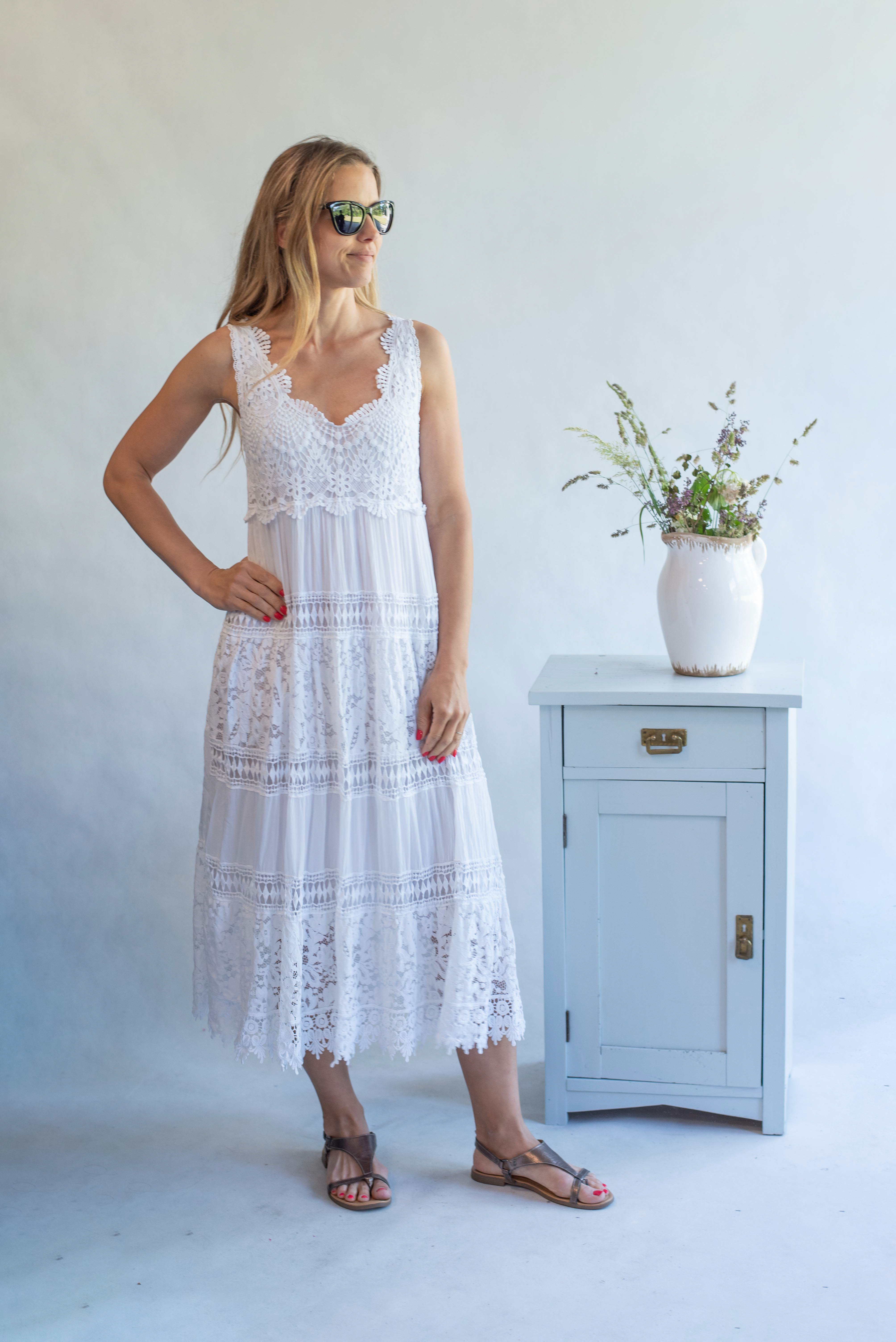 Letní dlouhé krajové šaty na ramínka s příjemnou podšívkou