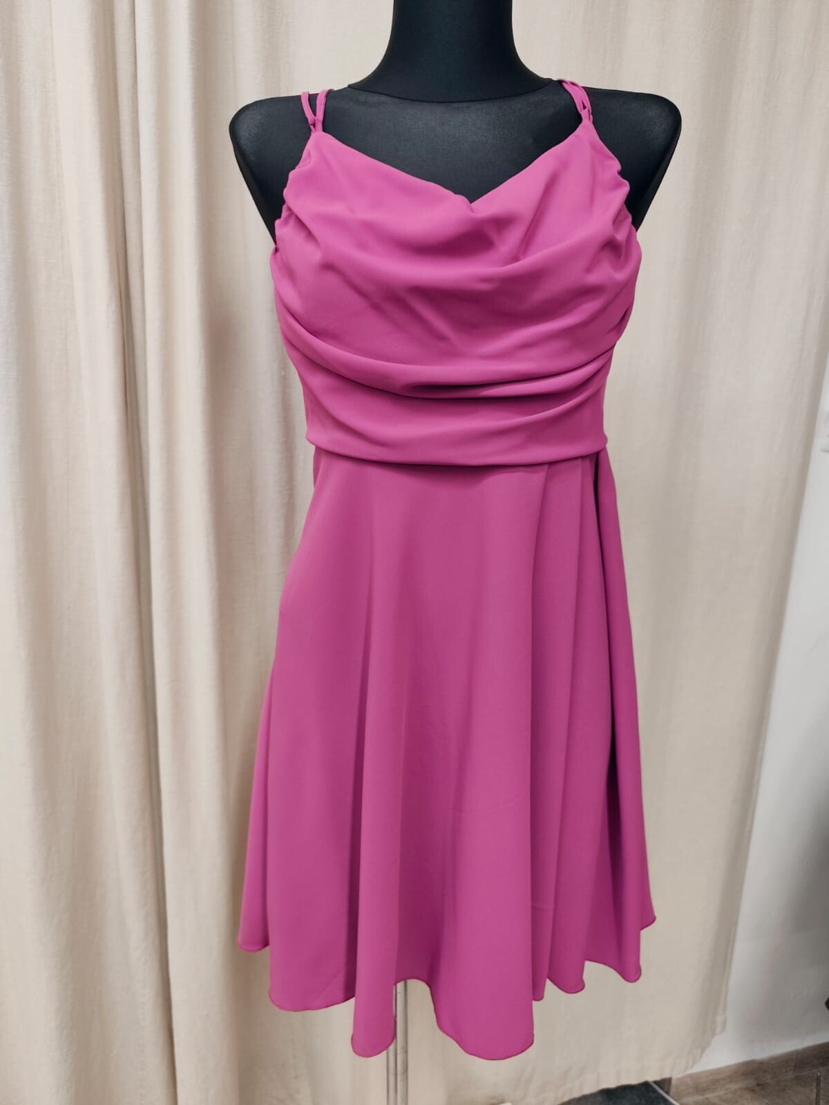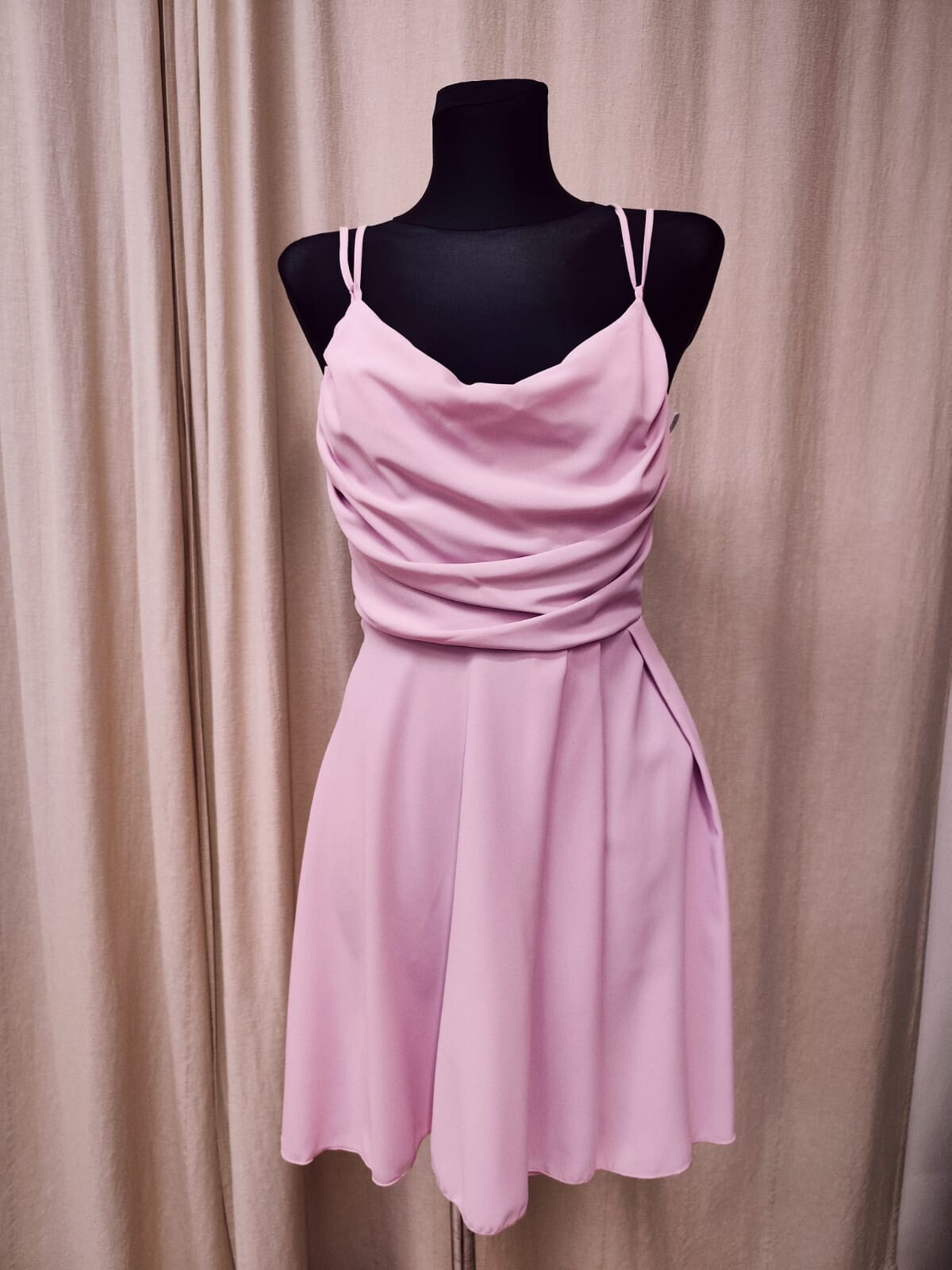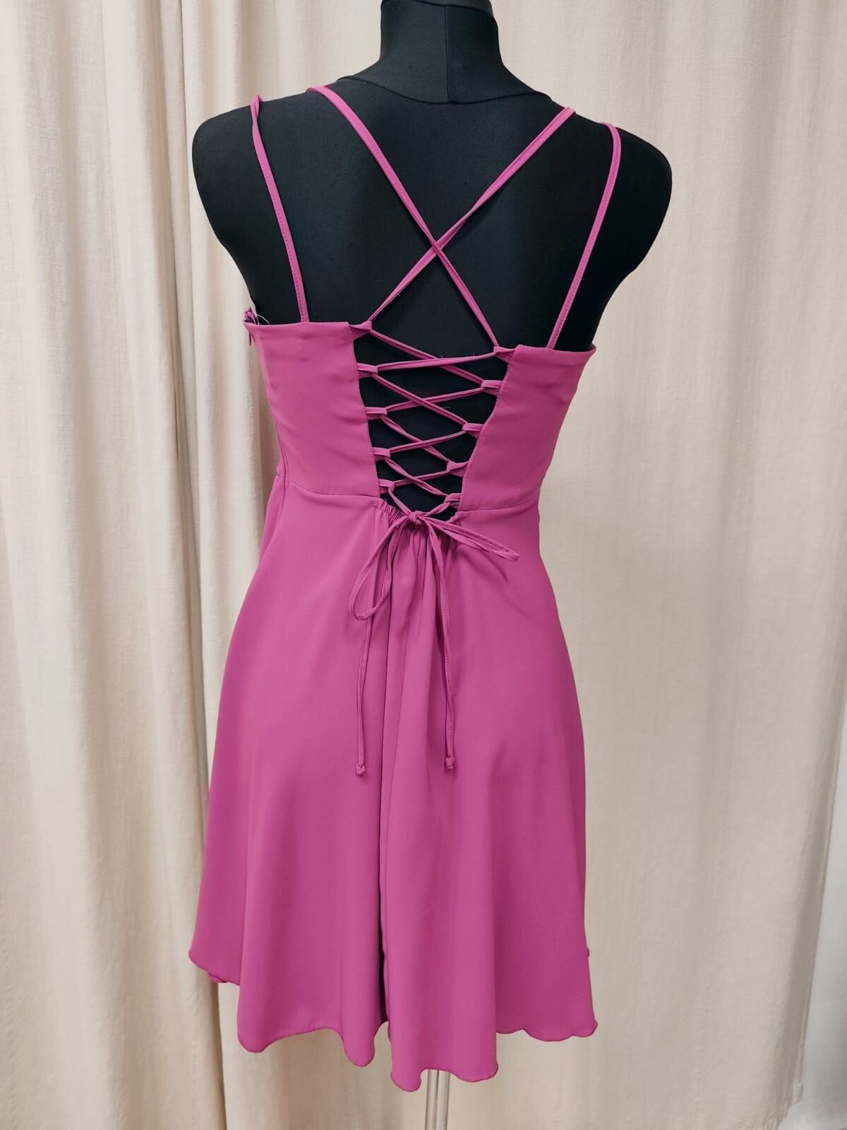 Elegantní šaty kratší s vodou ve výstřihu , boční zip doplněný zadním vázačkou pro dokonalé vypasování