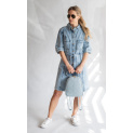 Dámská košilové džínové krátké šaty propínací s krátkým rukávem, kapsy v zadní části. Ciminy Paris .