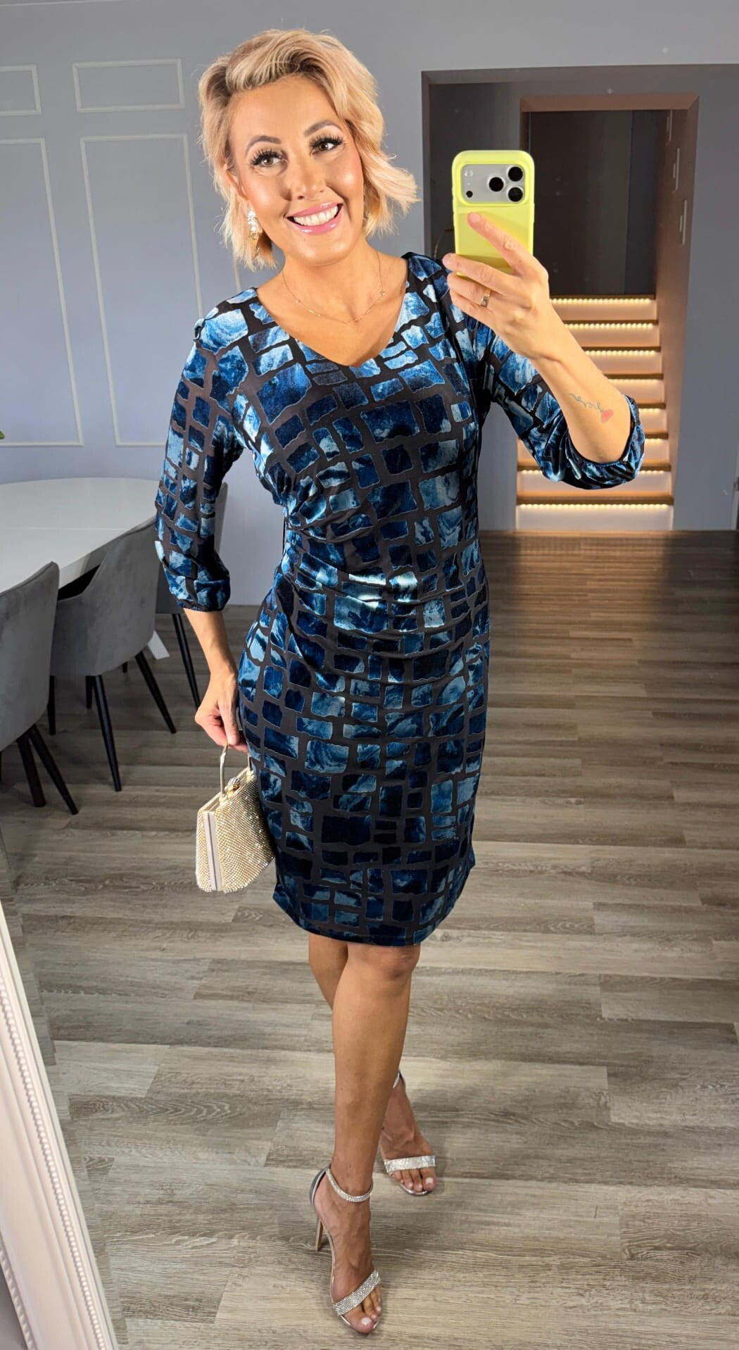 Šaty Trynite K-894 se pyšní 3/4 rukávy, které dodávají modelu sofistikovaný vzhled. Tento střih je nejen elegantní, ale také praktický, protože poskytuje dostatečné krytí a zároveň umožňuje volnost pohybu. Šaty jsou navrženy tak, aby lichotily každé postavě, a to díky promyšlenému střihu, který zdůrazňuje pas a jemně splývá přes boky.