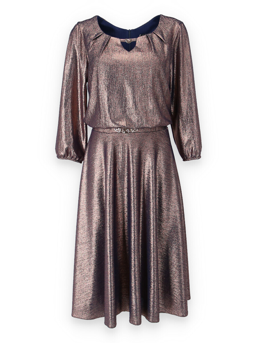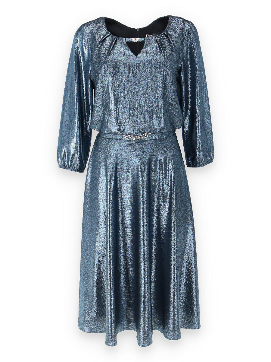 Dámské elegantní šaty s 3/4 rukávem, materiál s metalickým efektem.