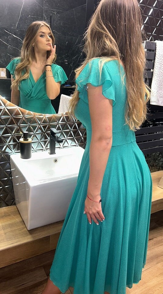 Dámské elegantní šaty s krátkým volánkovým rukávem a podšívkou. Velmi oblíbený a ověřený střih. Vhodné společenské šaty na různé akce , večírky a svatby. Šaty lze doplnit různými bolerky, nebo saky.