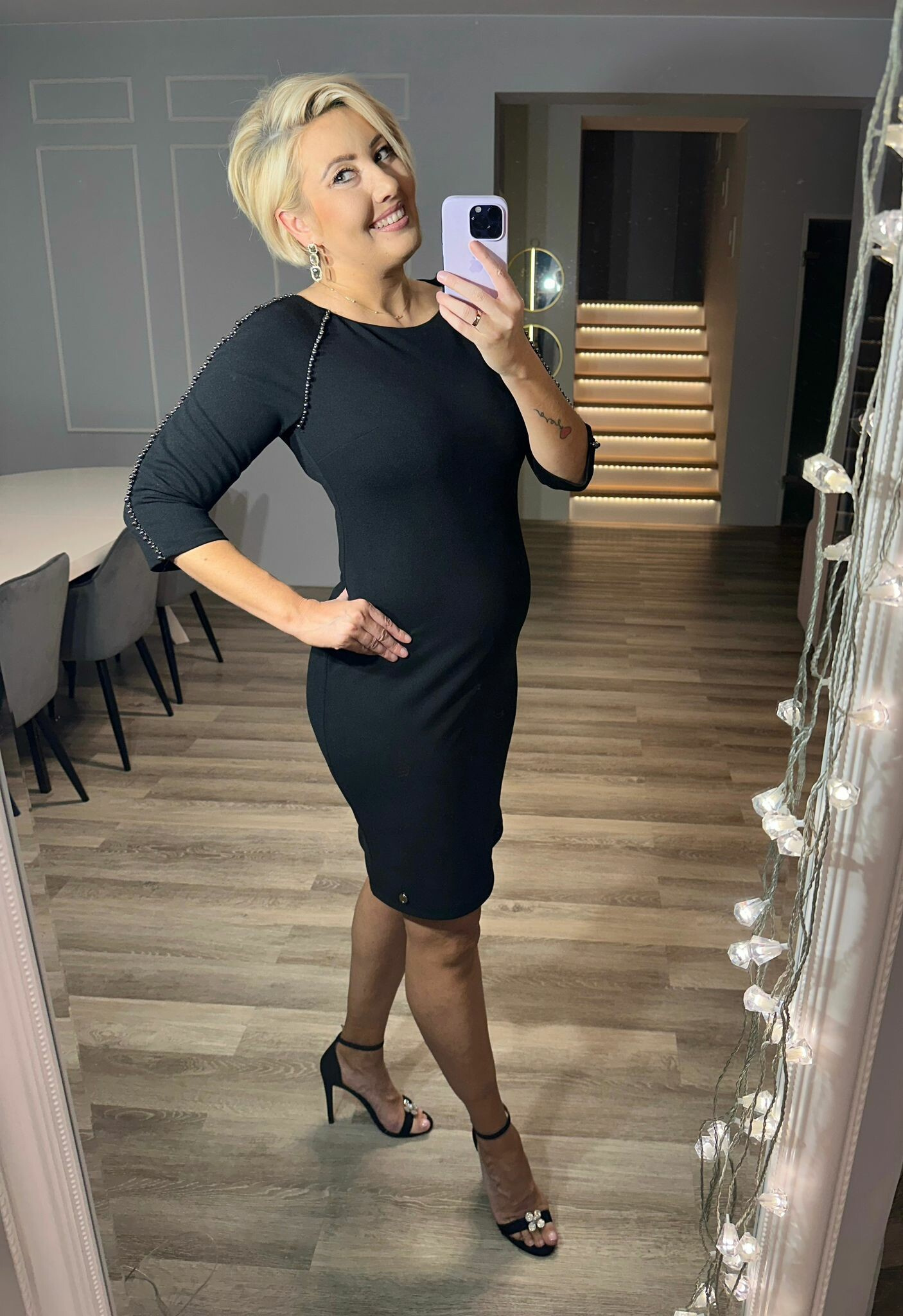 Dámské elegantní šaty s 3/4 rukávem zdobený perličkymaa zapínáním na skrytý zip. Velmi oblíbený a ověřený střih. Vhodné společenské šaty na různé akce , večírky a svatby. Šaty lze doplnit různými bolerky, nebo saky. Ideální sako kód 230239 z naší nabídky.