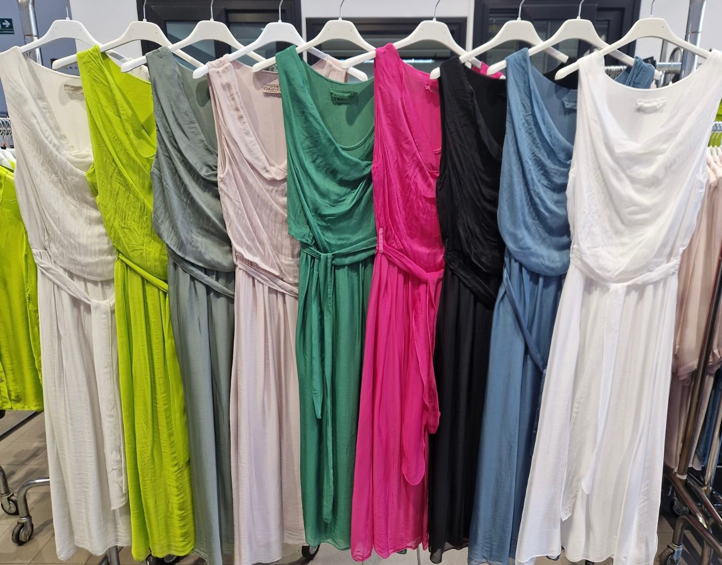 Letní dlouhé hedvábné šaty s krátkým rukávem, výstřih s vodou a příjemnou podšívkou