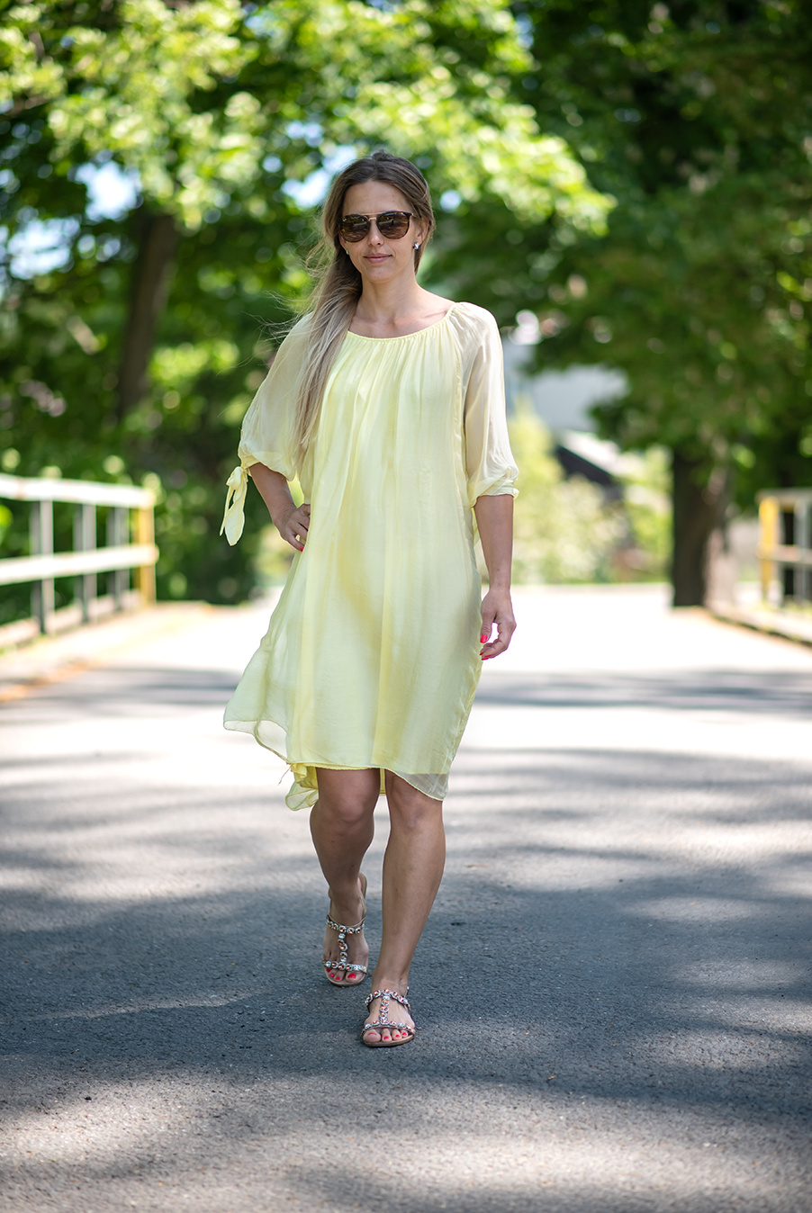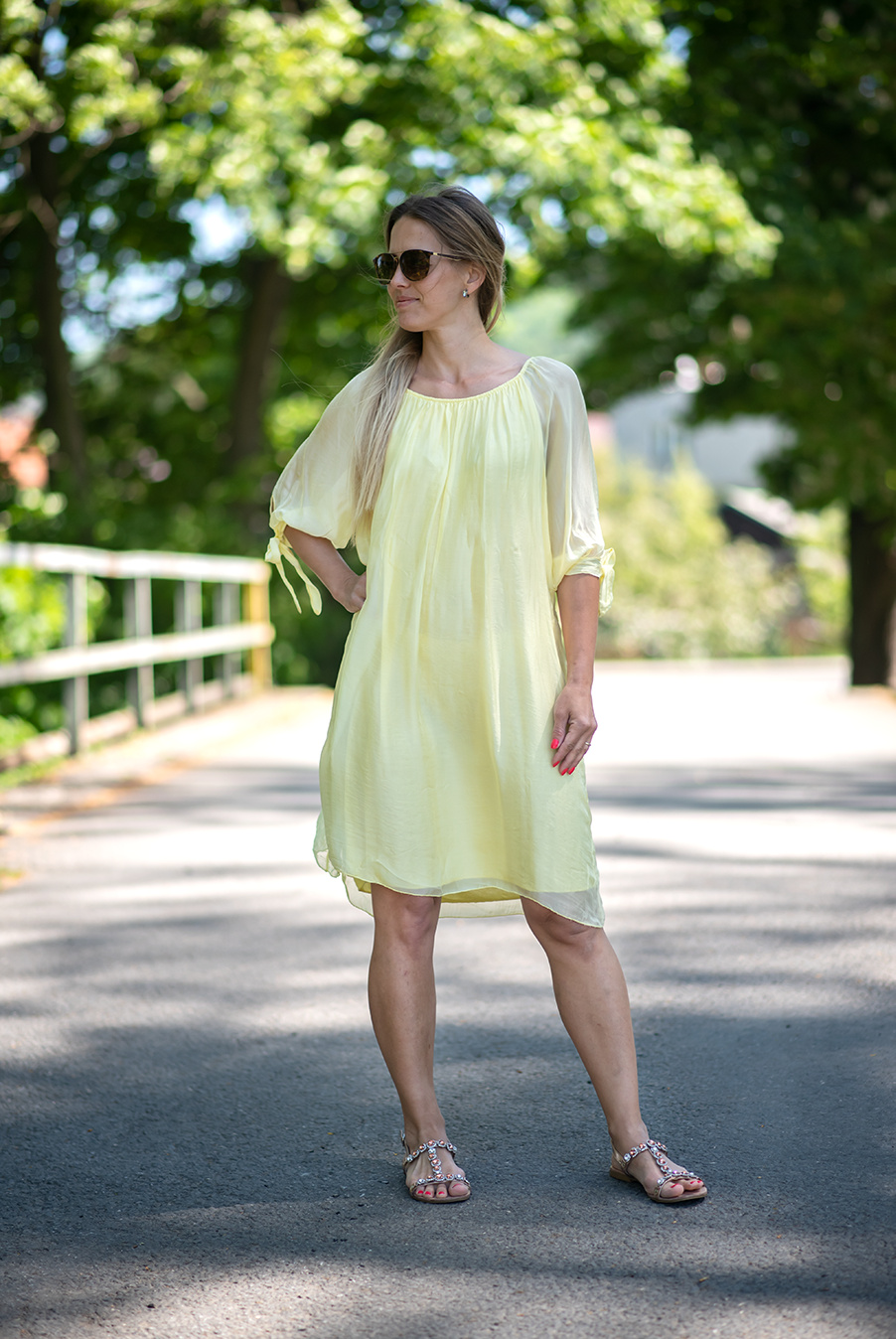 Letní hedvábné šaty s krátkým rukávem a podšívkou