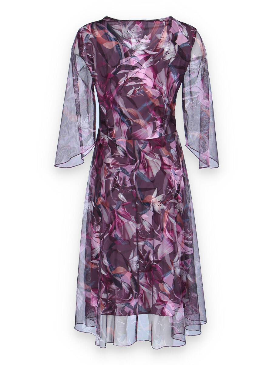 Elegantní společenské šaty s 3/4 rukávem ve vínové barvě s délkou ke kolenům vhodné i na denní nošení, řasená sukně