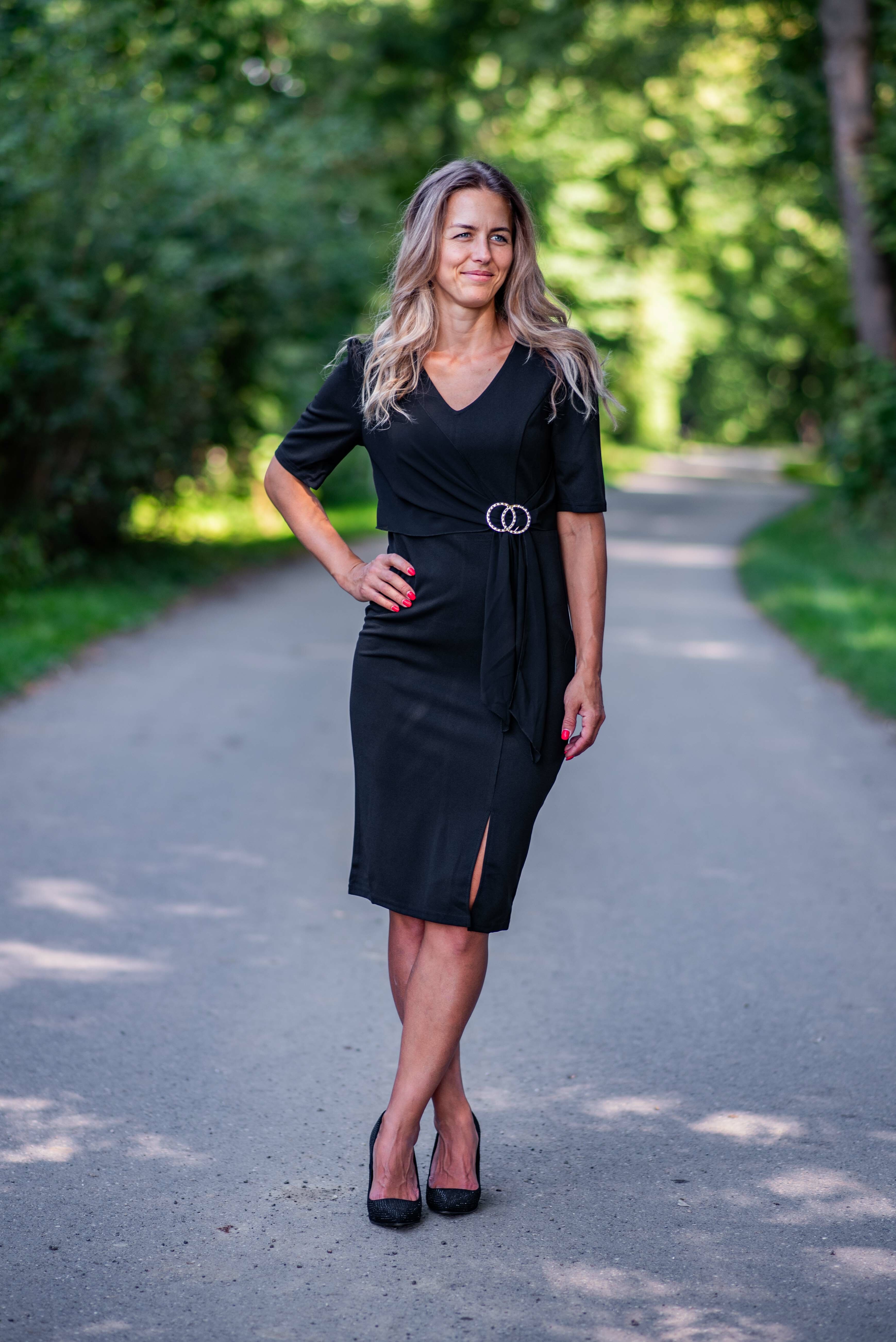 Dámské elegantní, společenské šaty s výstřihem do V.