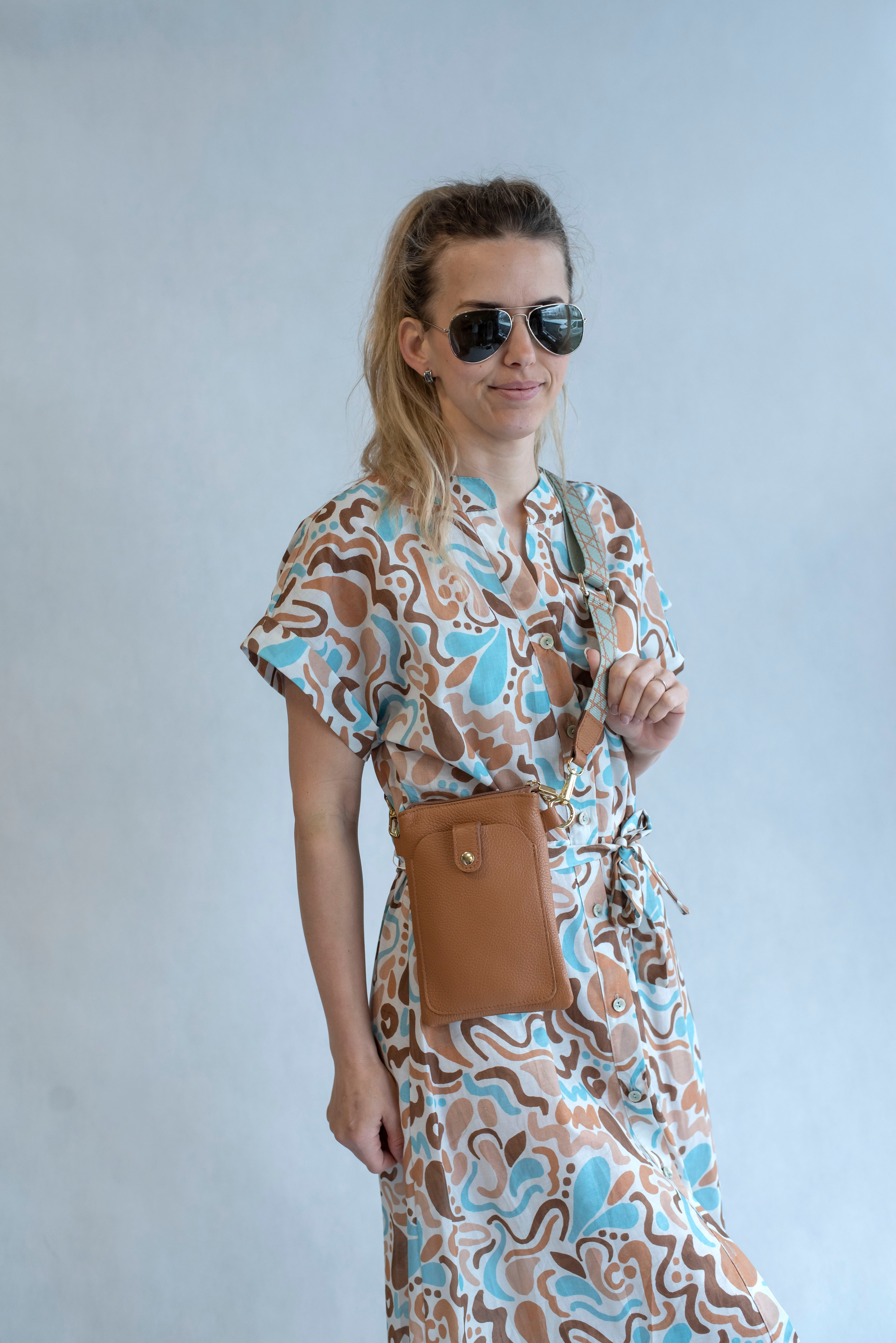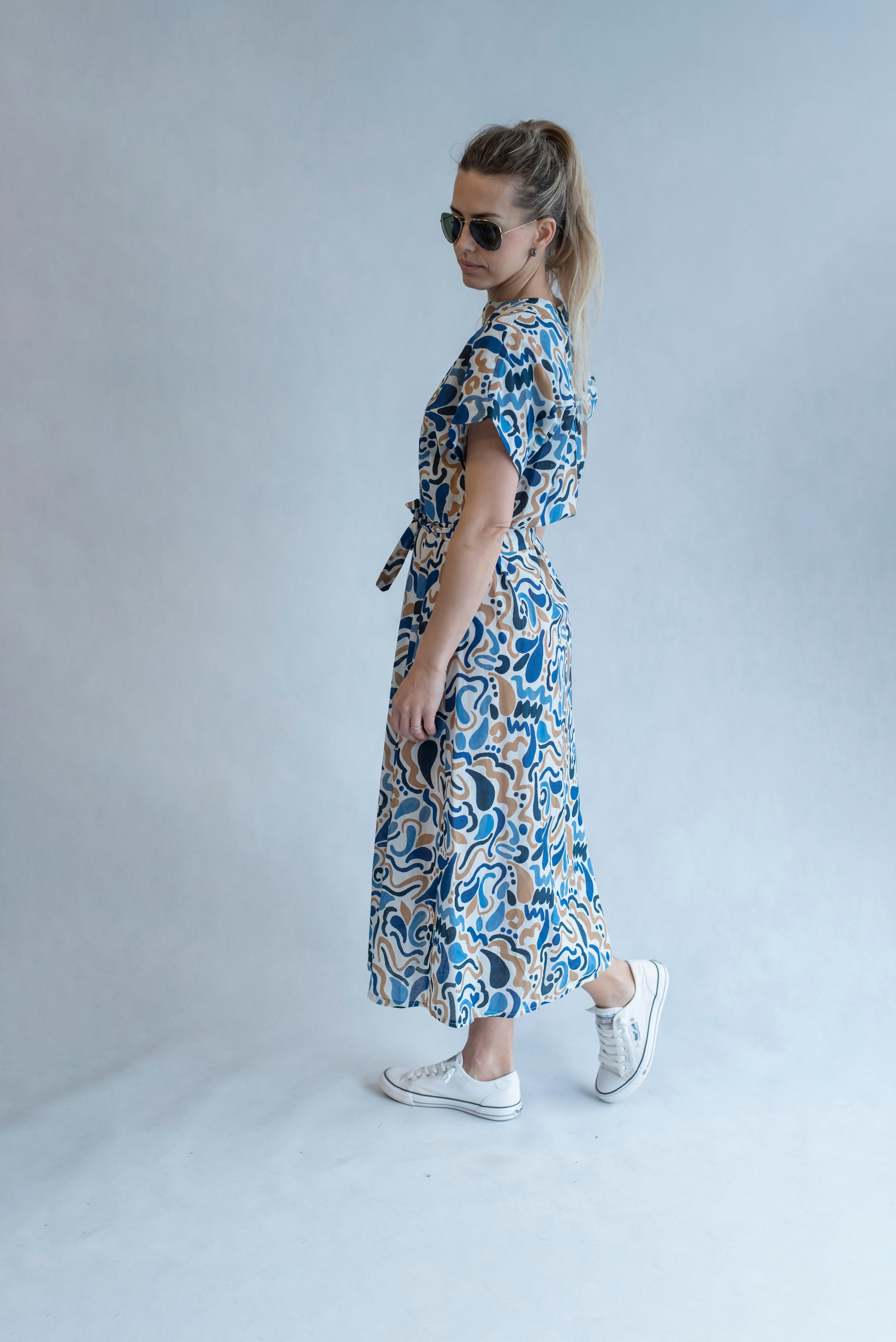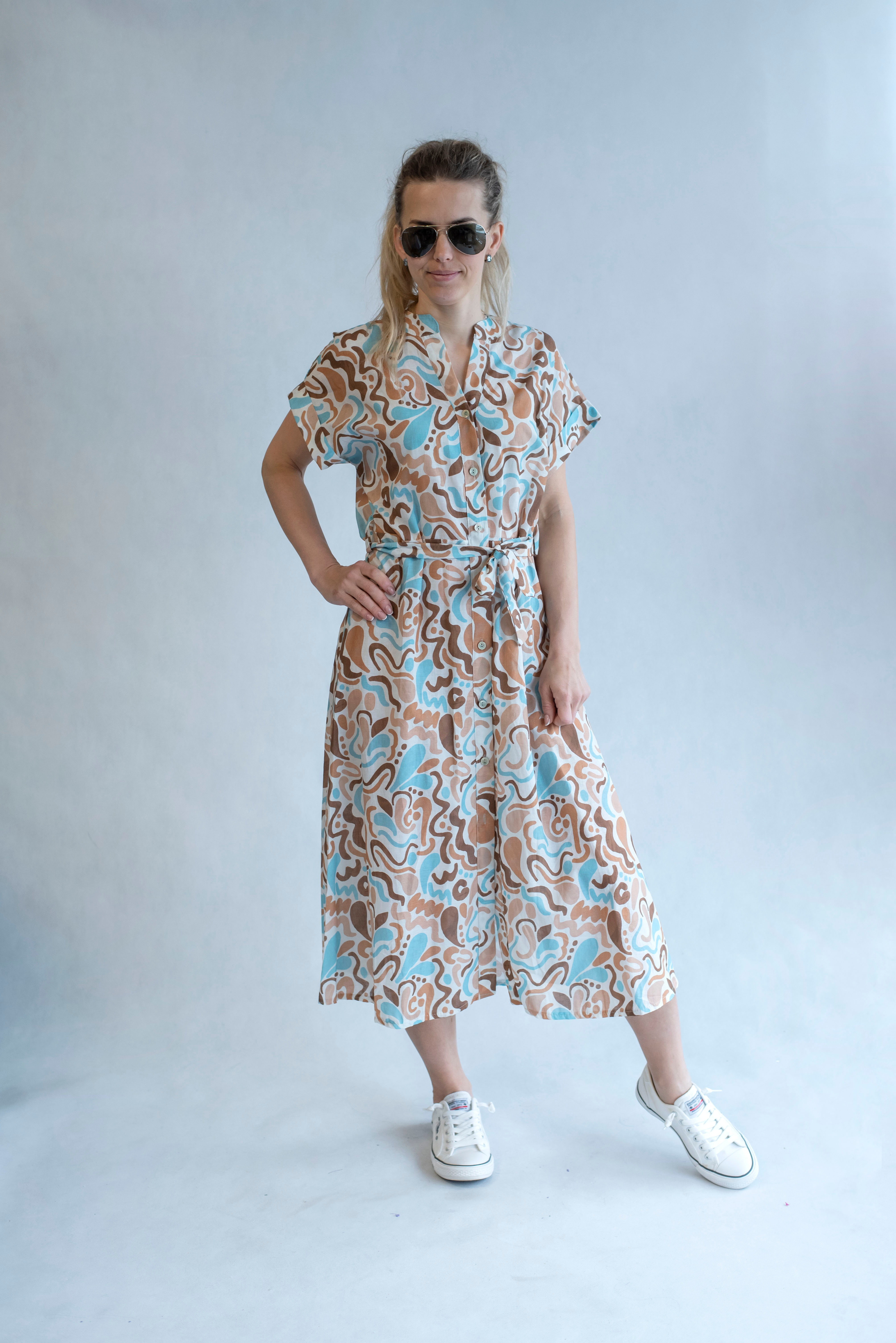 Dámské volnočasové košilové šaty s stojáčkem a vázáním v pase.
