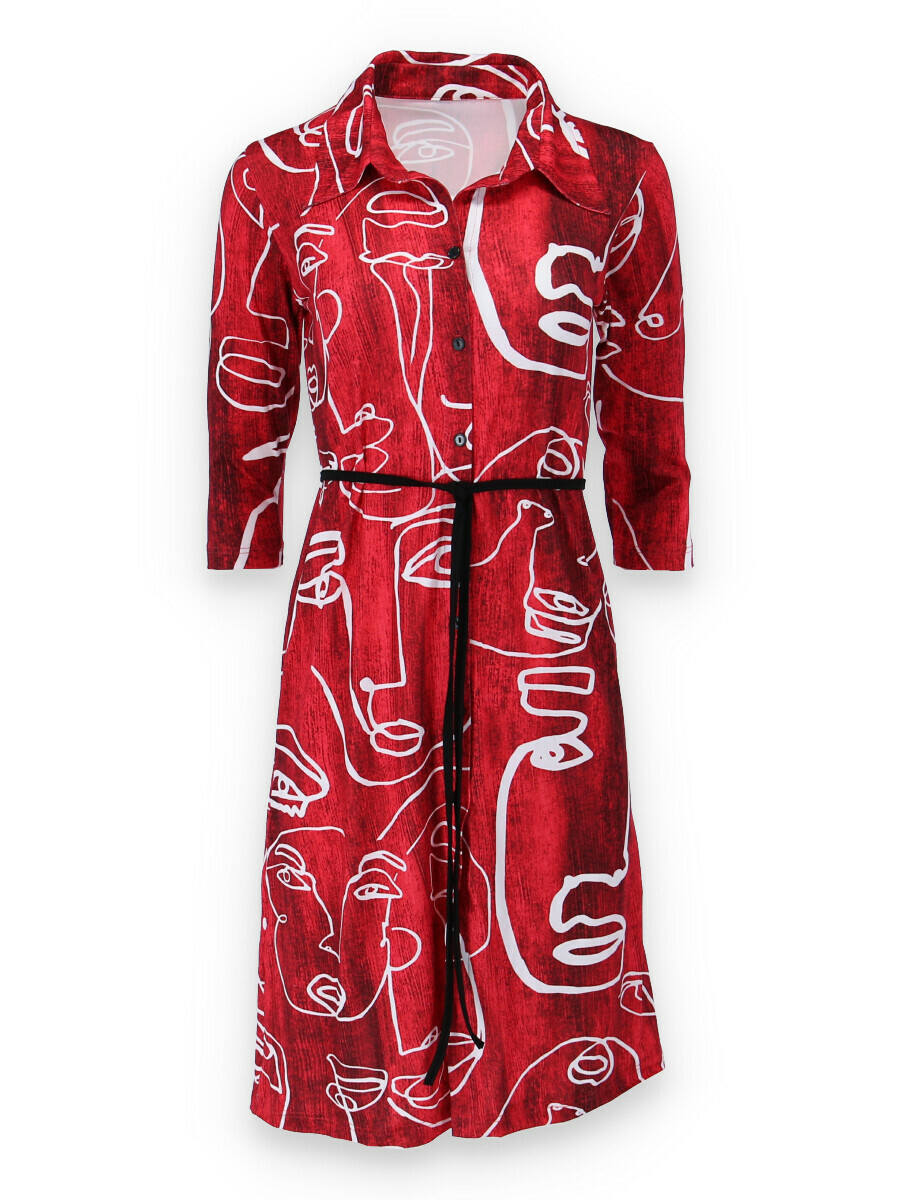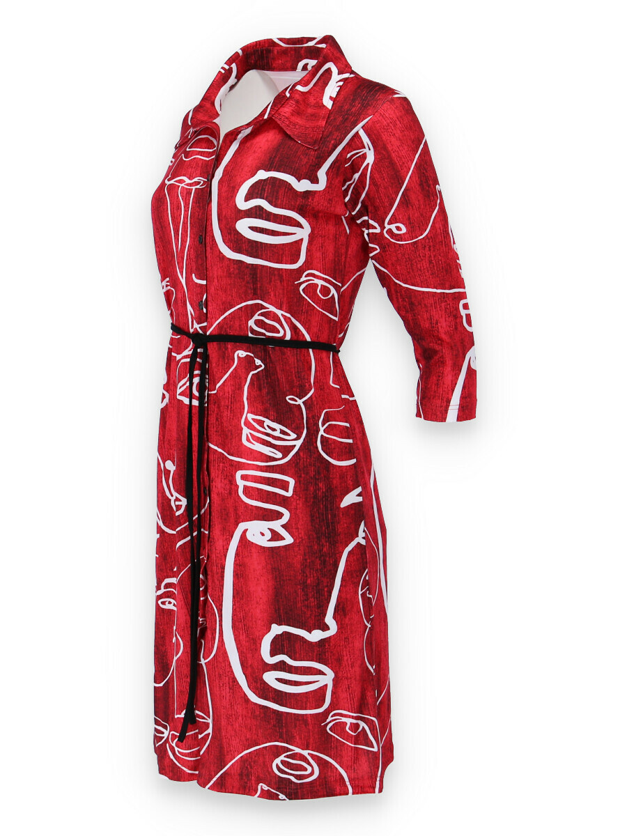 Módní košilové šaty s 3/4 rukávem a vázačkou v pase, od přední české značky Pratto.