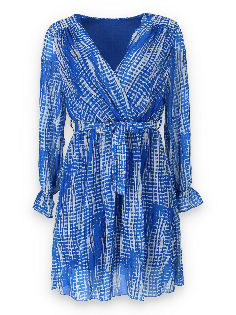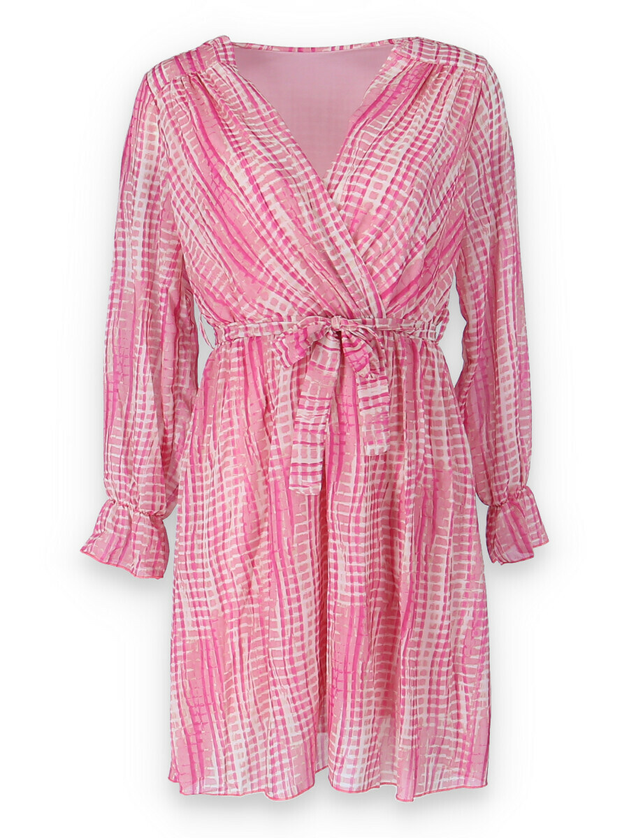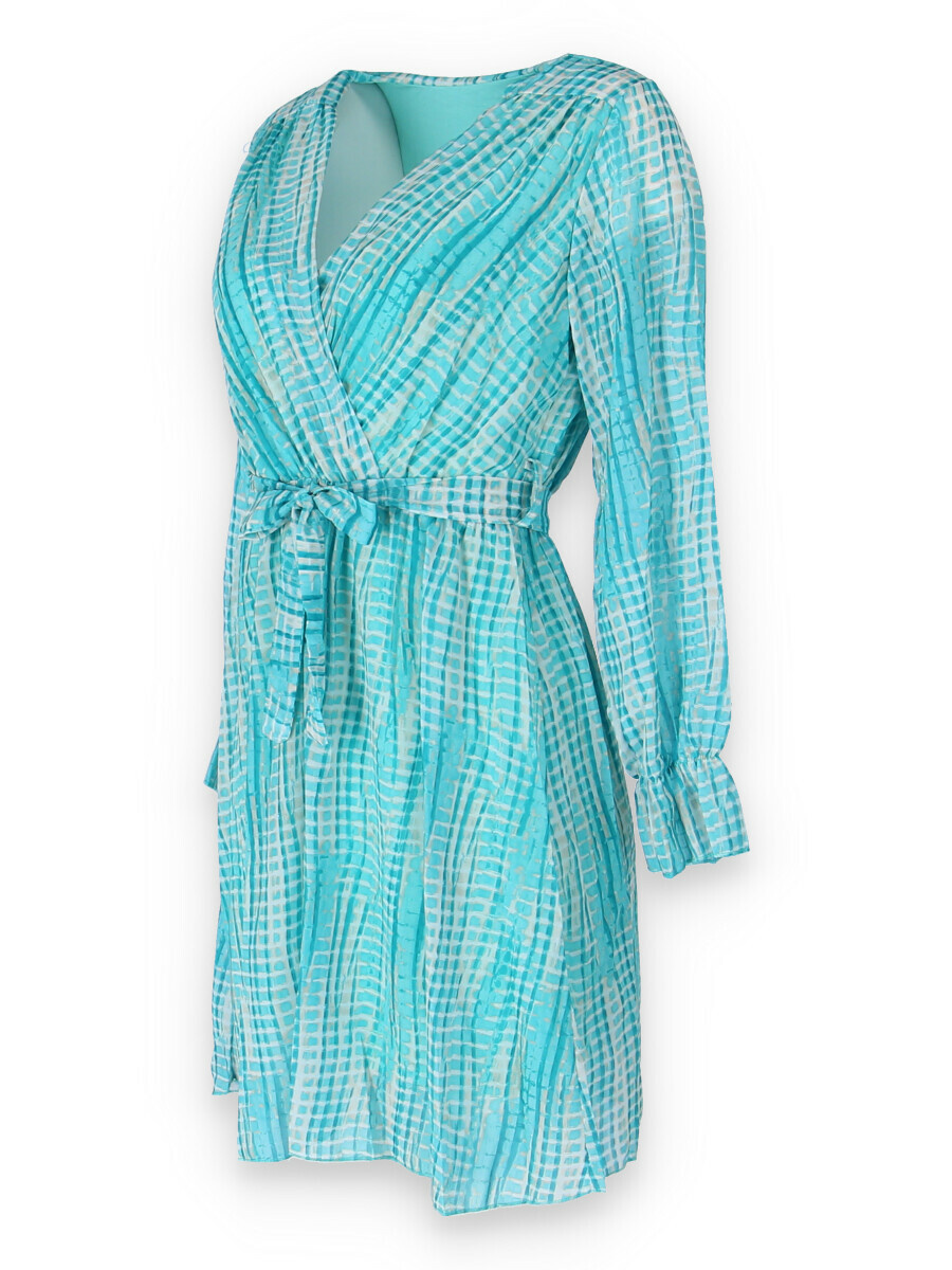 Dámské šaty plisé se stojáčkem, dlouhý rukáv, vázání v pase, podšívka