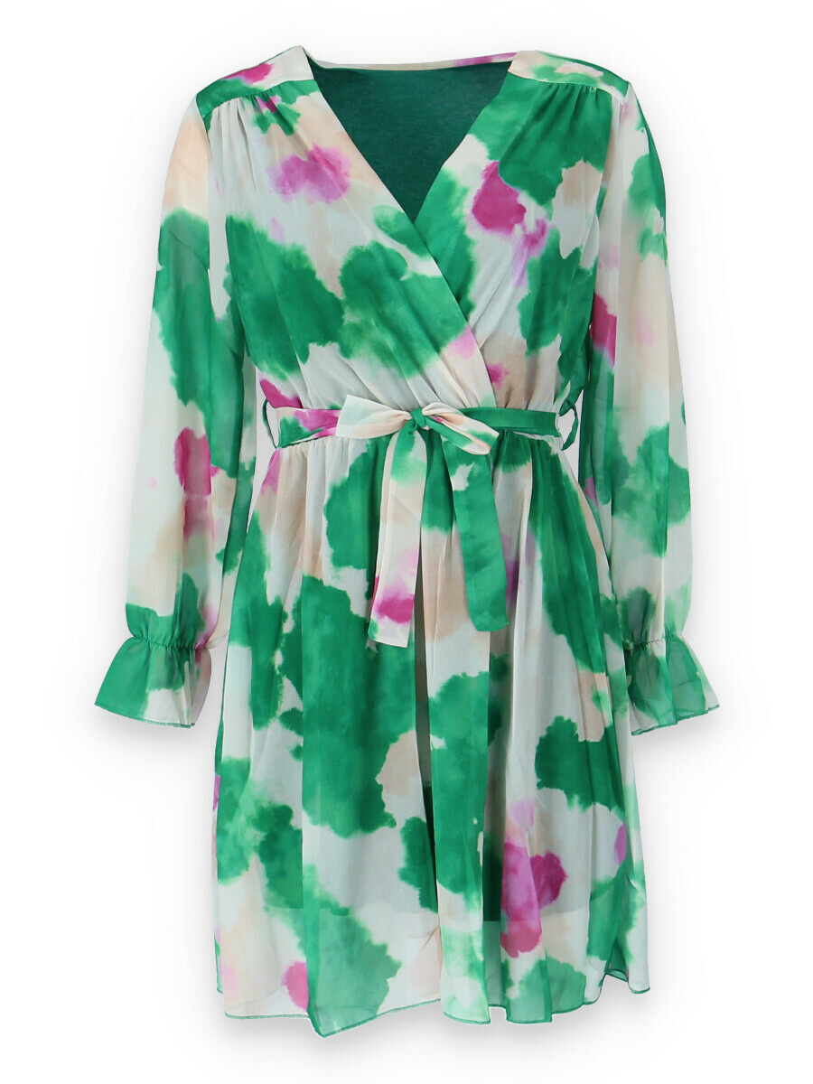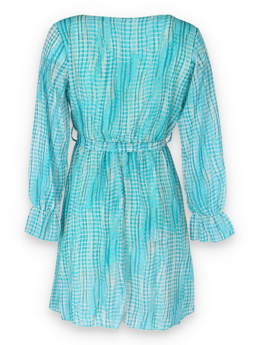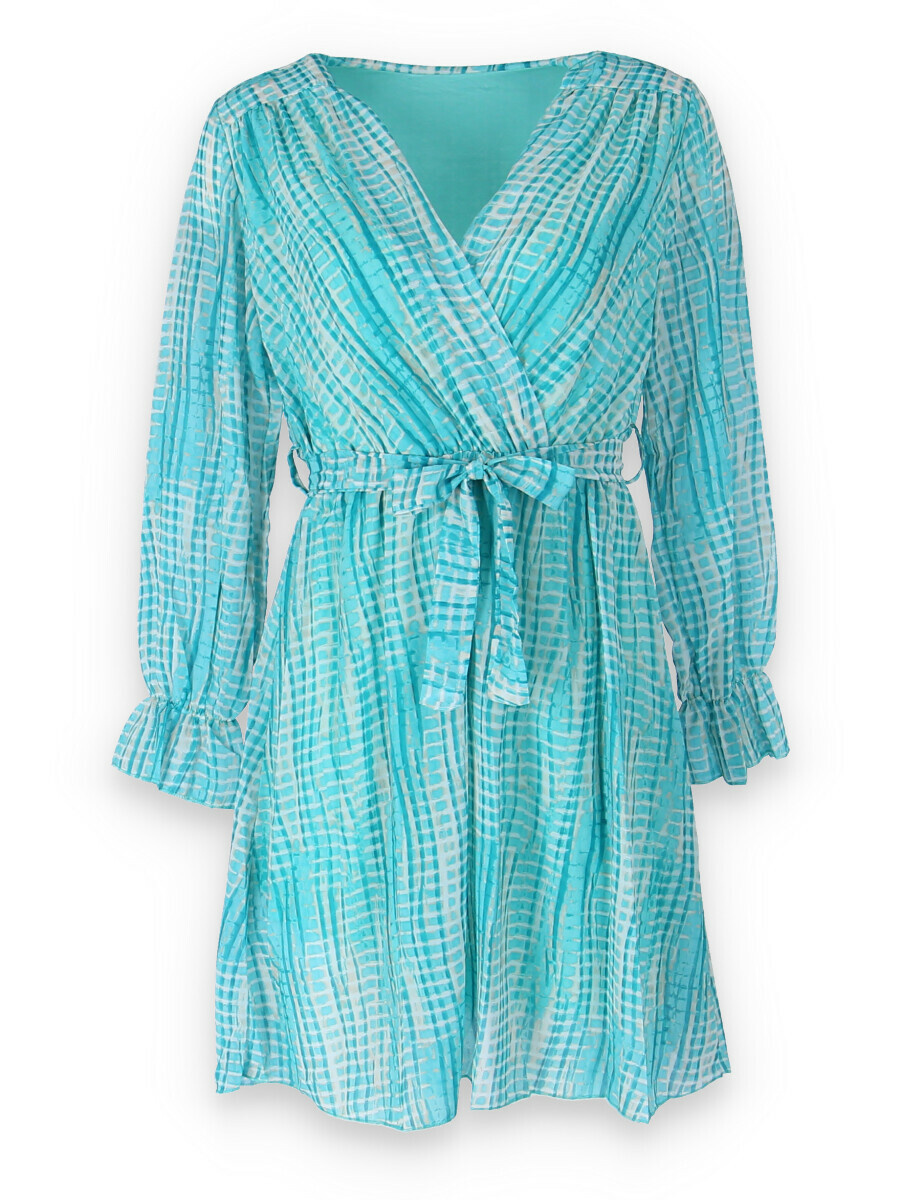 Dámské šaty plisé se stojáčkem, dlouhý rukáv, vázání v pase, podšívka
