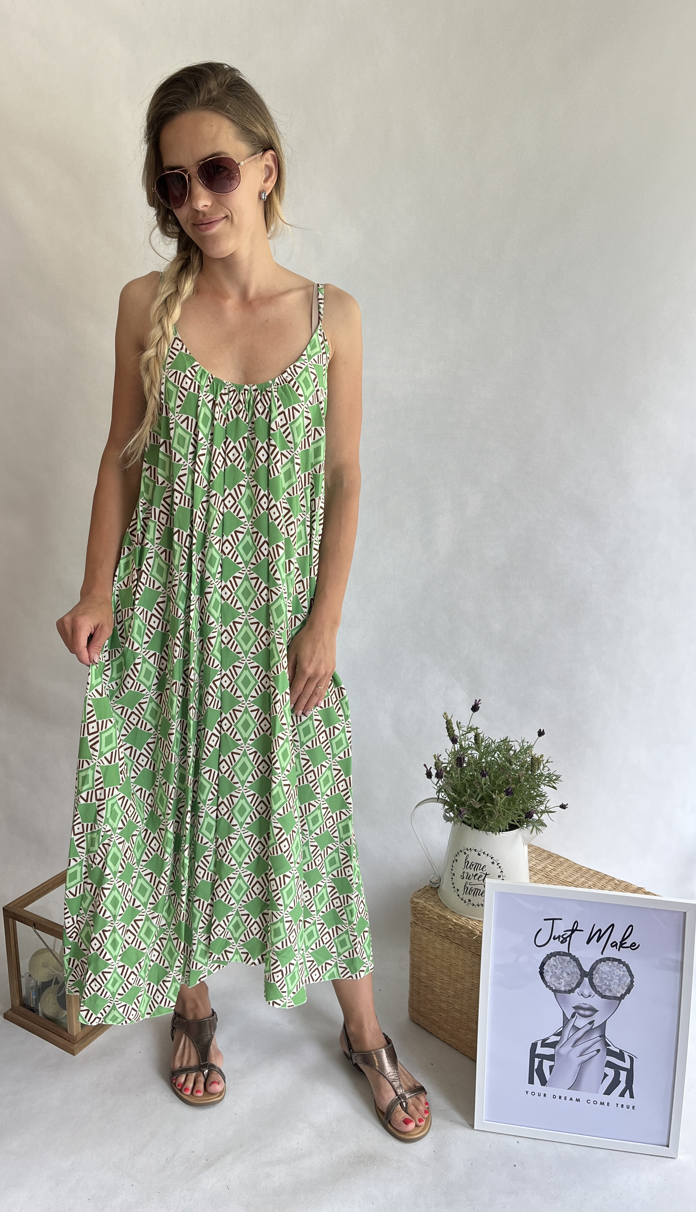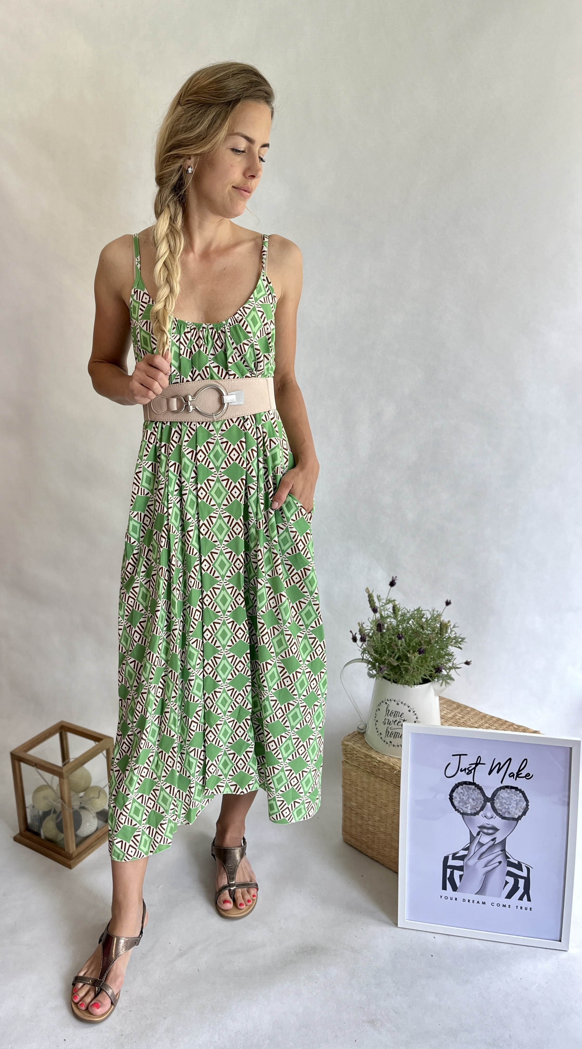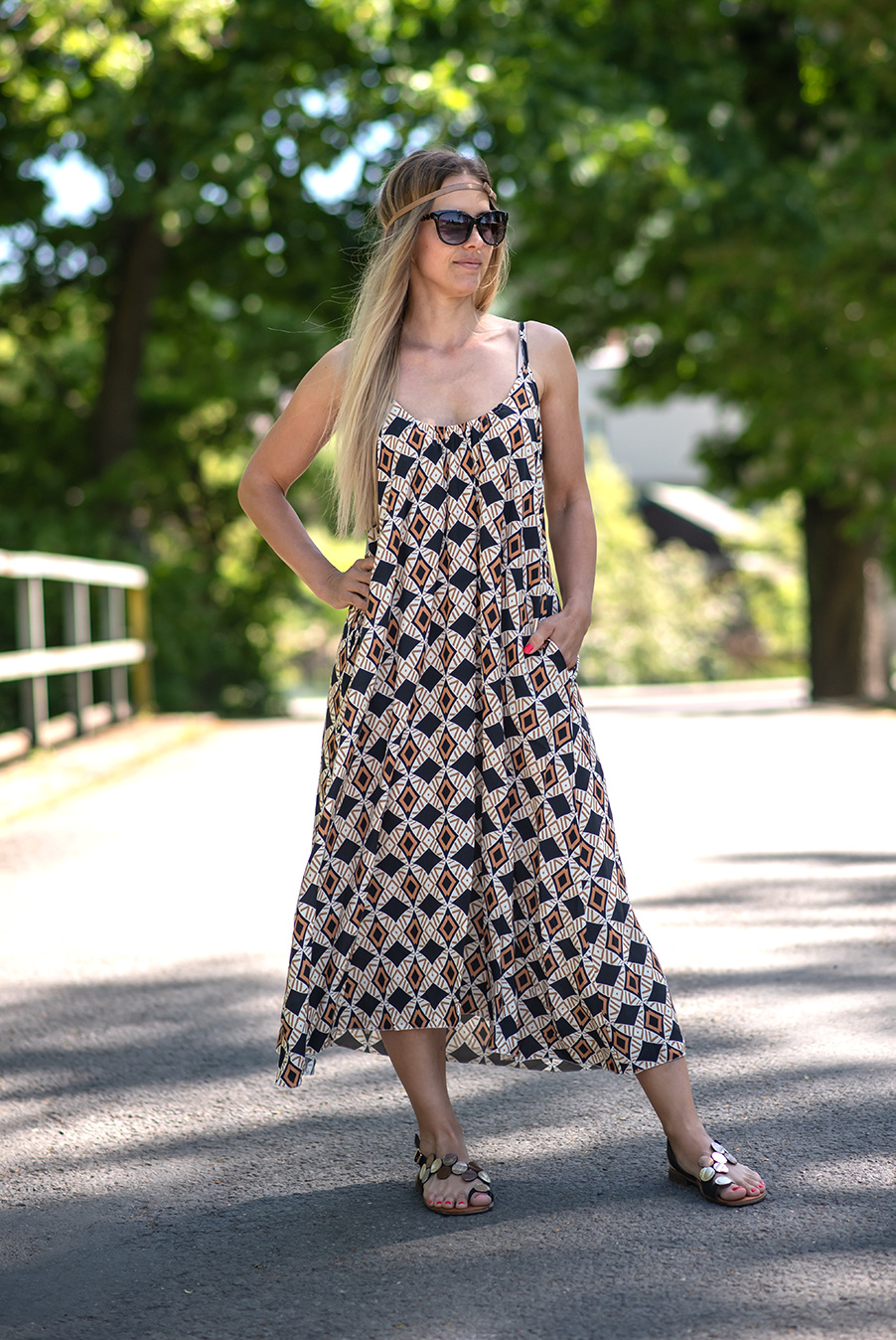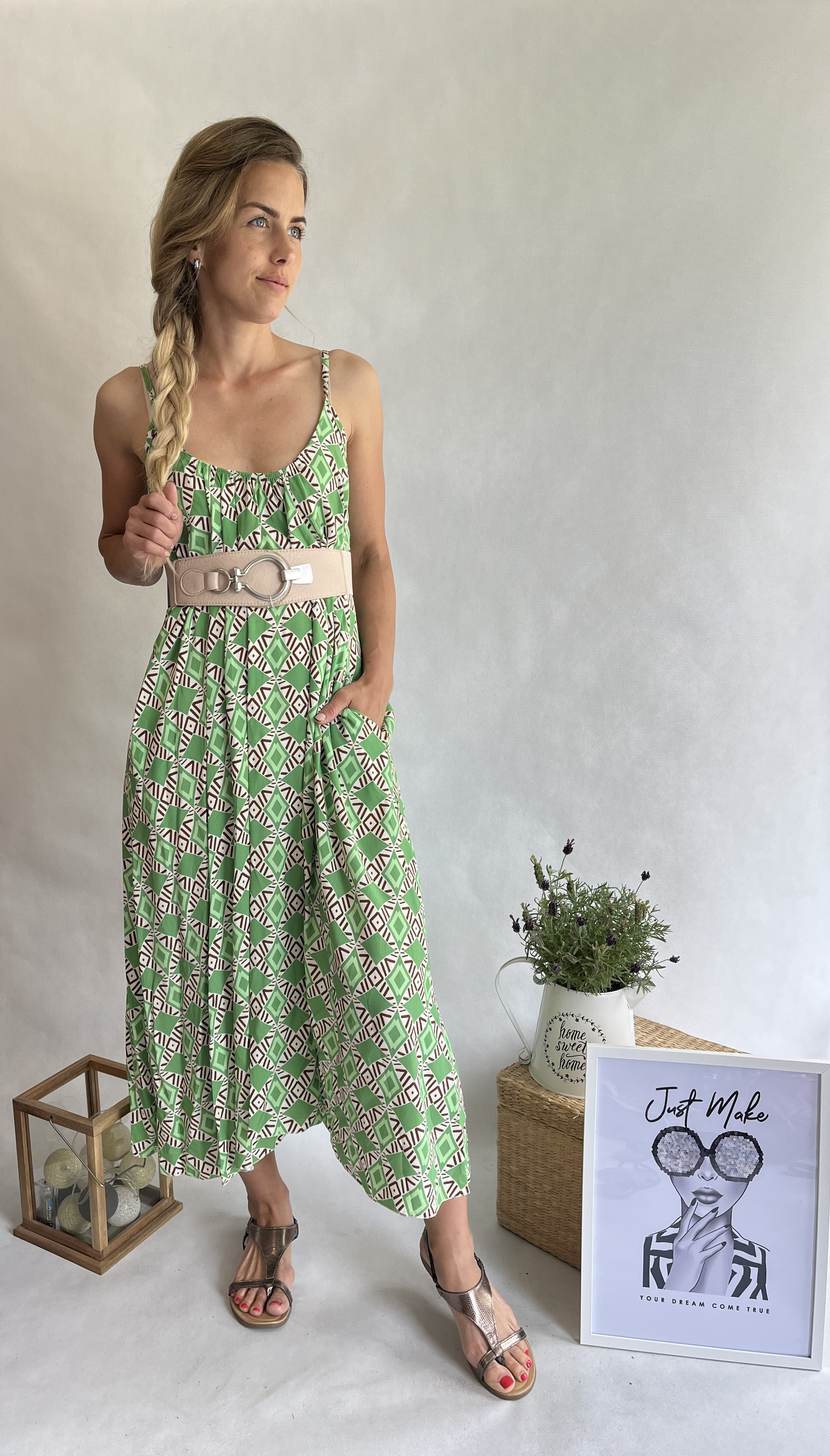 Dámské dlouhé letní šaty na ramínka s všitými kapsami.
